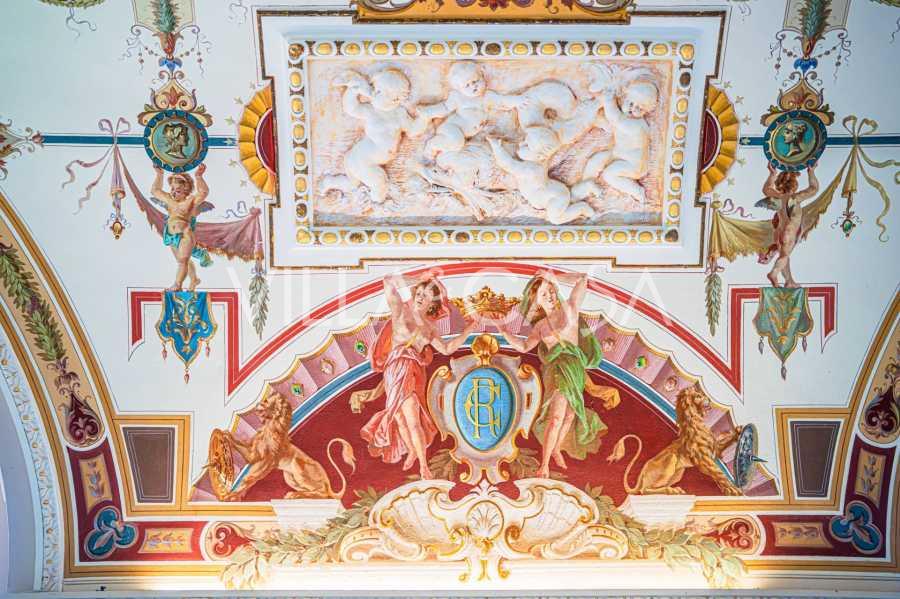 Im Erdgeschoss des Anwesens können Sie durch eine prächtige Galerie schlendern, geräumige Säle oder gemütliche Salons betreten, die Gäste in die Atmosphäre des aristokratischen Lebens vergangener Zeiten eintauchen lassen. Der zweite Stock – das piano nobile – ist eine weitere luxuriöse Galerie, eine Bibliothek mit gemütlichen Parkettböden, Speisesäle und Säle, die die Eleganz vergangener Jahrhunderte bewahren. Darüber befinden sich Zimmer und Schlafzimmer, darunter ein Raum mit Bad und Sauna, der wie geschaffen scheint, um sich zu entspannen und neue Kraft zu schöpfen.
