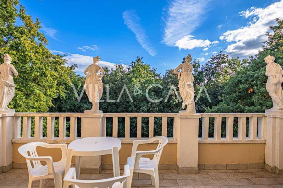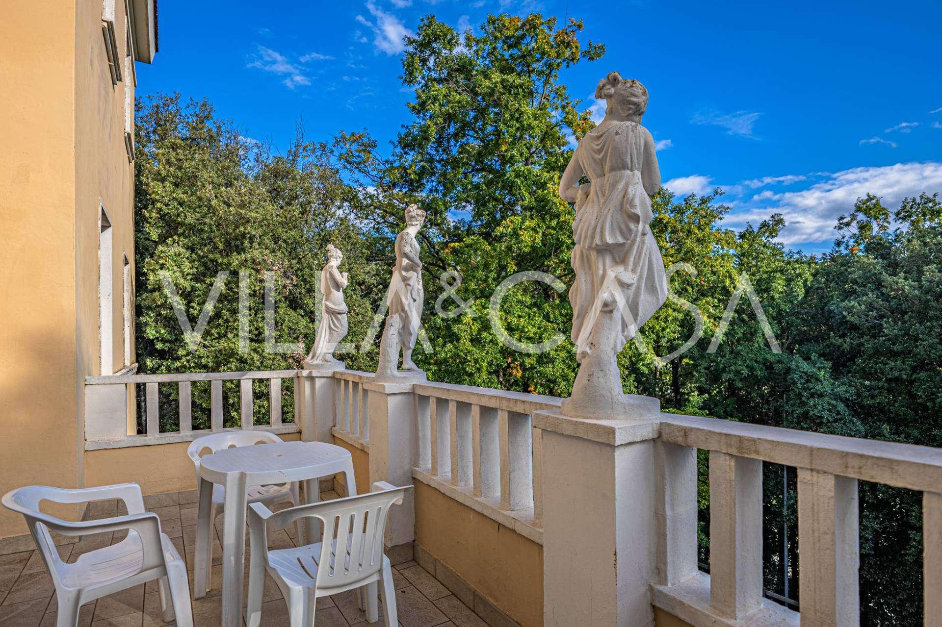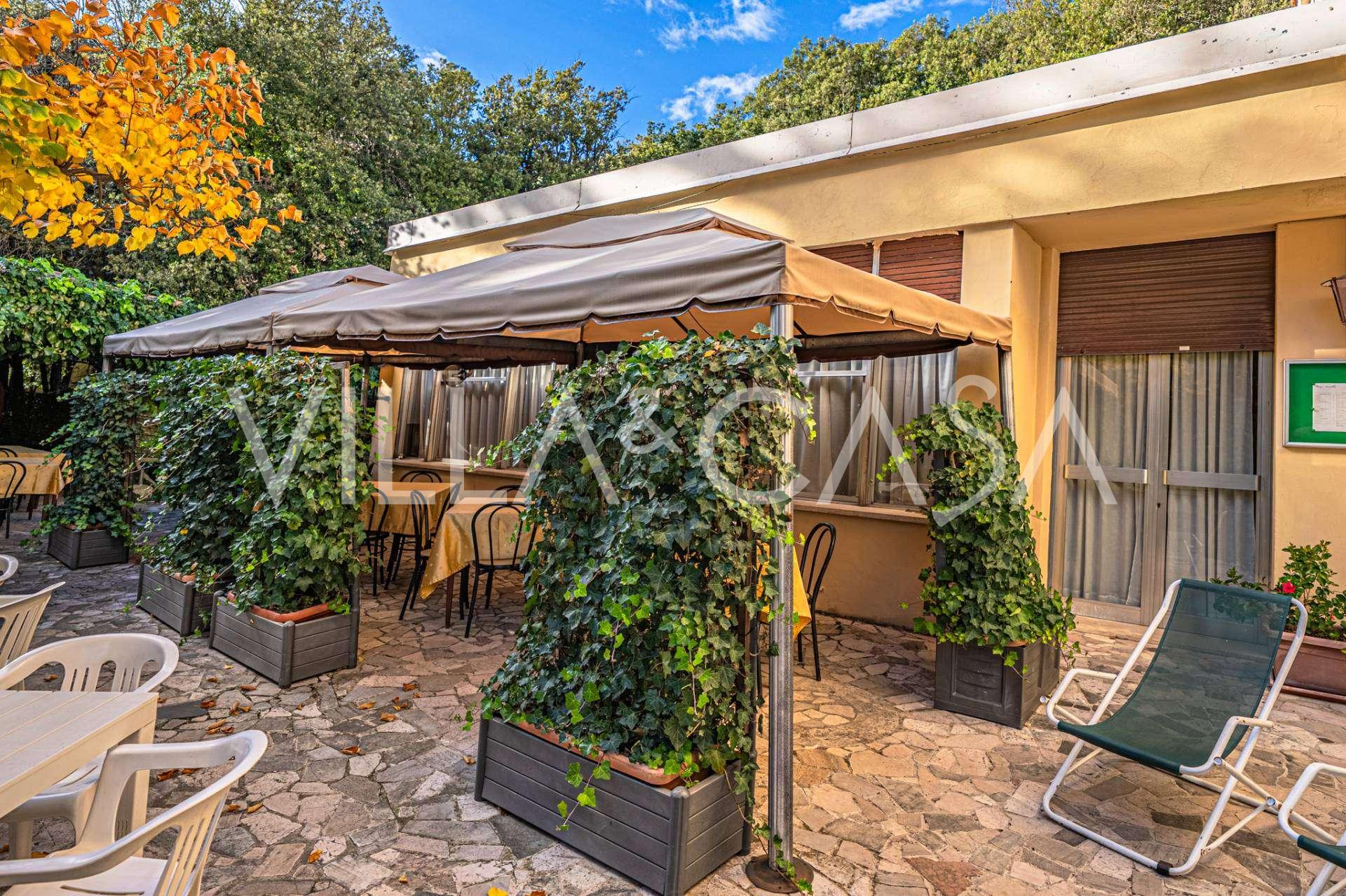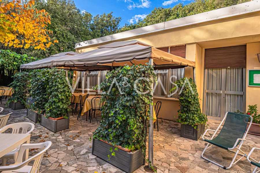 Rund um das Hotel erstreckt sich ein prächtiger privater Park von 7.000 m², einschließlich eines Eichenhains von 5.500 m² und eines Gartens von 1.500 m², der eine einzigartige Atmosphäre eines abgeschiedenen italienischen Anwesens schafft.