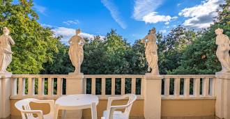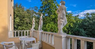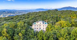 Diese prestigeträchtige Residenz umfasst einen majestätischen vierstöckigen Palast und ein separates Gästehaus mit einer Gesamtfläche von 1.550 m2. Im Hauptgebäude befinden sich 21 Zimmer mit Badezimmern, die mit Geschmack und Liebe zum Detail eingerichtet sind. Jedes Zimmer ist in sanftes Licht getaucht und bietet atemberaubende Ausblicke auf die malerischen Wälder und grünen Wiesen, wodurch eine Atmosphäre völliger Gelassenheit und Komfort geschaffen wird.