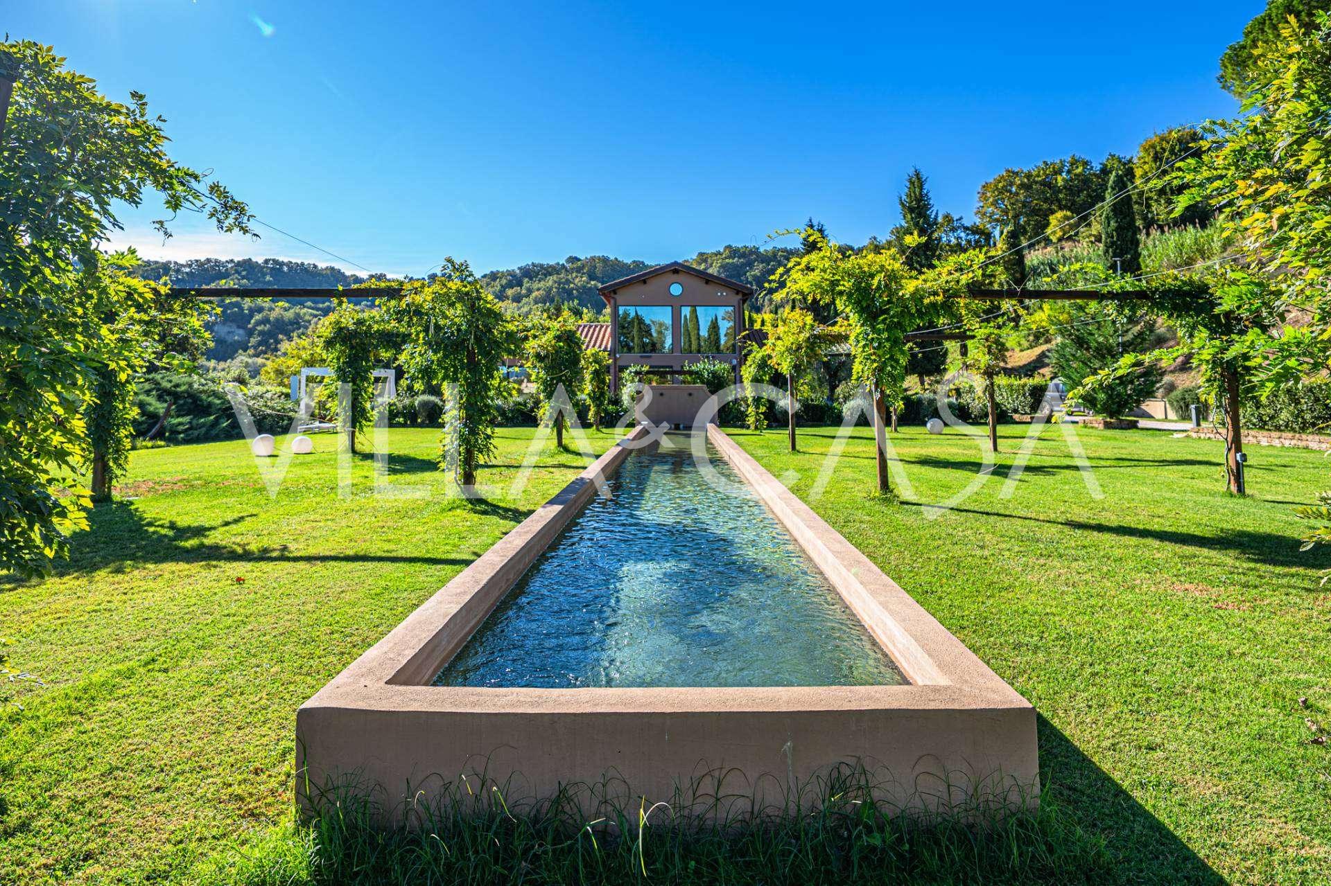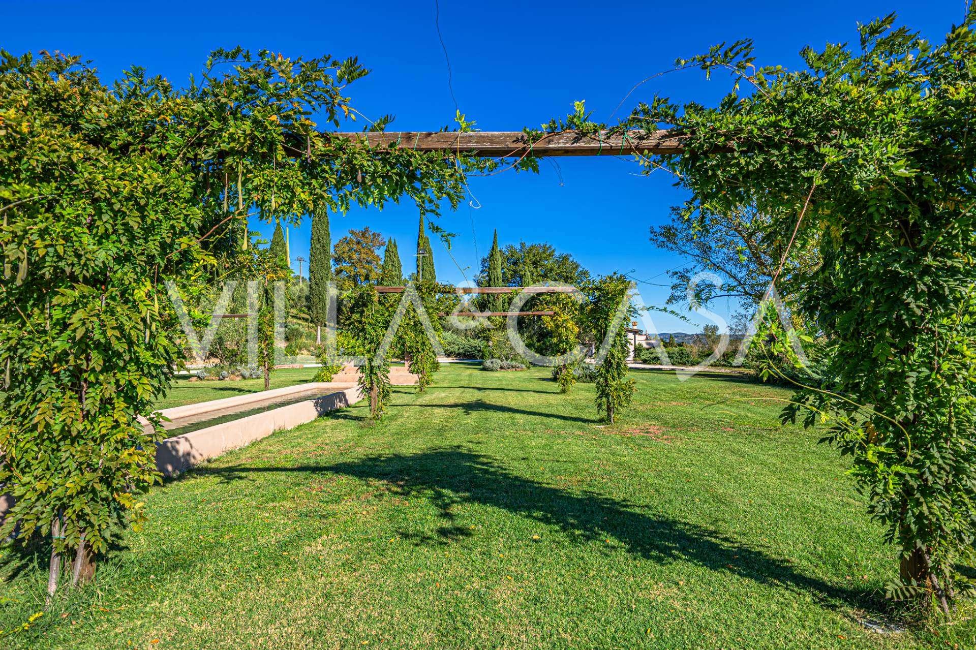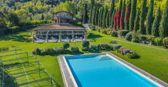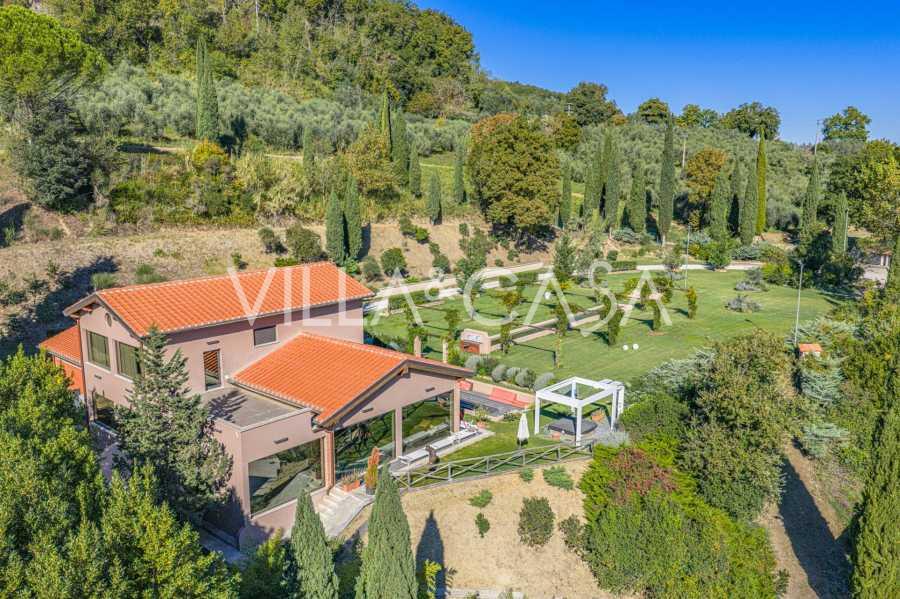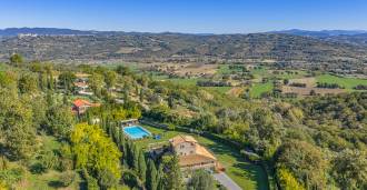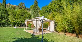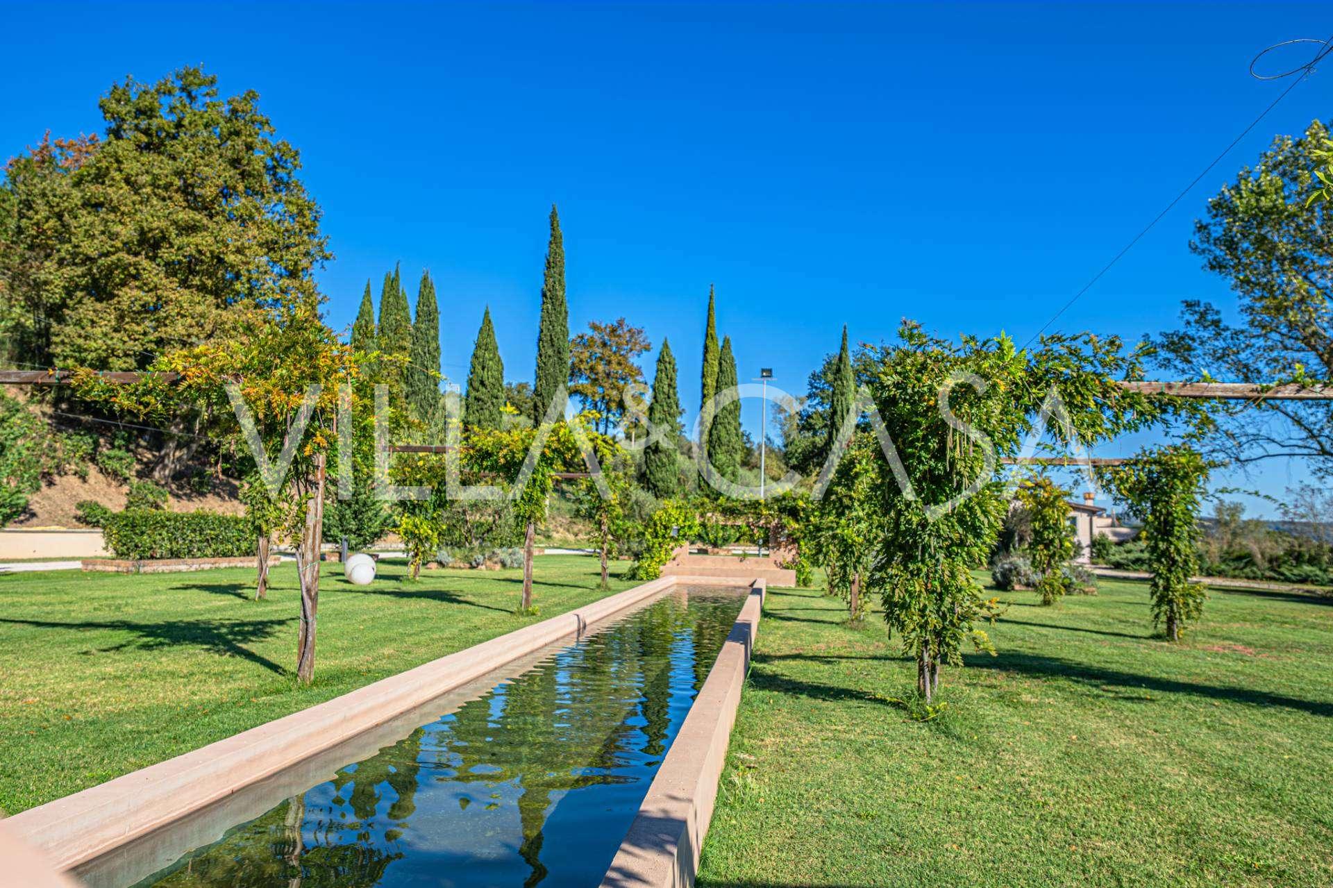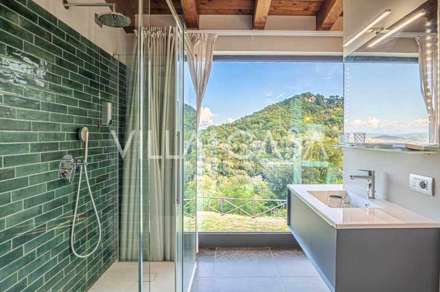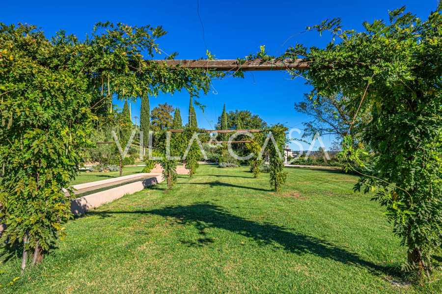 Dieses Anwesen in der Provinz Viterbo erhebt sich über die Hügel und bietet einen unglaublichen Blick auf das Tibertal. Es erstreckt sich über etwa 25 Hektar gepflegten Park, der eine Atmosphäre völliger Ruhe und Abgeschiedenheit schafft. Jeder Bereich hier ist auf Komfort, Eleganz und Harmonie ausgelegt: große sonnige Terrassen, Pavillons, stilvolle Liegestühle am Pool und schattige Wege, umgeben von jahrhundertealten Bäumen.