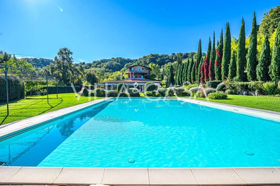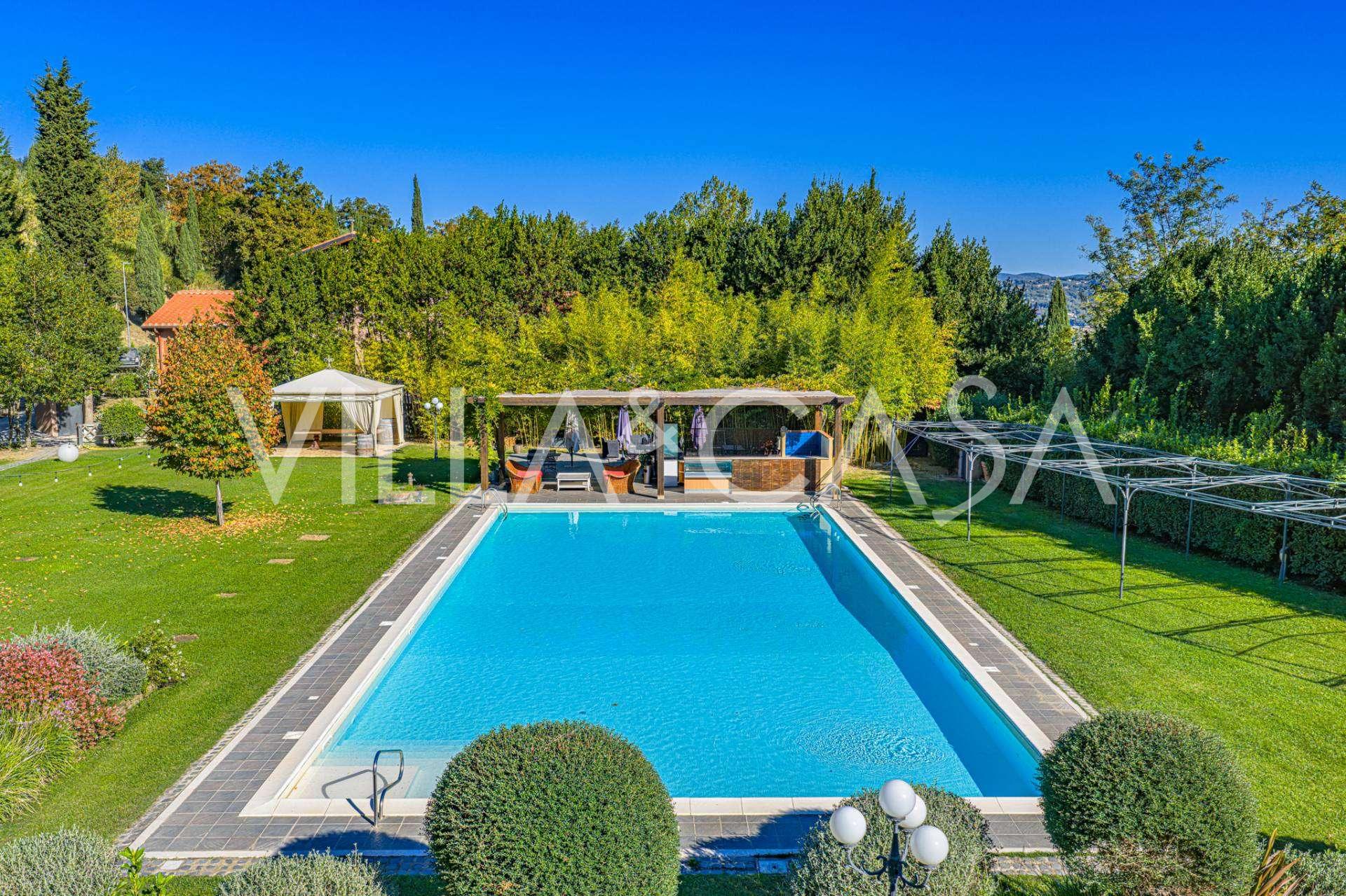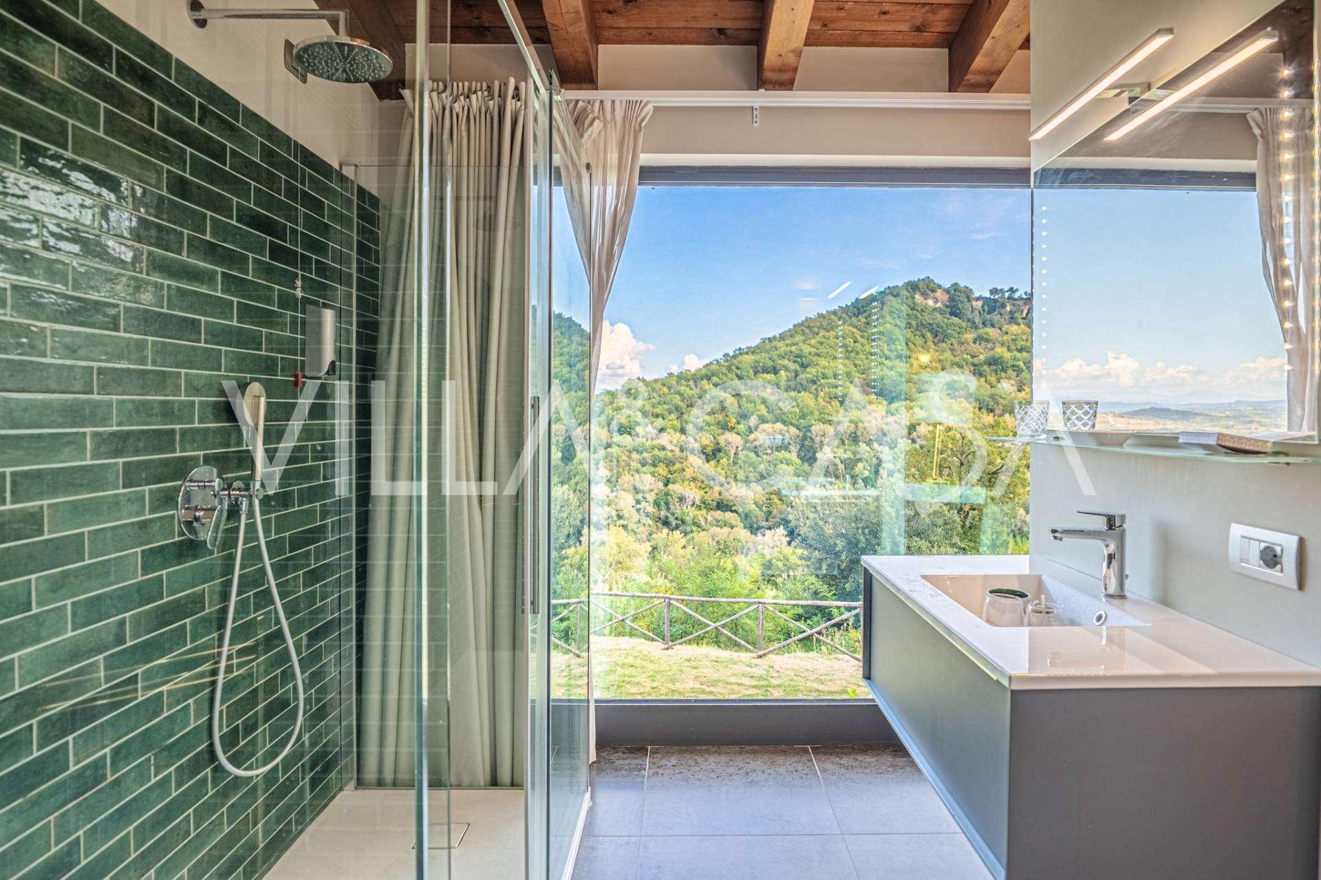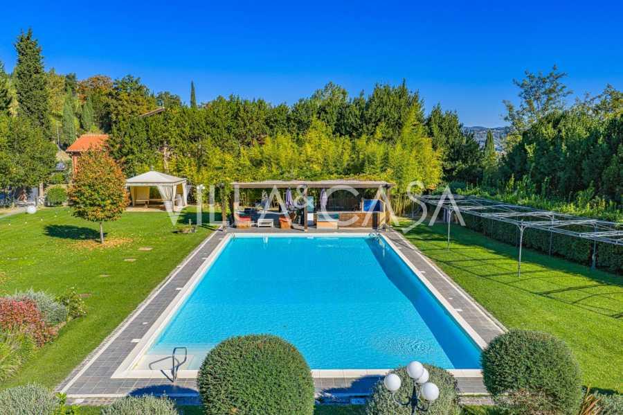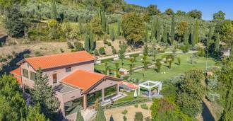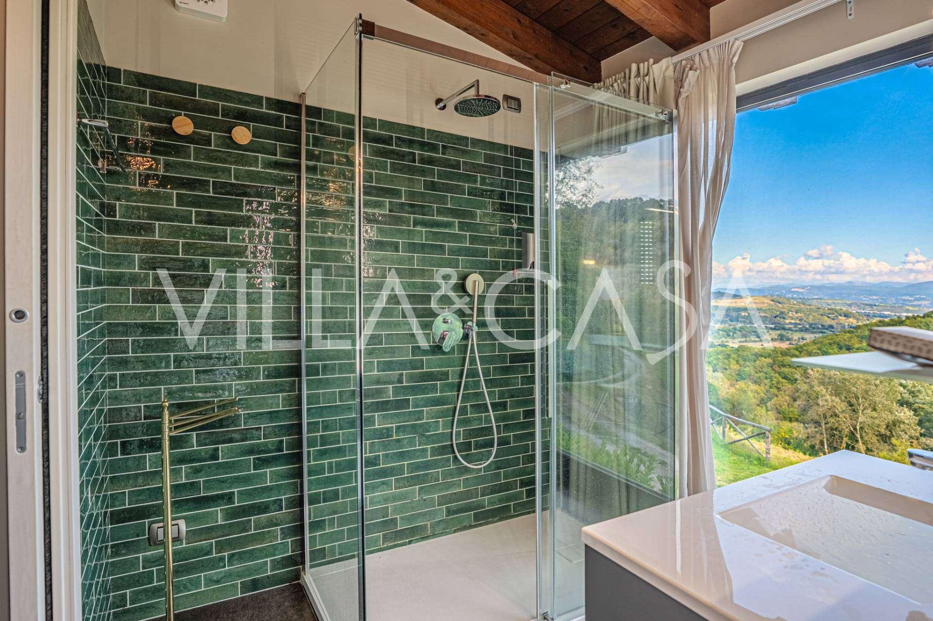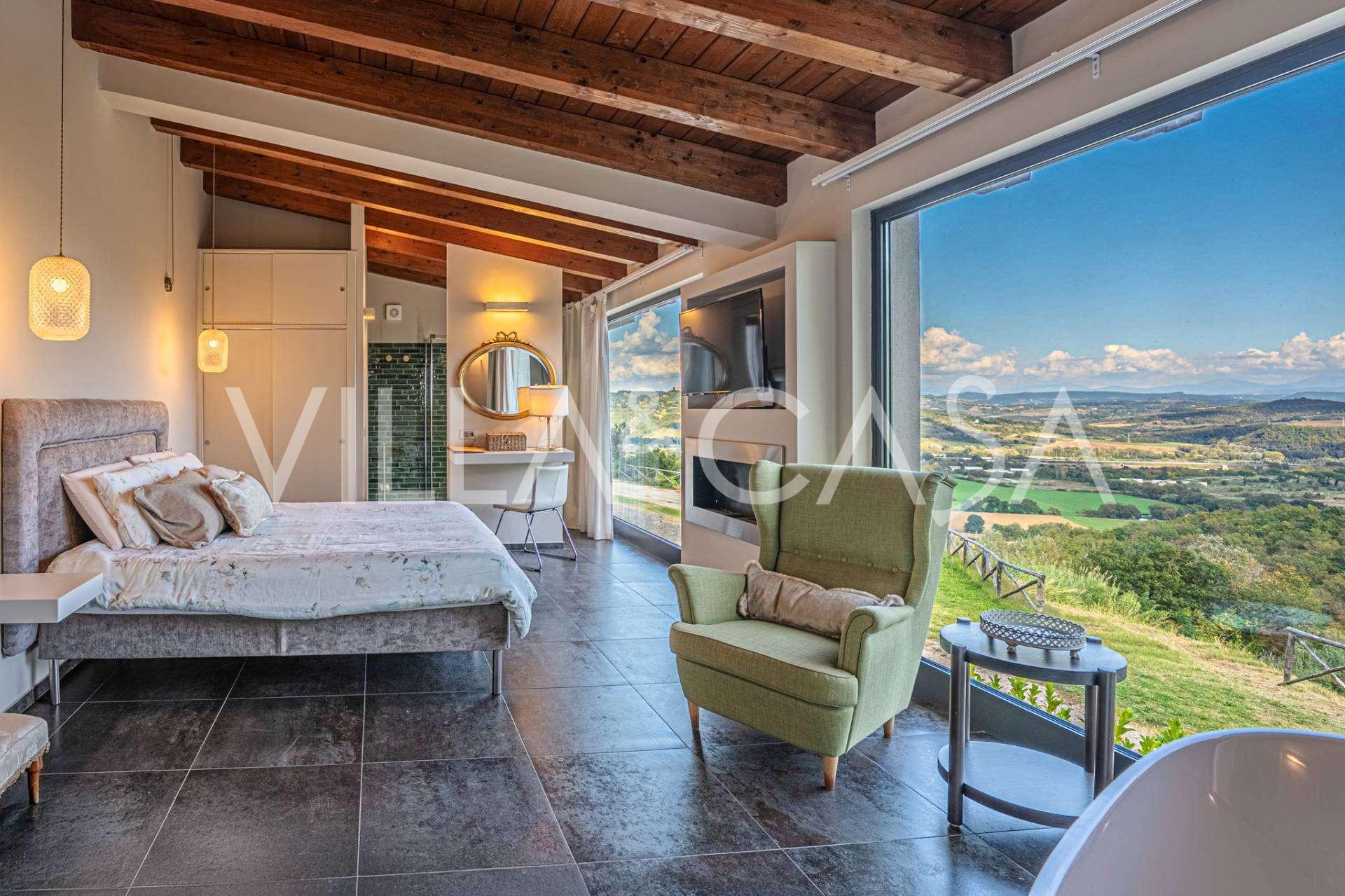 Dieses Anwesen in der Provinz Viterbo erhebt sich über die Hügel und bietet einen unglaublichen Blick auf das Tibertal. Es erstreckt sich über etwa 25 Hektar gepflegten Park, der eine Atmosphäre völliger Ruhe und Abgeschiedenheit schafft. Jeder Bereich hier ist auf Komfort, Eleganz und Harmonie ausgelegt: große sonnige Terrassen, Pavillons, stilvolle Liegestühle am Pool und schattige Wege, umgeben von jahrhundertealten Bäumen.