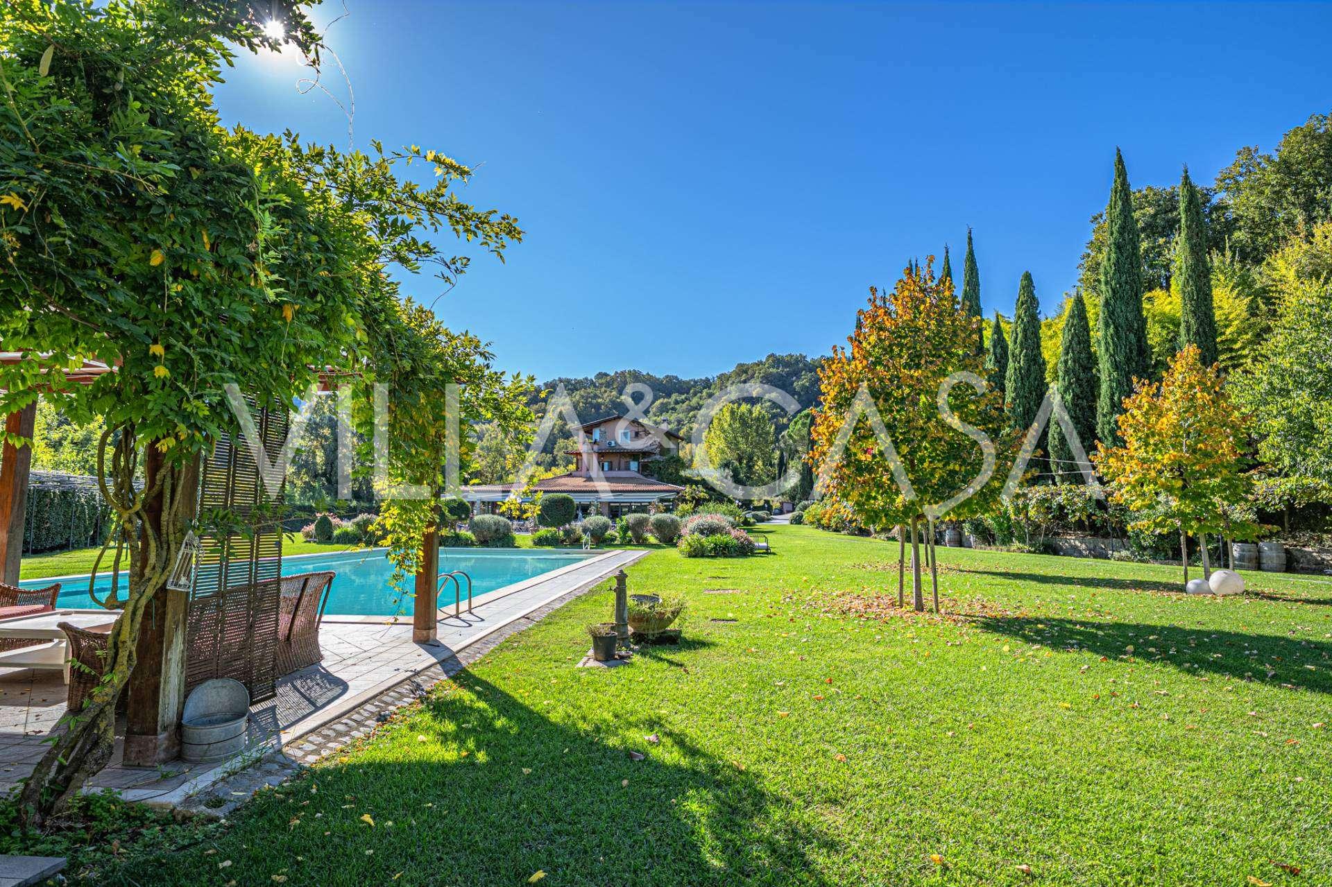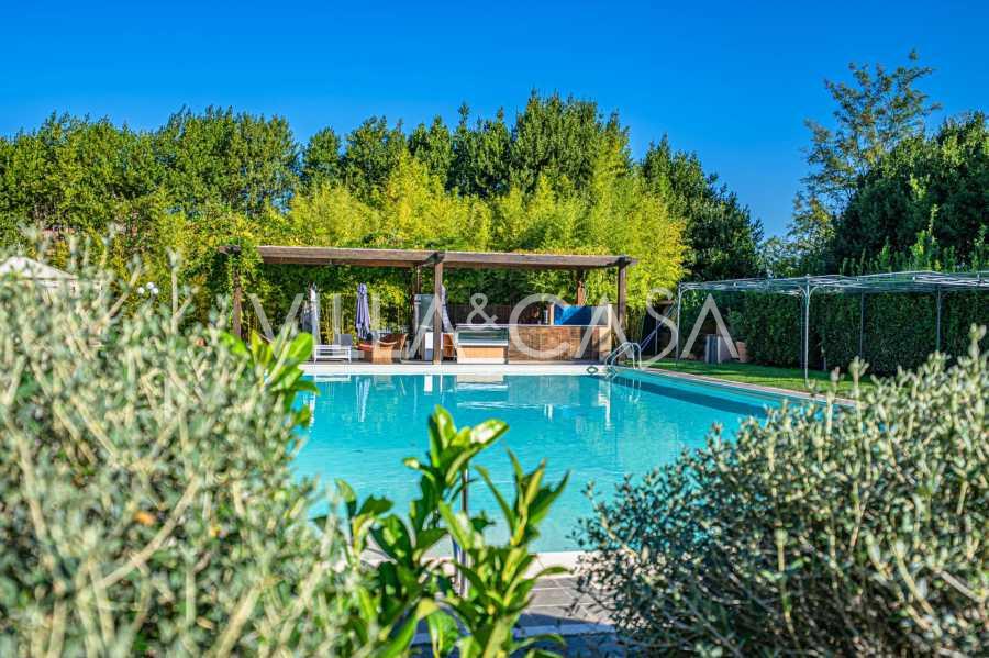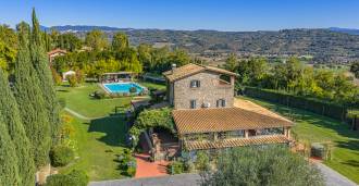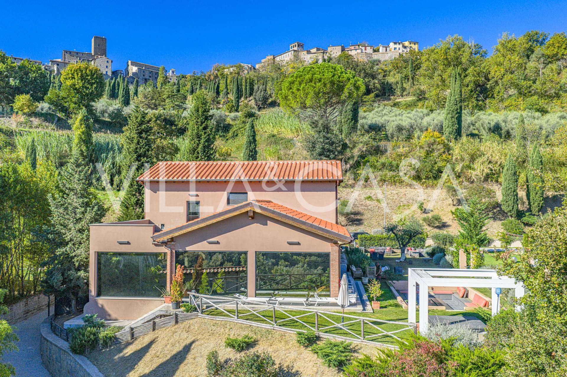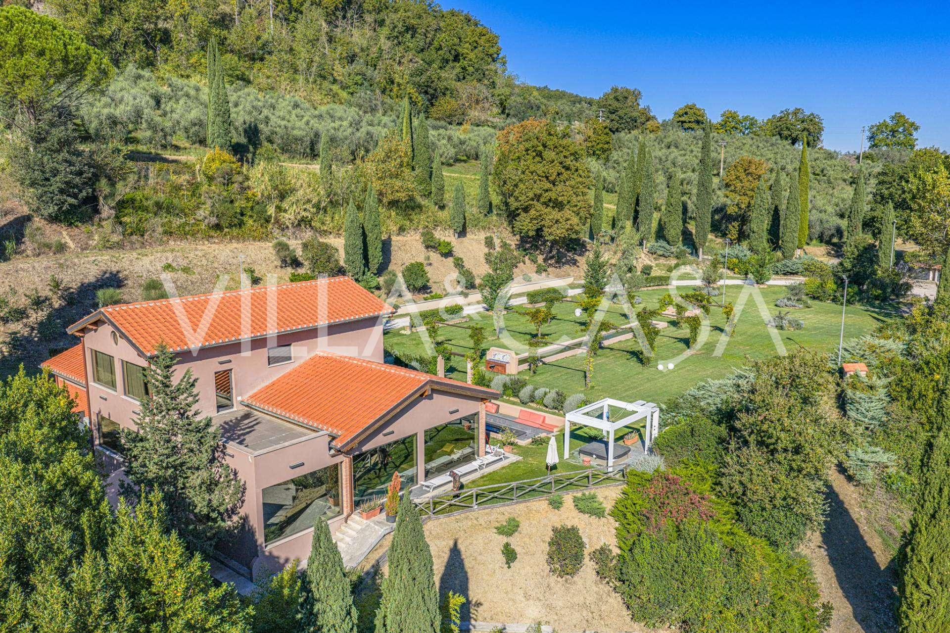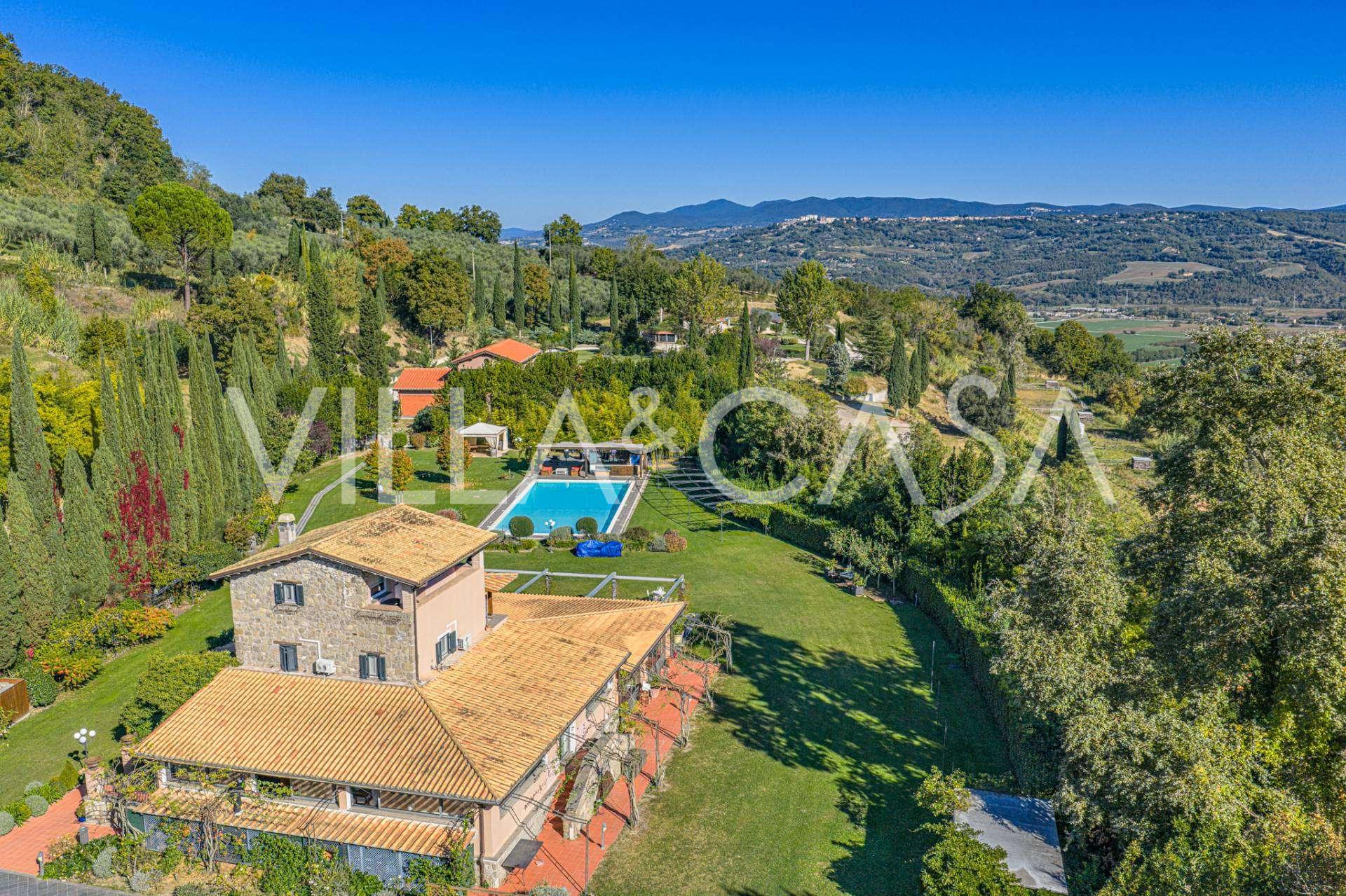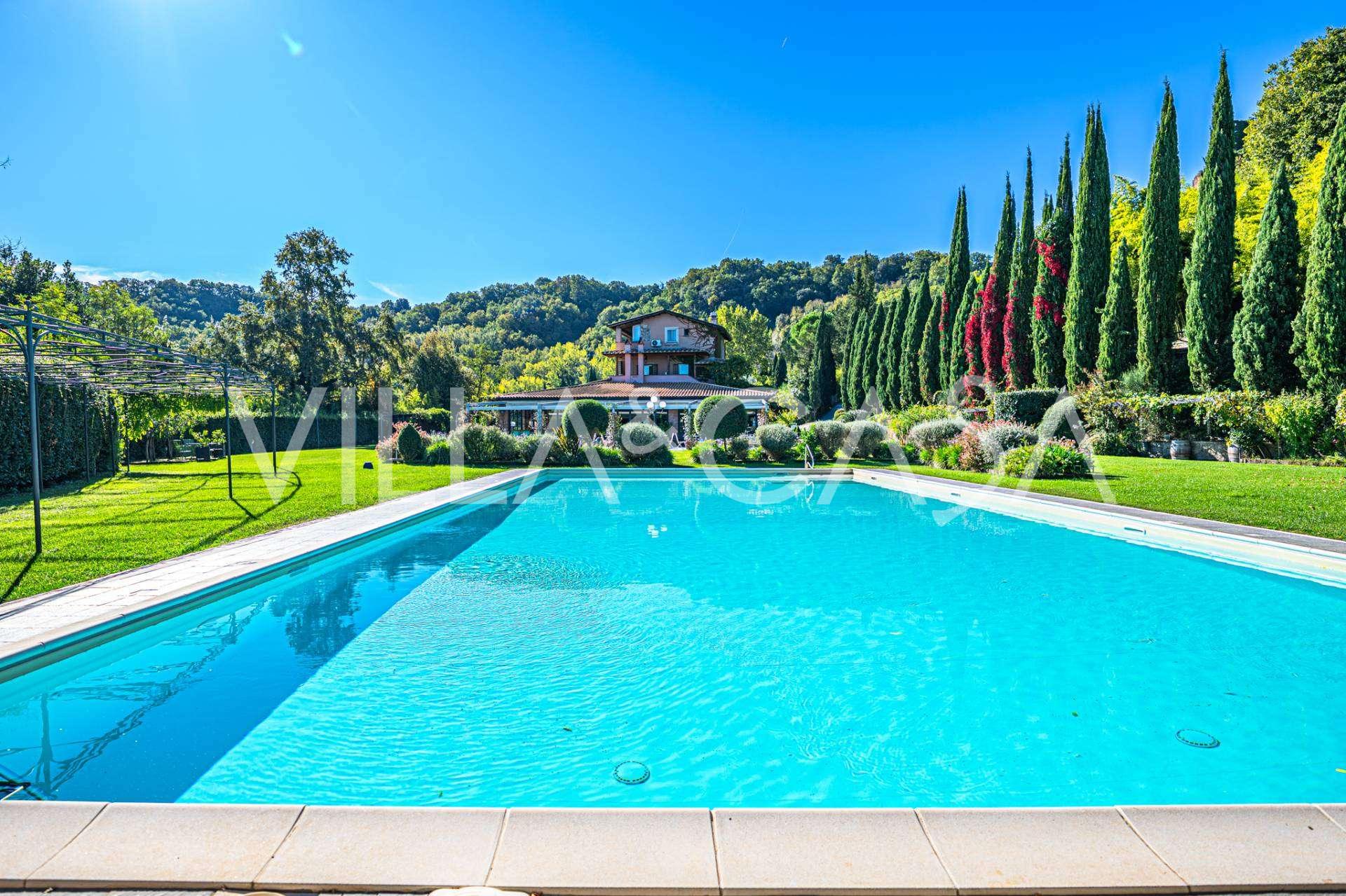Dieses Anwesen in der Provinz Viterbo erhebt sich über die Hügel und bietet einen unglaublichen Blick auf das Tibertal. Es erstreckt sich über etwa 25 Hektar gepflegten Park, der eine Atmosphäre völliger Ruhe und Abgeschiedenheit schafft. Jeder Bereich hier ist auf Komfort, Eleganz und Harmonie ausgelegt: große sonnige Terrassen, Pavillons, stilvolle Liegestühle am Pool und schattige Wege, umgeben von jahrhundertealten Bäumen.