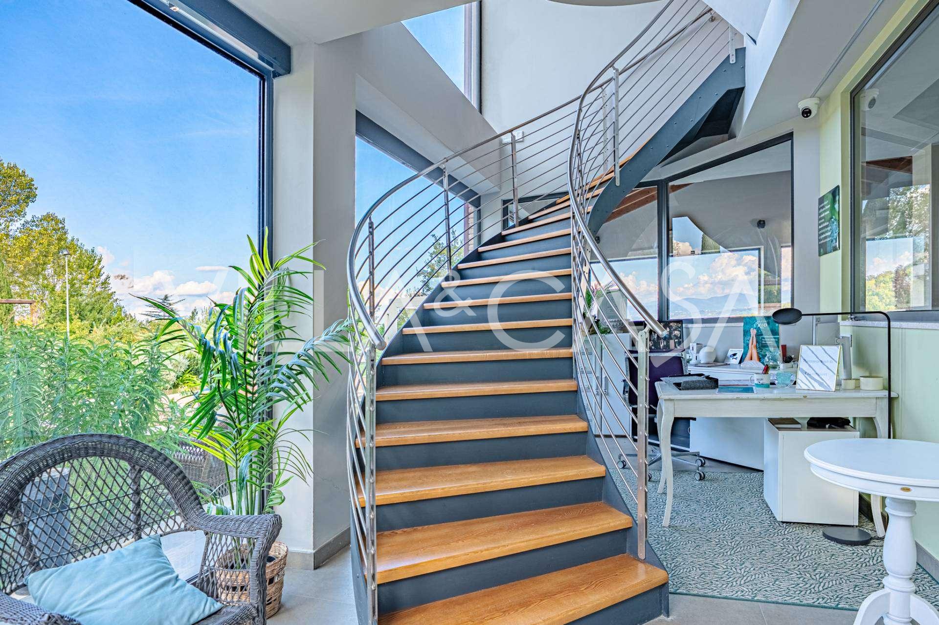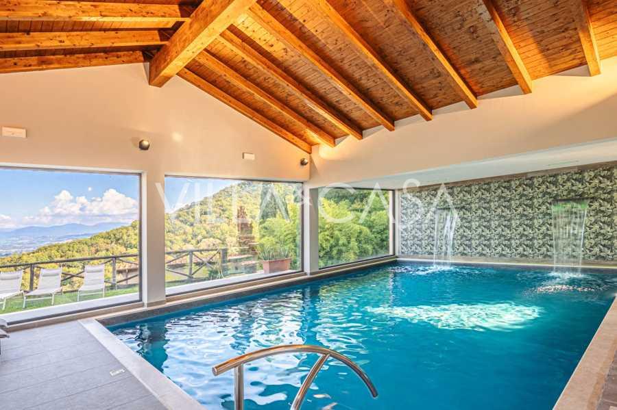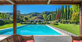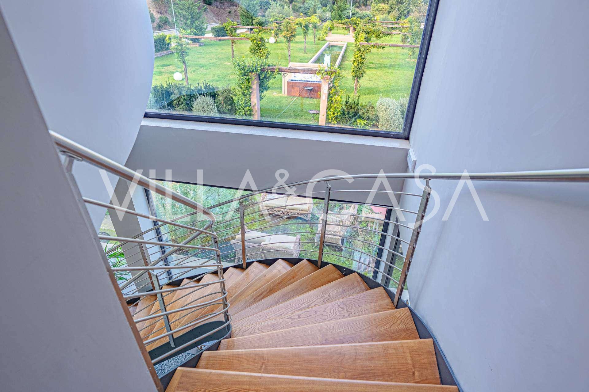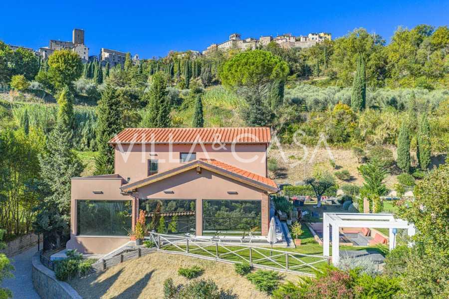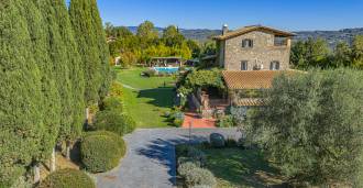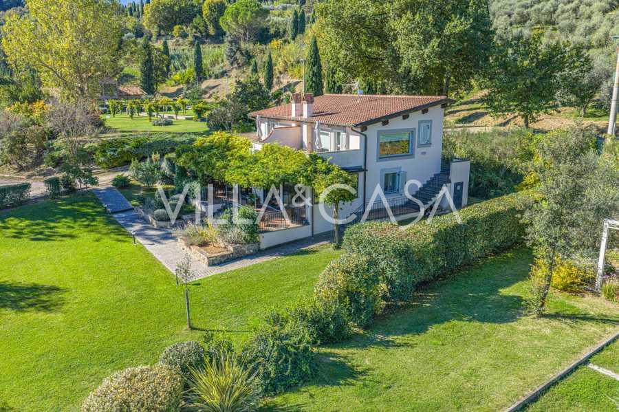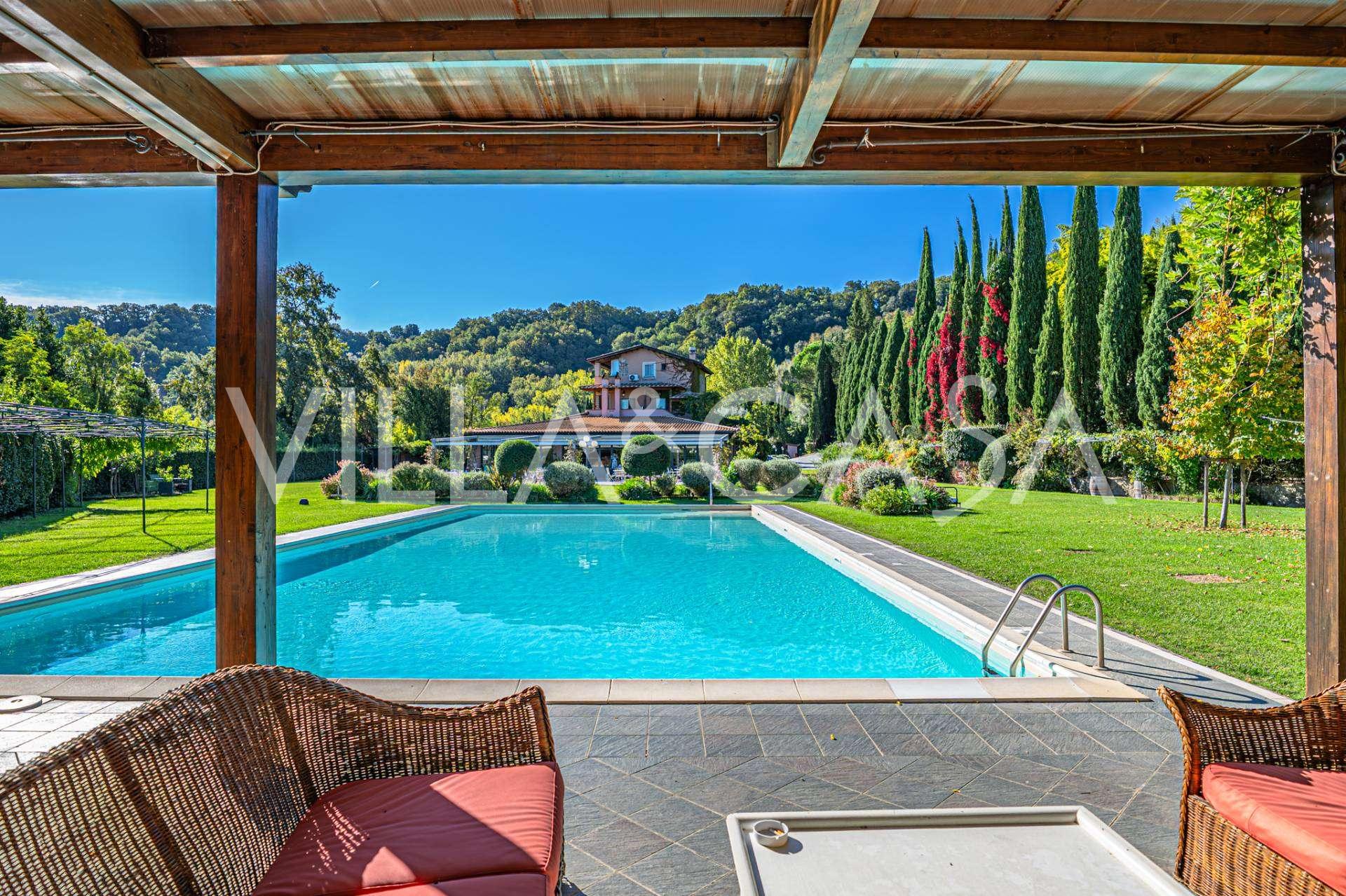 Dieses Anwesen in der Provinz Viterbo erhebt sich über die Hügel und bietet einen unglaublichen Blick auf das Tibertal. Es erstreckt sich über etwa 25 Hektar gepflegten Park, der eine Atmosphäre völliger Ruhe und Abgeschiedenheit schafft. Jeder Bereich hier ist auf Komfort, Eleganz und Harmonie ausgelegt: große sonnige Terrassen, Pavillons, stilvolle Liegestühle am Pool und schattige Wege, umgeben von jahrhundertealten Bäumen.