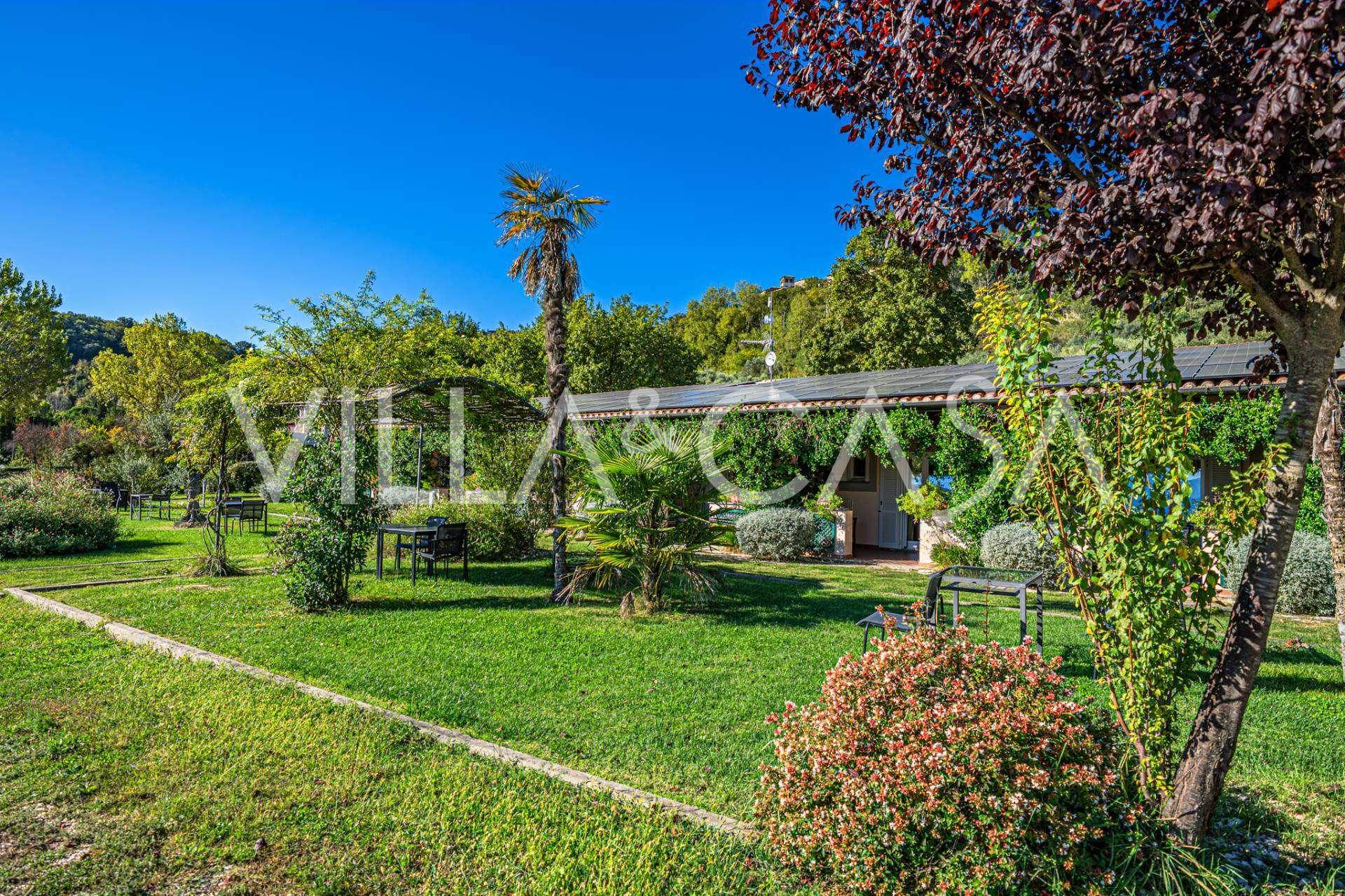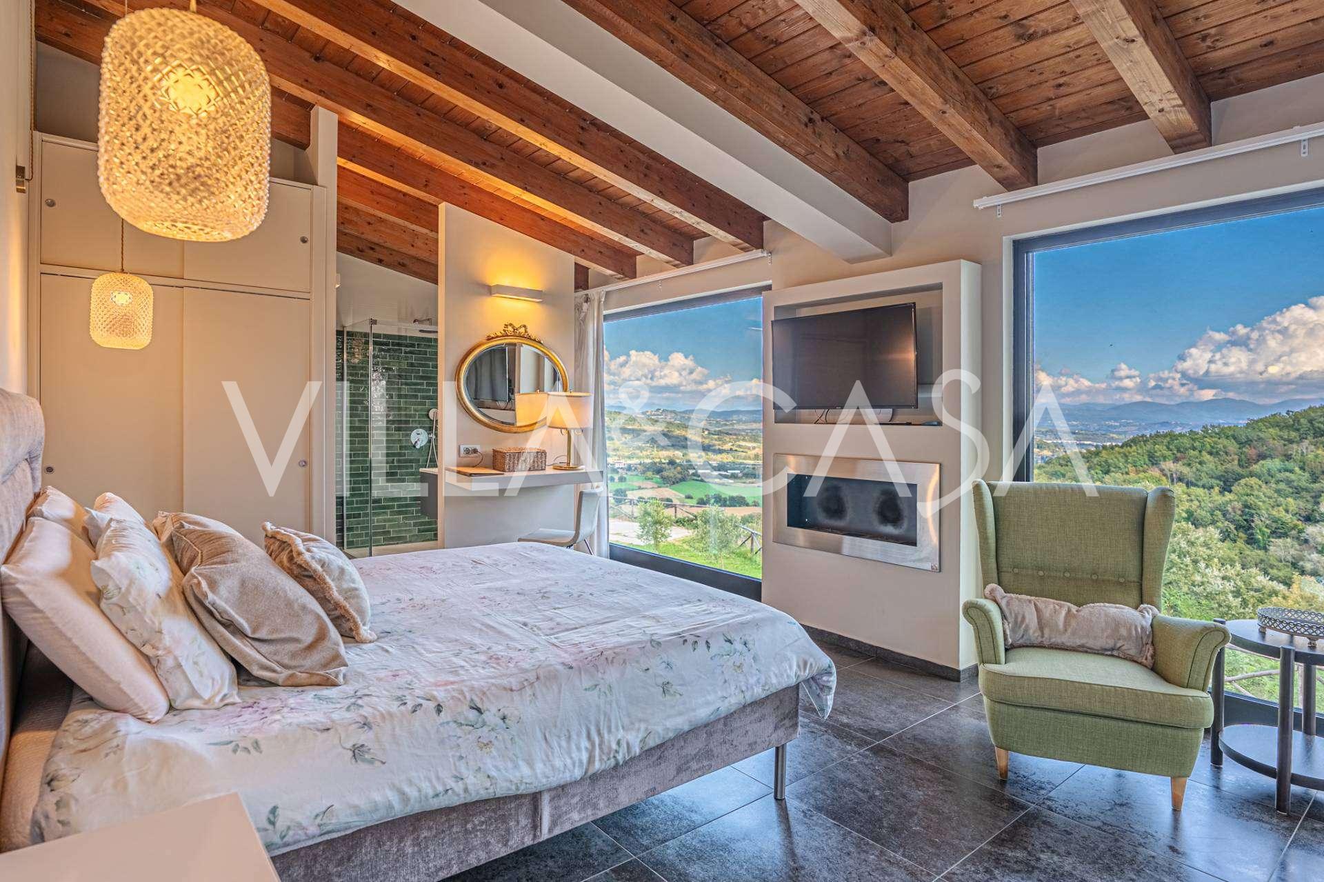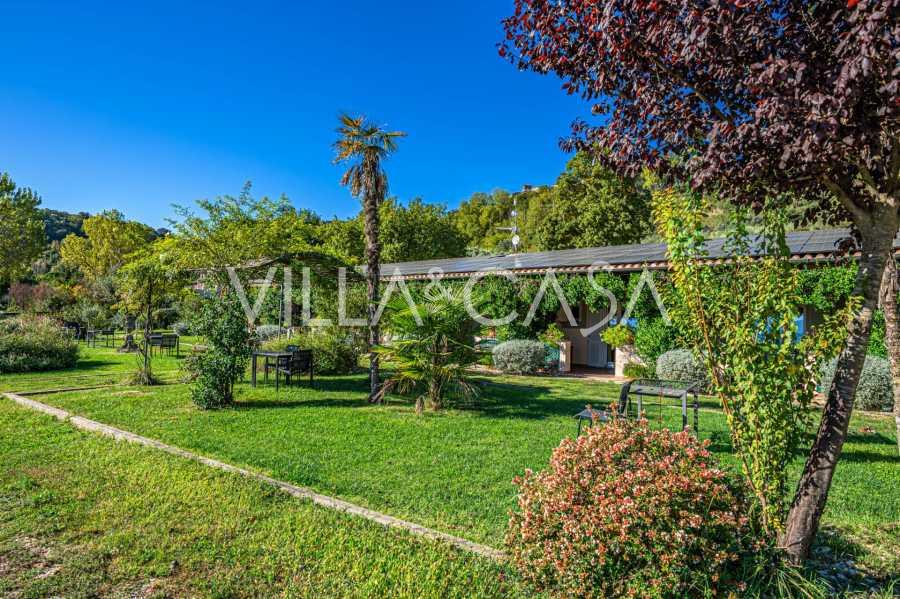 Der kürzlich vollständig restaurierte Komplex umfasst drei Hauptgebäude mit einer Gesamtfläche von etwa 2000 m², die in 11 luxuriöse Apartments unterteilt sind, von denen viele über separate Eingänge verfügen. Die Innenräume kombinieren traditionelle Ästhetik mit raffiniertem italienischen Design: geräumige Zimmer, Majolikaböden, hohe Decken mit freiliegenden Balken und elegante Möbel. Einige Apartments verfügen über Panoramaterrassen mit atemberaubendem Blick auf die Hügel und das Tal.