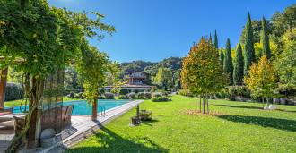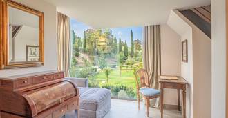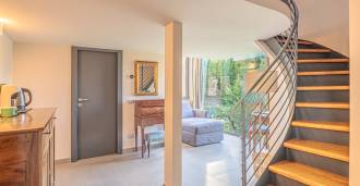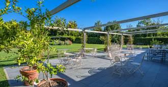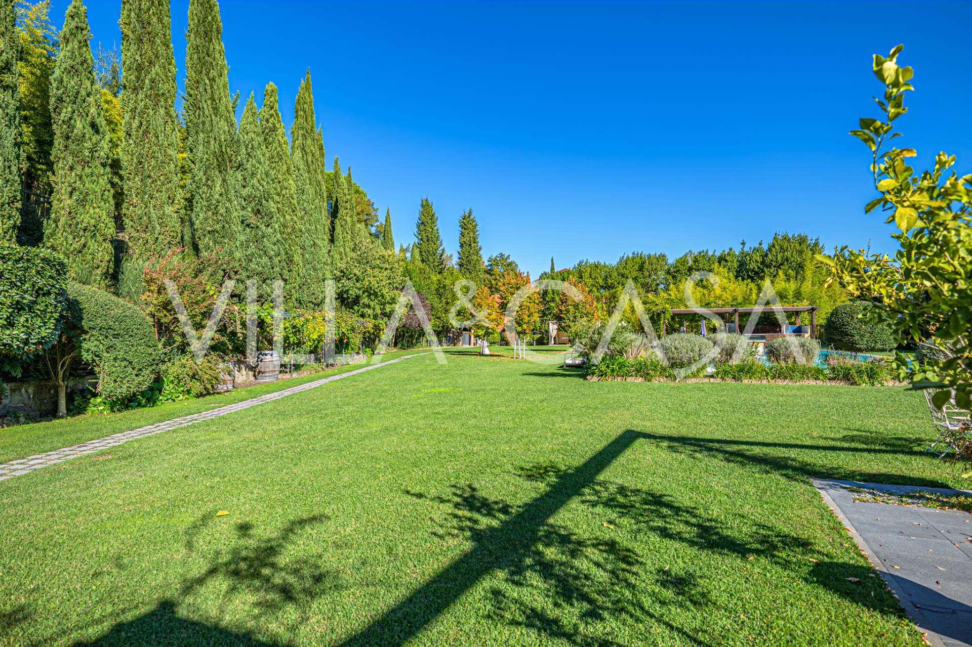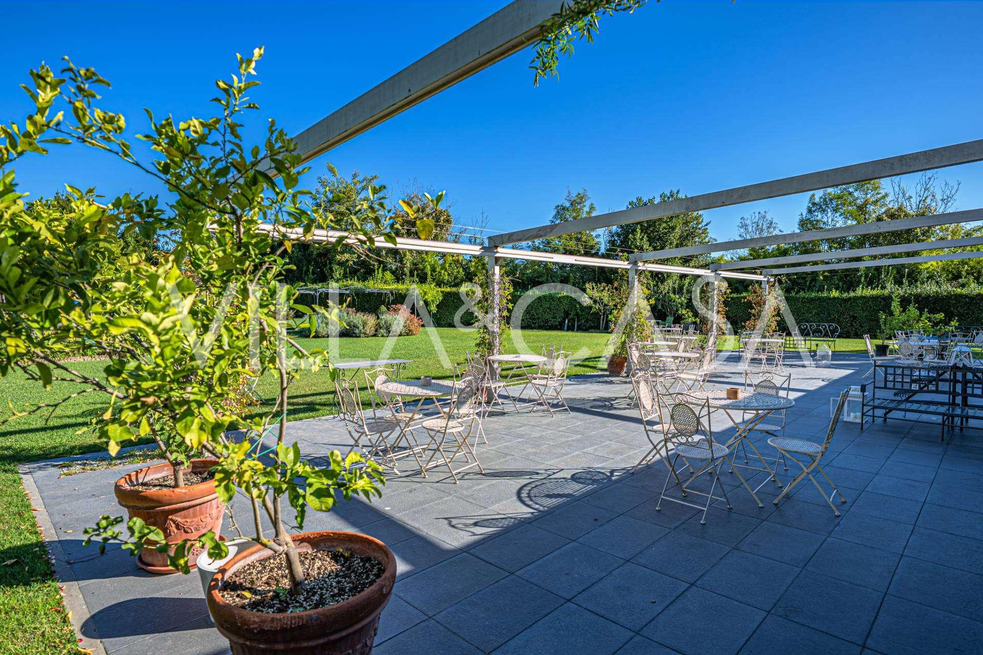 In der Nähe befindet sich eine stilvolle Bar mit Blick auf den Park, wo man bei einem Aperitif entspannen oder die Ruhe im Freien genießen kann.