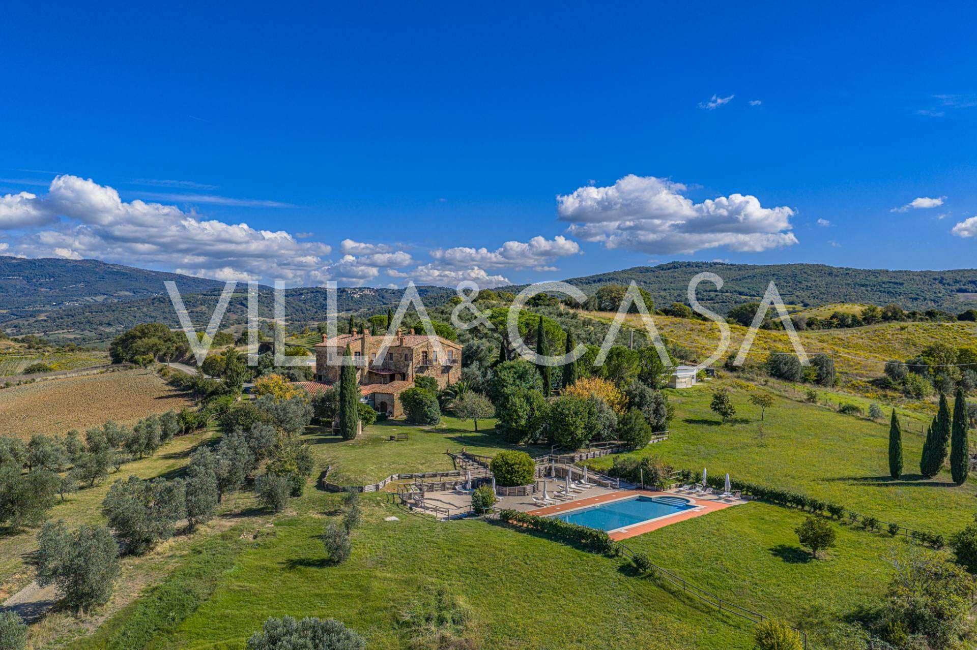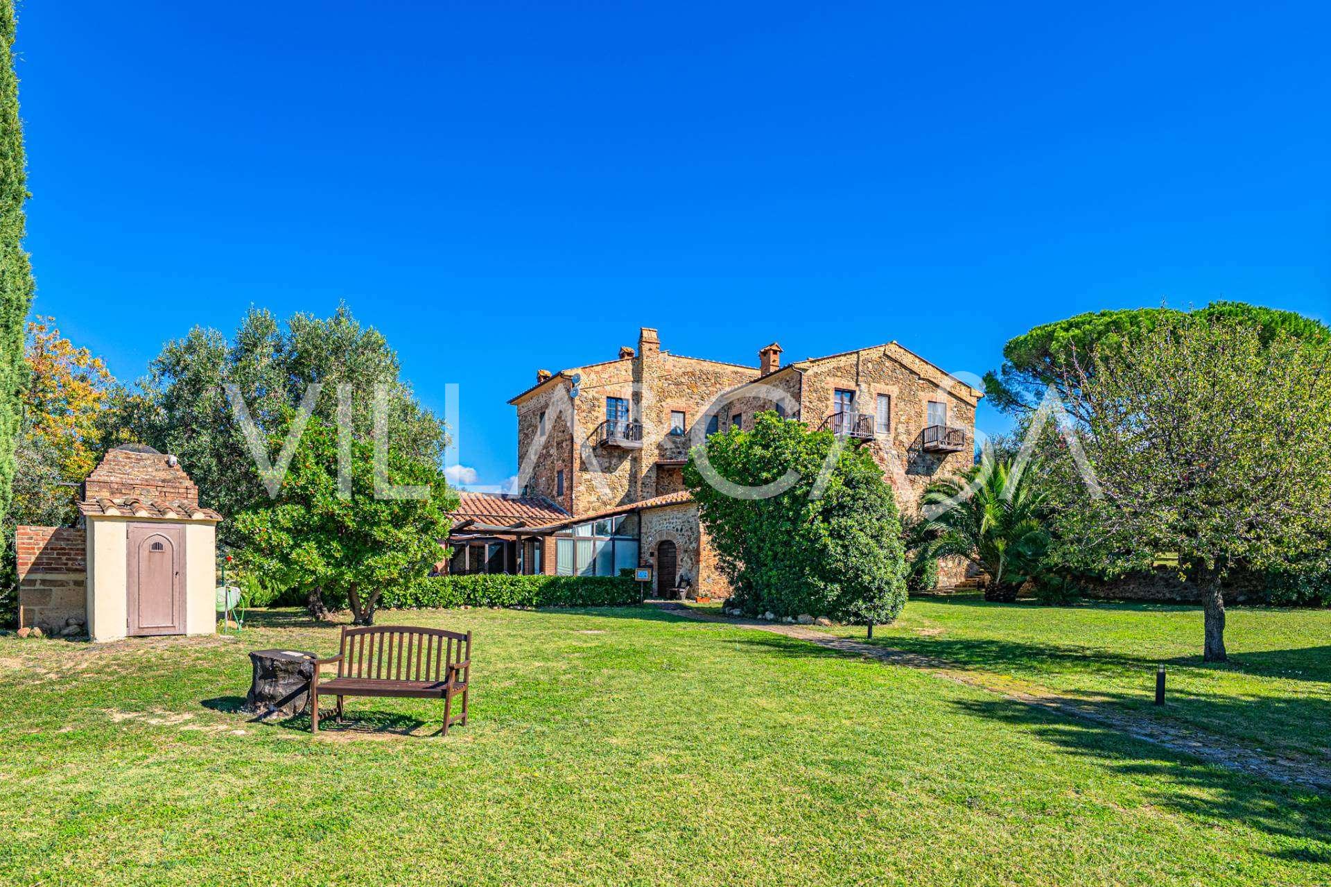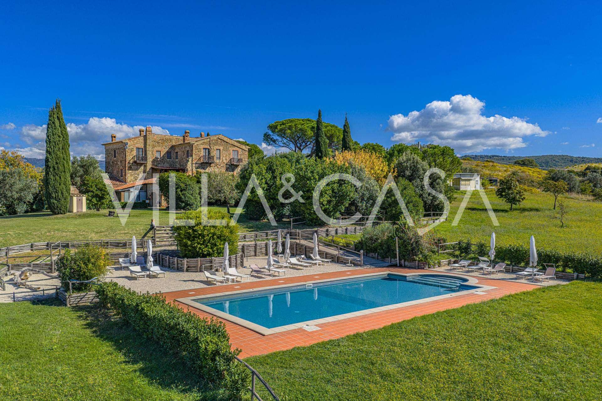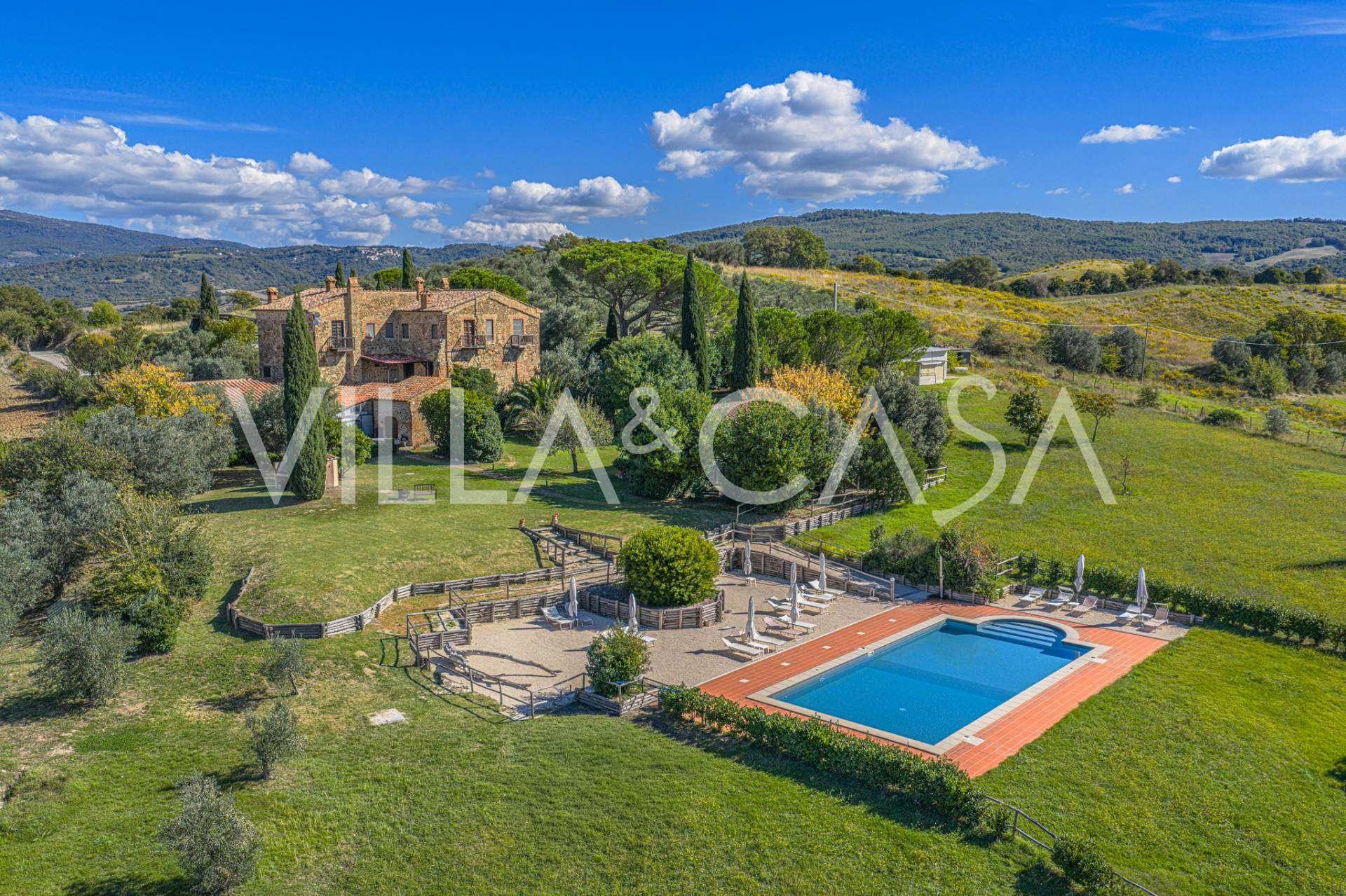 Im Herzen der sonnigen toskanischen Maremma, zwischen den sanften Hügeln von Scansano und Roccalbegna, erhebt sich eine wunderschöne historische Villa aus dem 17. Jahrhundert, die authentische italienische Eleganz mit modernem Komfort vereint. Dieses raffinierte Landgut, das sorgfältig restauriert wurde, um den historischen Geist zu bewahren, präsentiert sich heute als elegantes Wohnhaus, das sich sowohl für den privaten Gebrauch als auch als Boutique-Hotel eignet.