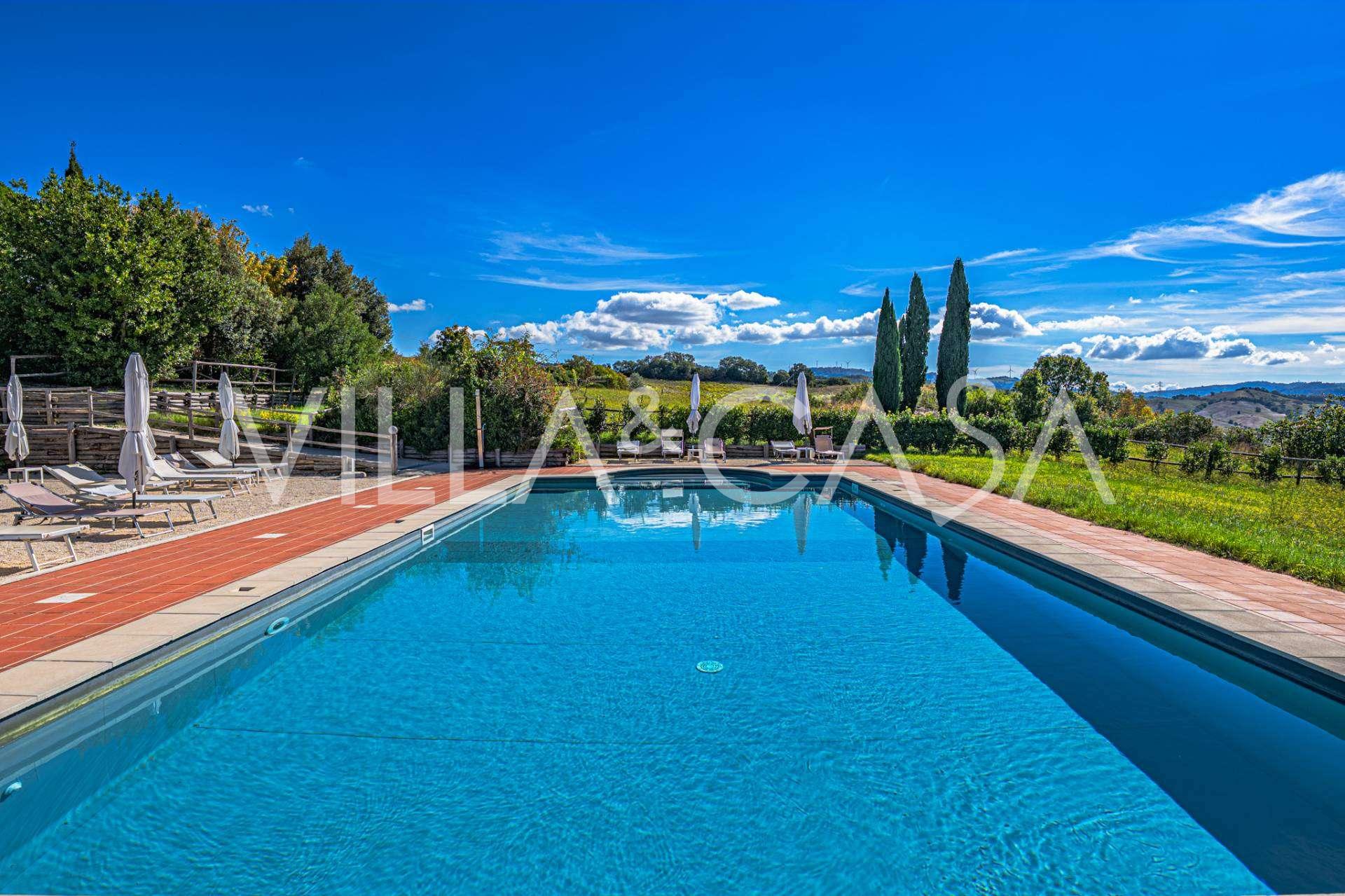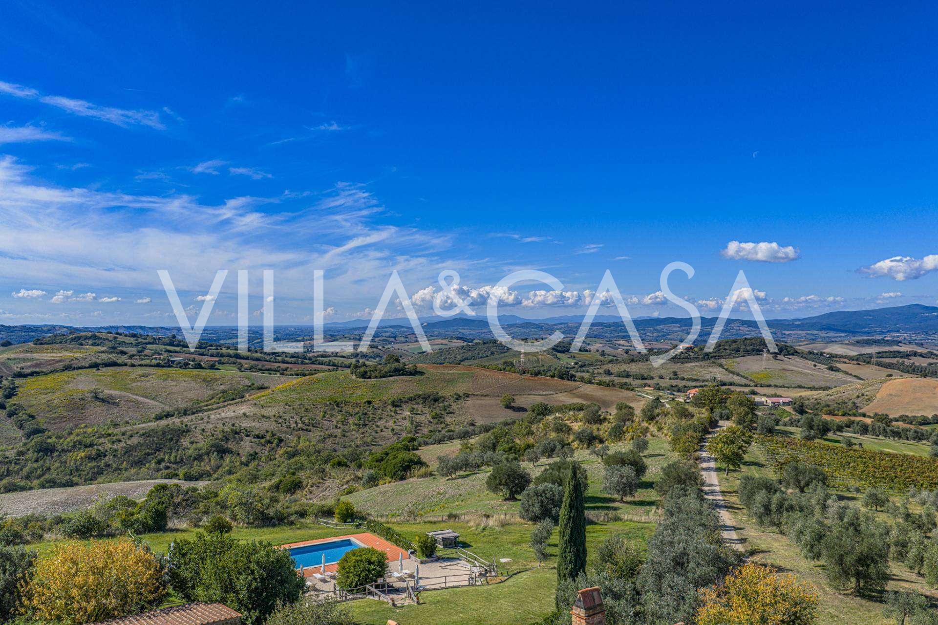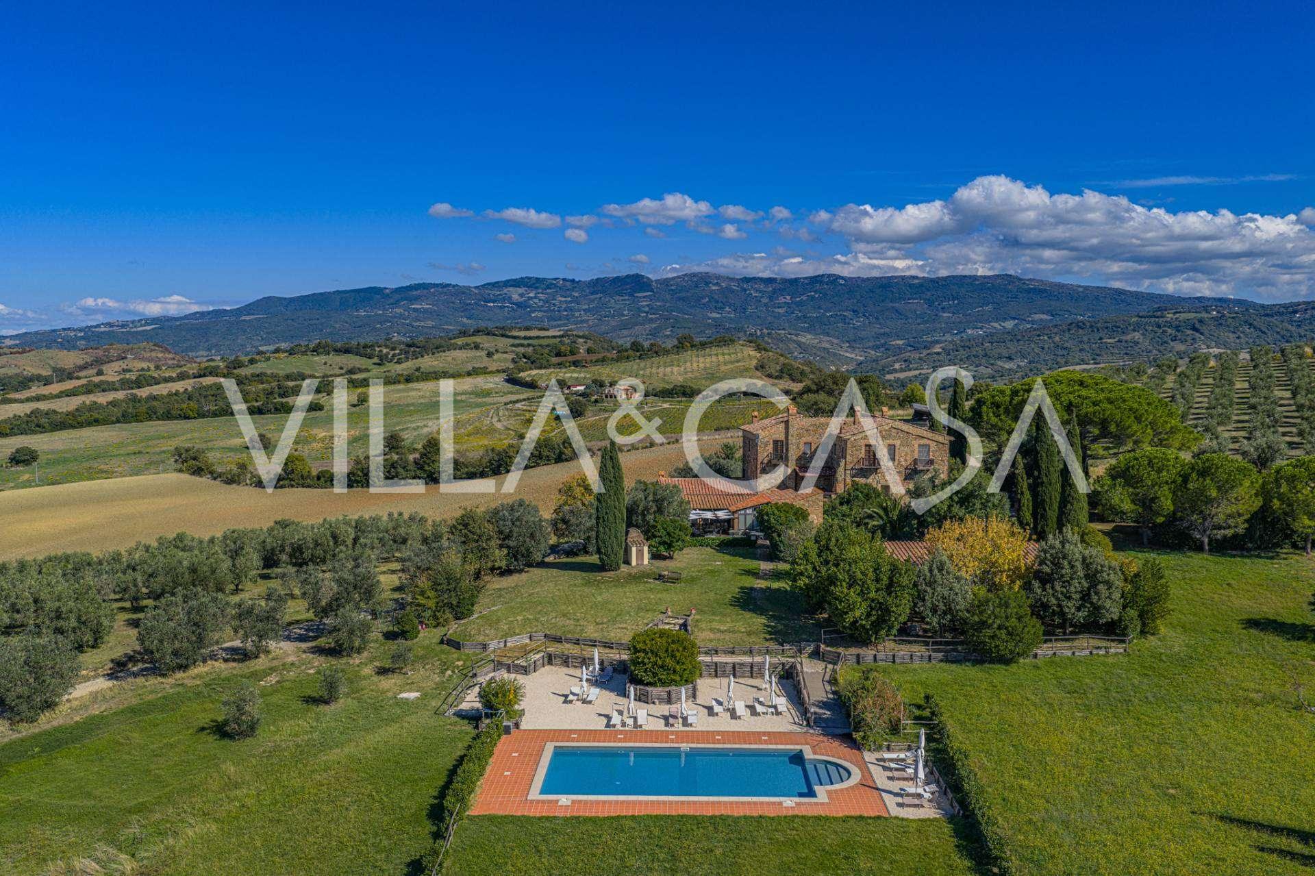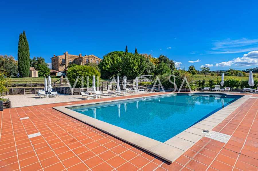 Im Herzen der sonnigen toskanischen Maremma, zwischen den sanften Hügeln von Scansano und Roccalbegna, erhebt sich eine wunderschöne historische Villa aus dem 17. Jahrhundert, die authentische italienische Eleganz mit modernem Komfort vereint. Dieses raffinierte Landgut, das sorgfältig restauriert wurde, um den historischen Geist zu bewahren, präsentiert sich heute als elegantes Wohnhaus, das sich sowohl für den privaten Gebrauch als auch als Boutique-Hotel eignet.