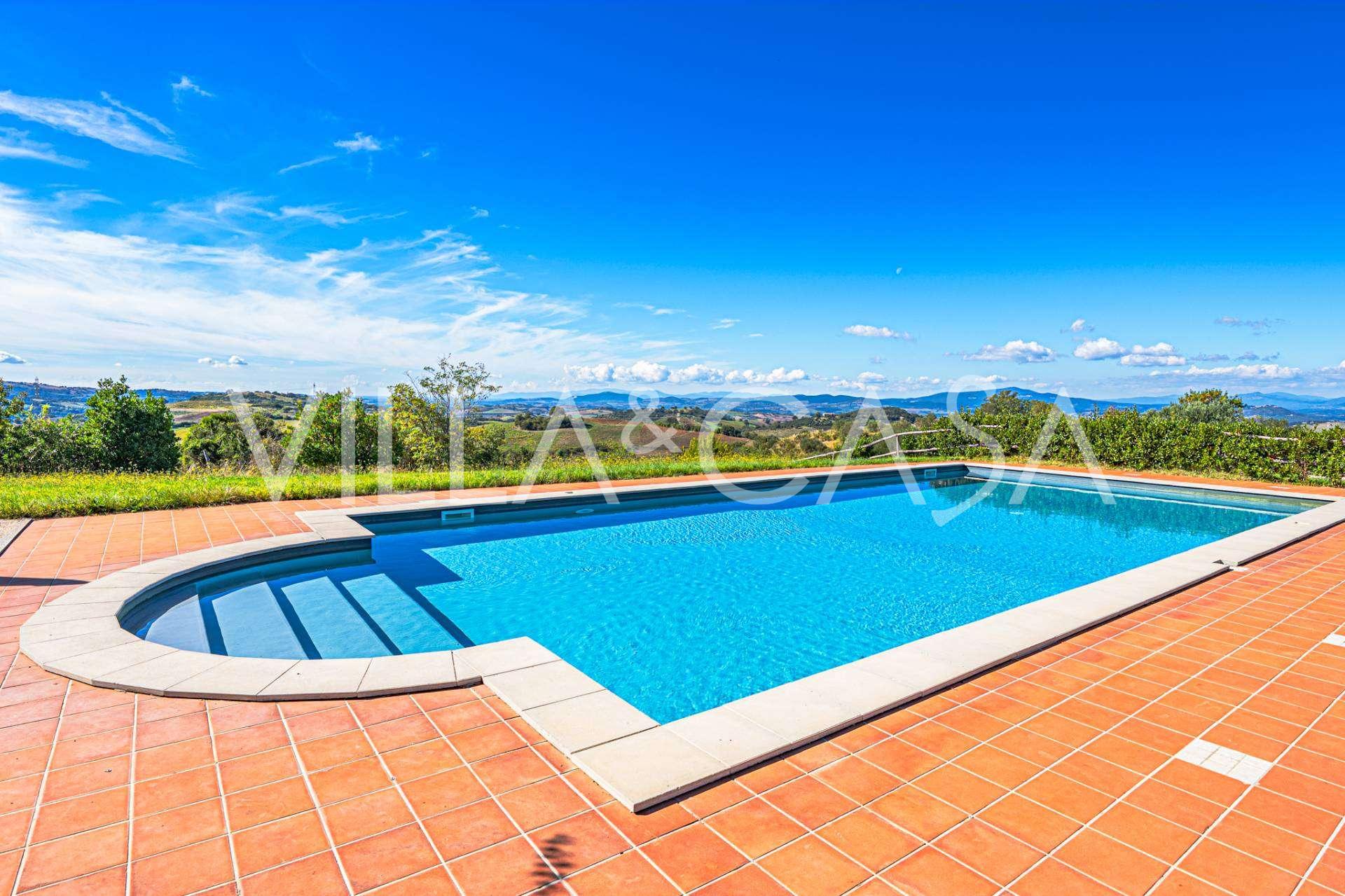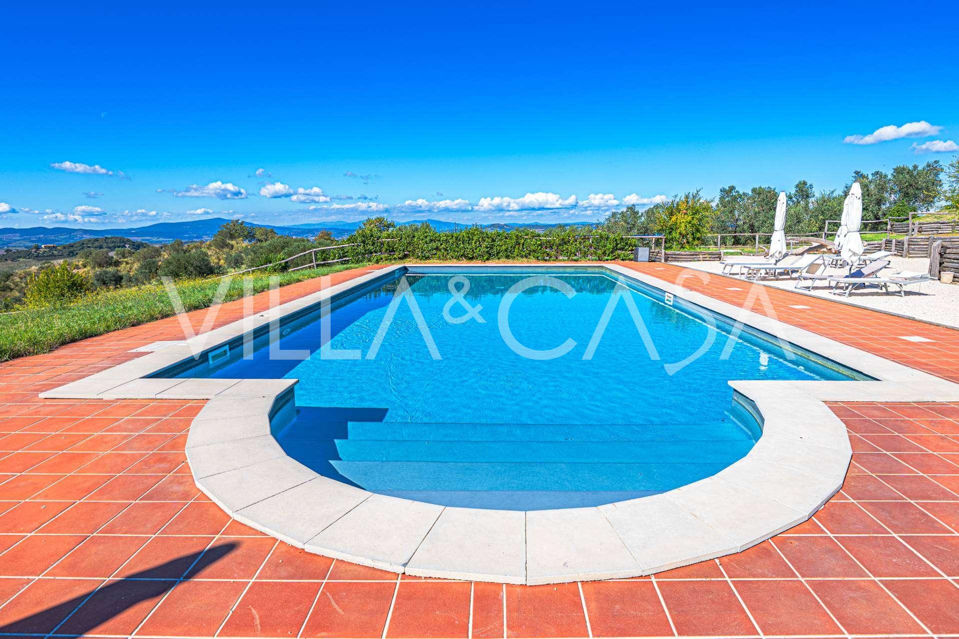 Der prächtige Park, der die Villa umgibt, ist geschaffen, um die Natur in vollen Zügen zu genießen: Terrassen, blühende Hecken, Düfte von Lavendel und Rosmarin sowie beeindruckende Panoramen der toskanischen Hügel. Der Panorama-Pool mit 14×7 Metern, Terrakotta-Solarium und gepflasterter Fläche ist ideal für festliche Empfänge oder zur Entspannung in einer Atmosphäre vollkommener Ruhe.