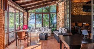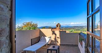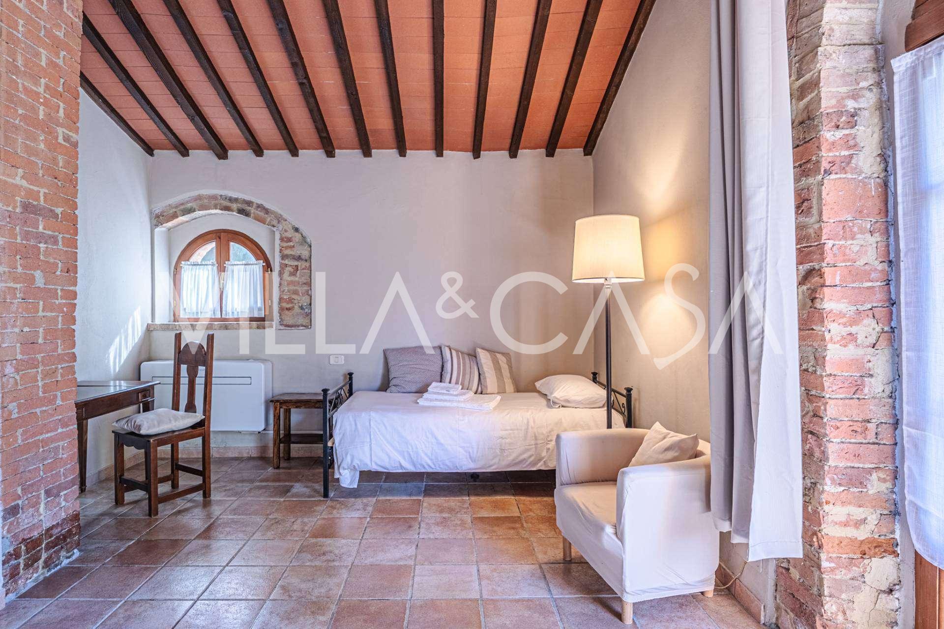 Im zweiten Nebengebäude gibt es ein gemütliches Studio und ein elegantes Zweizimmer-Apartment. Beide Nebengebäude sind durch eine geräumige Veranda verbunden, die im Sommer zu einer offenen Halle unter Bögen wird, ideal für Frühstücke bei Sonnenaufgang oder abendliche Aperitifs bei Sonnenuntergang.