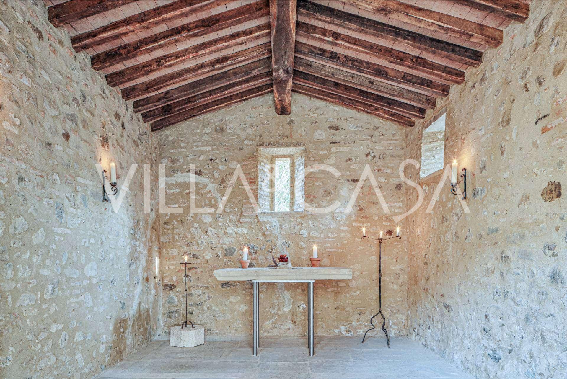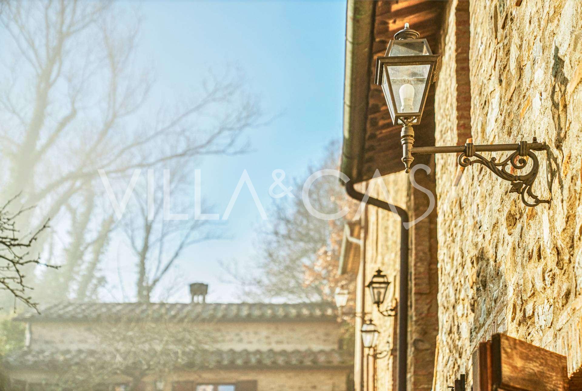 Die Innenräume bewahren sorgfältig die historische Atmosphäre des Borgo: antike Terrakottafliesen, handgefertigte Holzbalken, Steinwände und authentische Kamine, kombiniert mit modernen technischen Lösungen, autonomer Heizung und voll ausgestatteten Küchen. Jeder Raum ist bis ins kleinste Detail durchdacht, um eine Atmosphäre von Harmonie, Gemütlichkeit und inspirierendem Luxus zu schaffen.