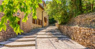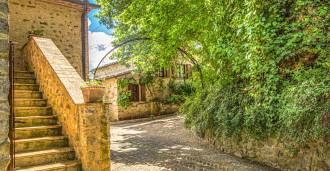 Der architektonische Plan, der den Geist einer mittelalterlichen Siedlung bewahrt, bildet ein malerisches Ensemble: steinerne Innenhöfe, Arkadenloggien, Terrassen mit Blick auf das Tal, alte Treppen und geheimnisvolle Gassen, die zu erstaunlichen Ausblicken und abgeschiedenen Plätzen führen.