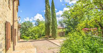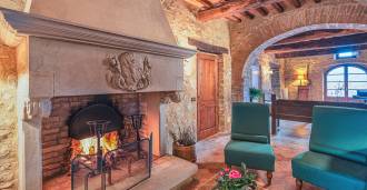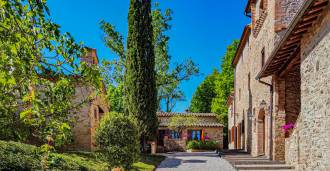 Die Lage ist makellos: Das Borgo erhebt sich über das Tibertal, nur wenige Kilometer von Città di Castello und Umbertide entfernt, in der Nähe des malerischen Niccone-Tals, an der berühmten Weinstraße. In weniger als einer Stunde erreicht man Perugia, Assisi, Cortona und den Trasimeno-See; Florenz und Rom sind etwa anderthalb Stunden entfernt, und der internationale Flughafen Perugia ist nur 40 Minuten entfernt.