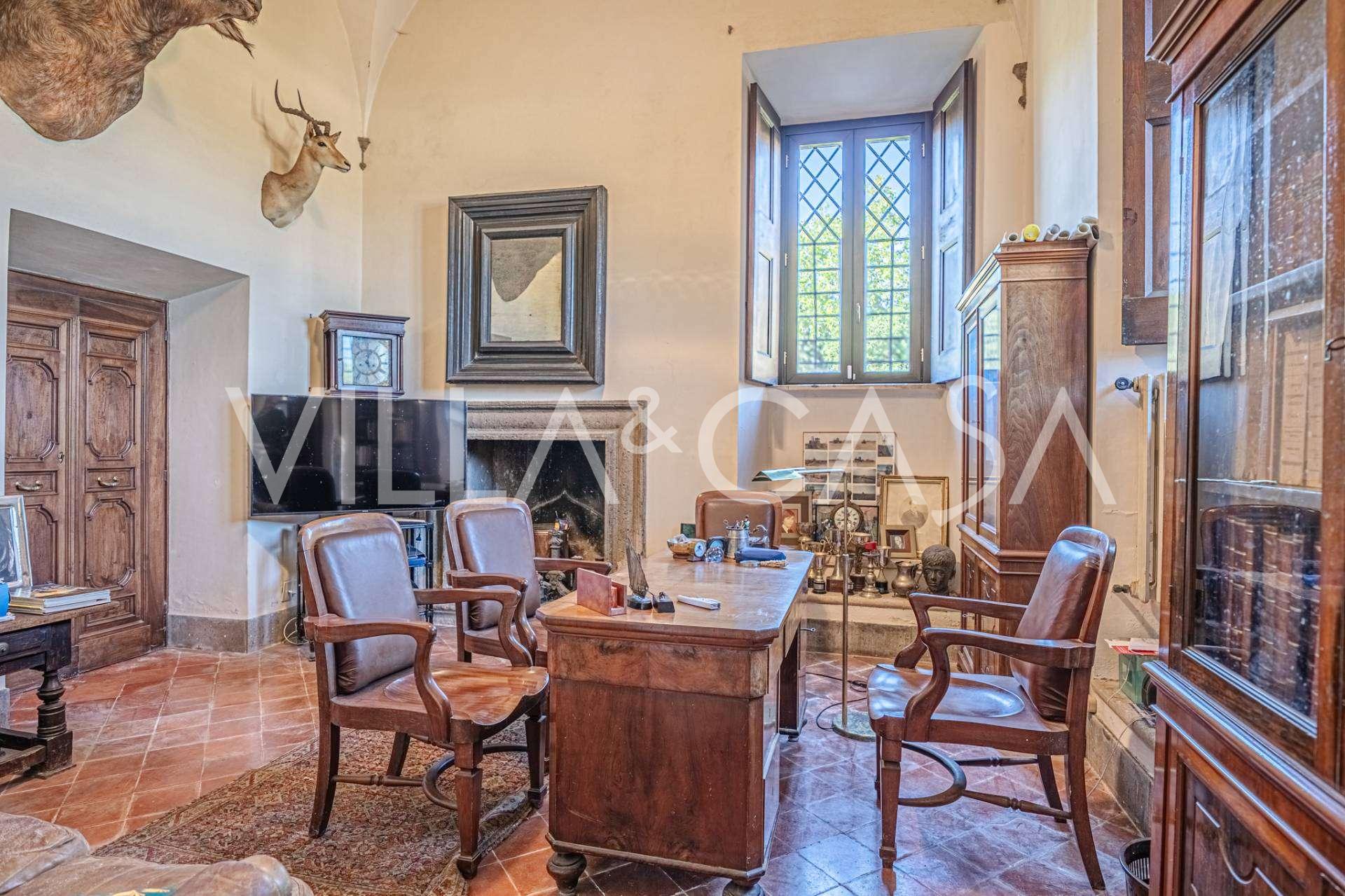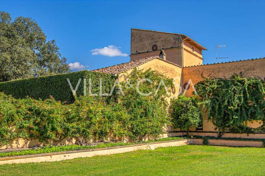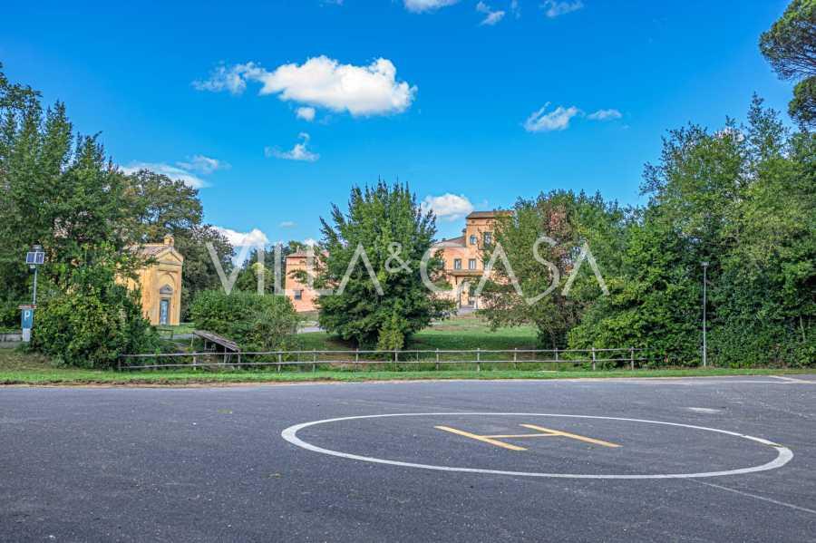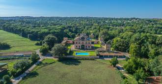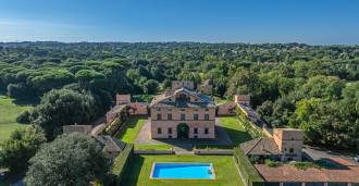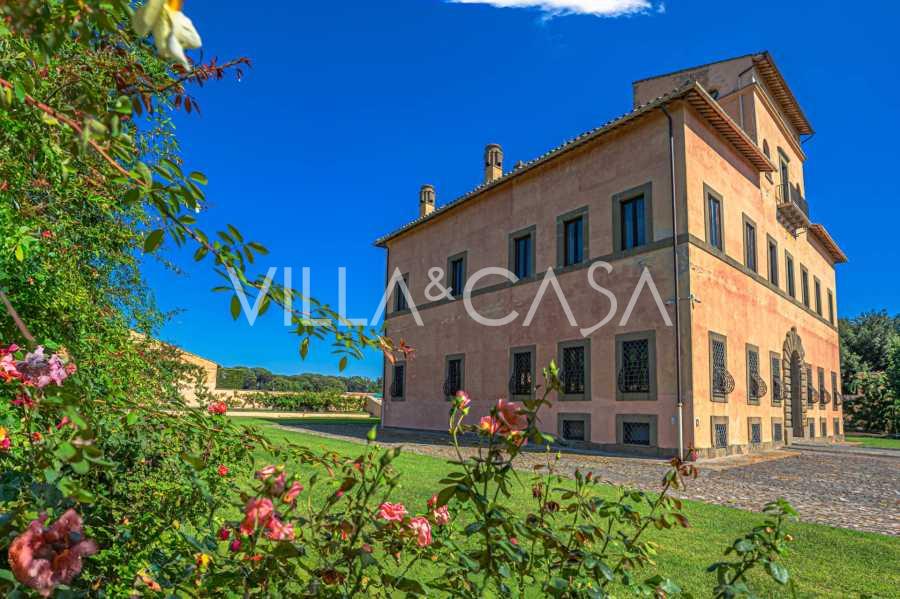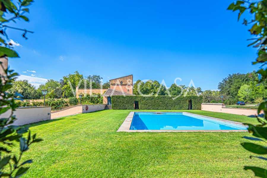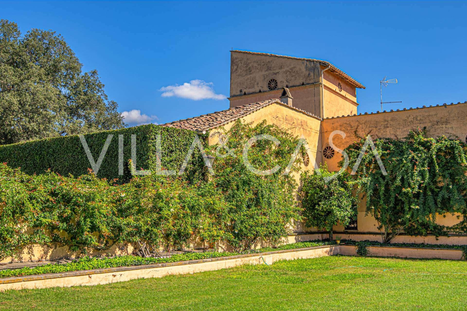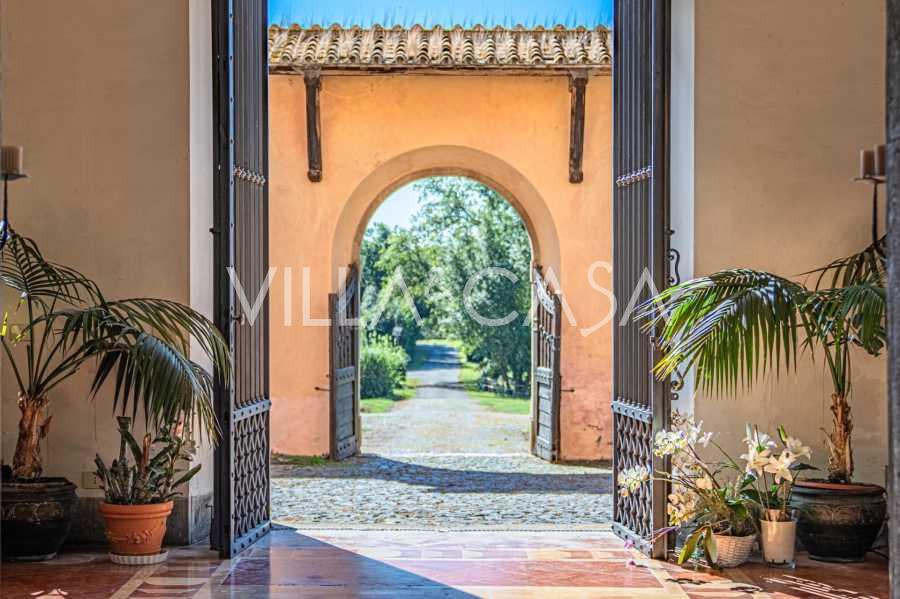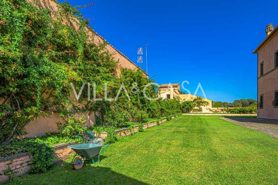 Die Burg, nur zwanzig Kilometer nördlich von Rom gelegen, ist von dreißig Hektar grüner Wiesen und alter Wälder umgeben, die eine Atmosphäre völliger Abgeschiedenheit und Harmonie mit der Natur schaffen. Hier wurde das berühmte Rennpferd Ribot geboren. Die Reitanlagen entsprechen höchsten internationalen Standards: zwei Ställe mit dreiundzwanzig und fünfundzwanzig Boxen — mit Sattelkammern, Pflegebereichen für Pferde und gemütlichen Personalwohnungen. Auf dem Gelände gibt es auch eine überdachte Reithalle, ein überdachtes Karussell und weitläufige Weiden, die sich für Training und Wettkämpfe eignen. Die Burg grenzt an einen der renommiertesten Golfclubs Europas und verfügt über einen eigenen Hubschrauberlandeplatz. Die alten etruskischen Höhlen auf dem Anwesen verleihen dem Ort besonderen Charme und historische Bedeutung.