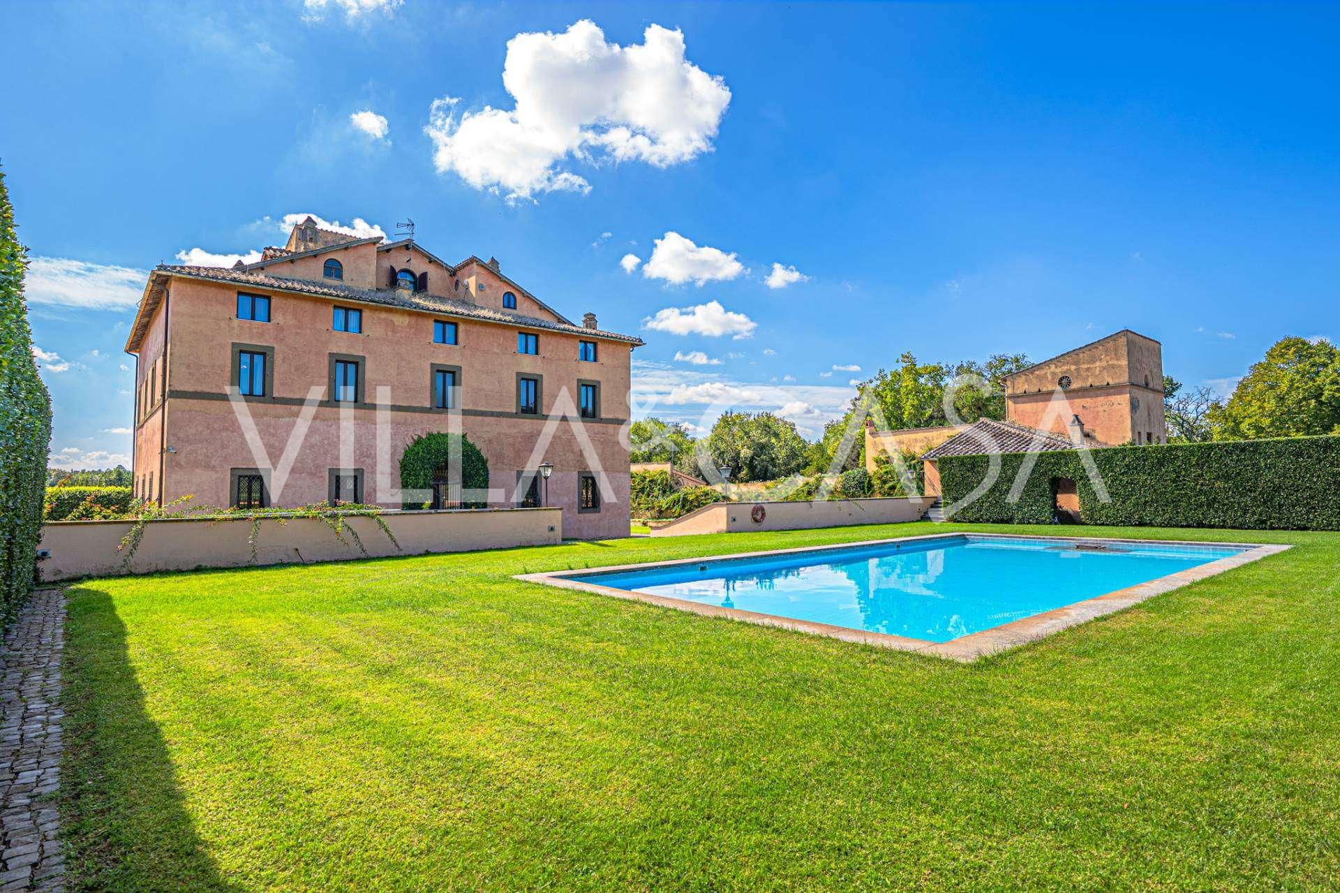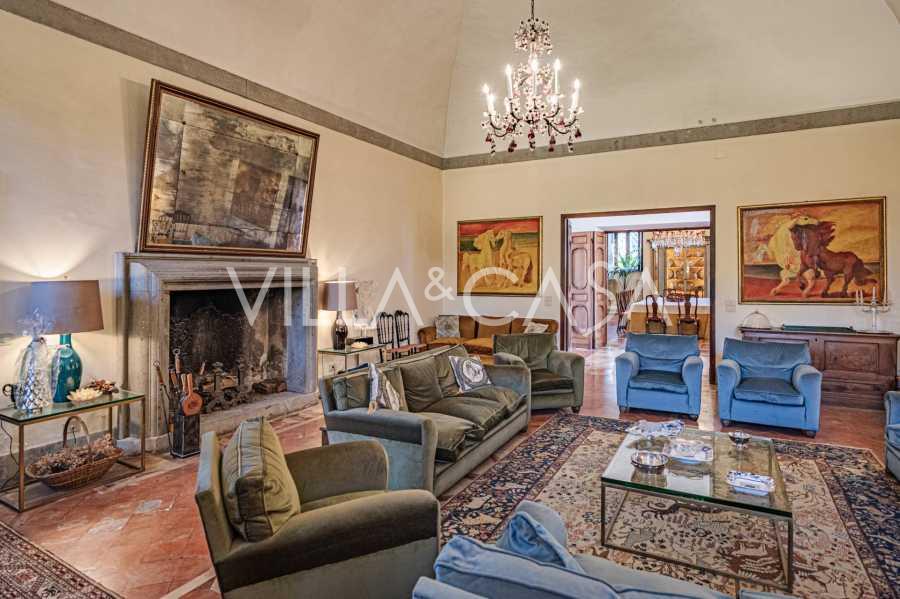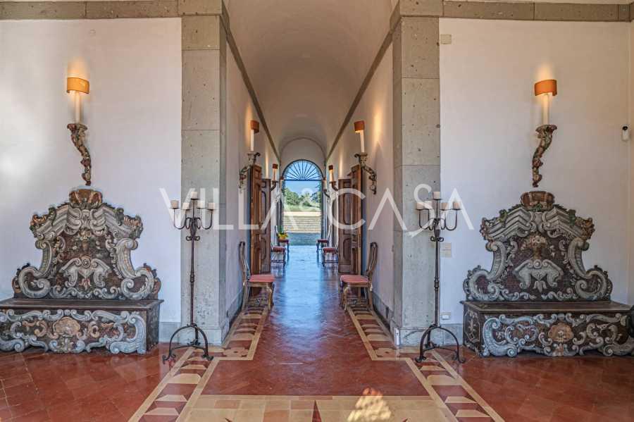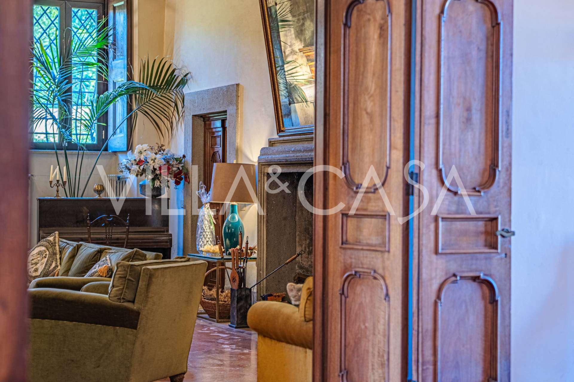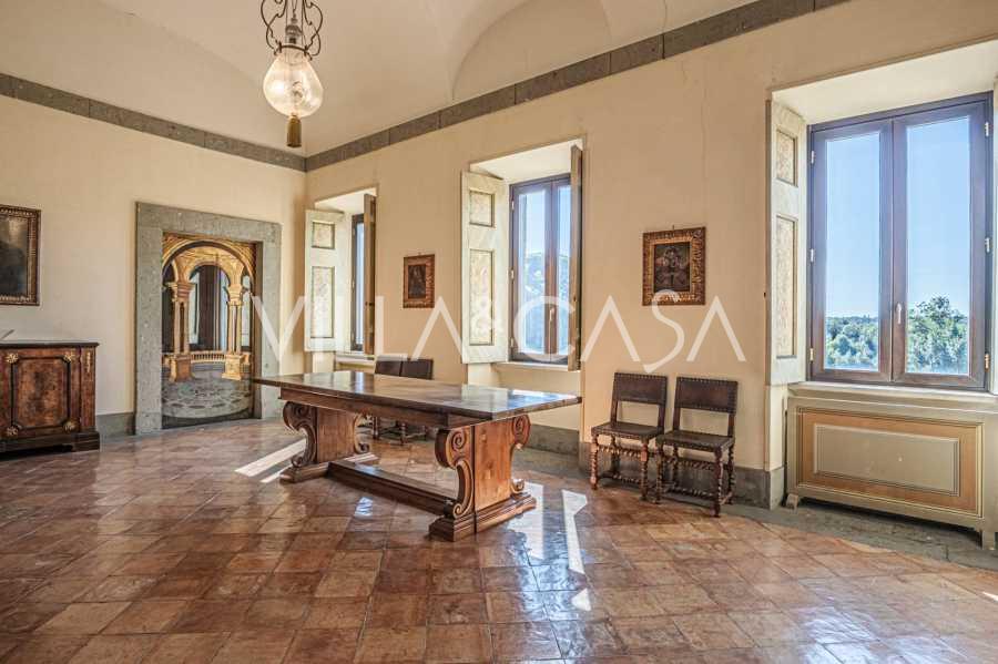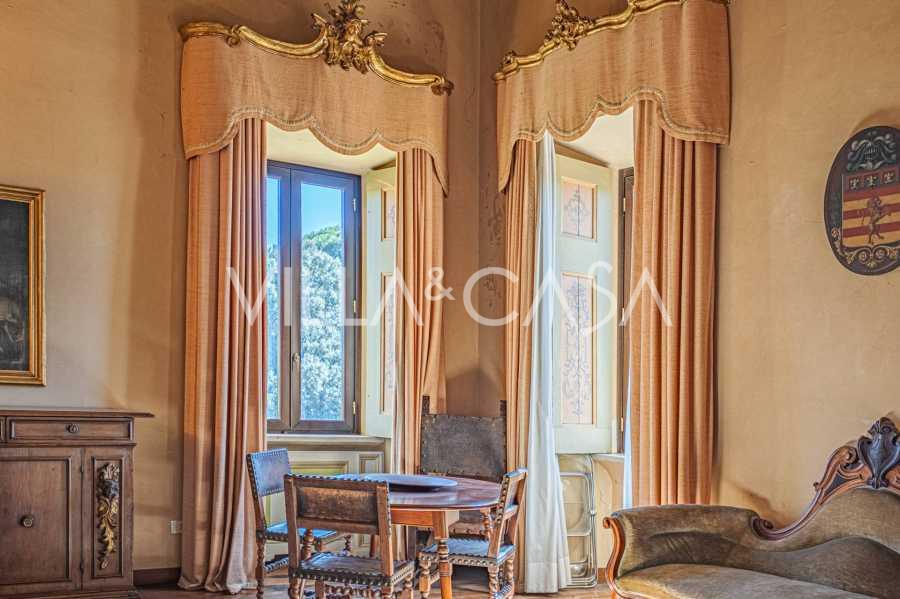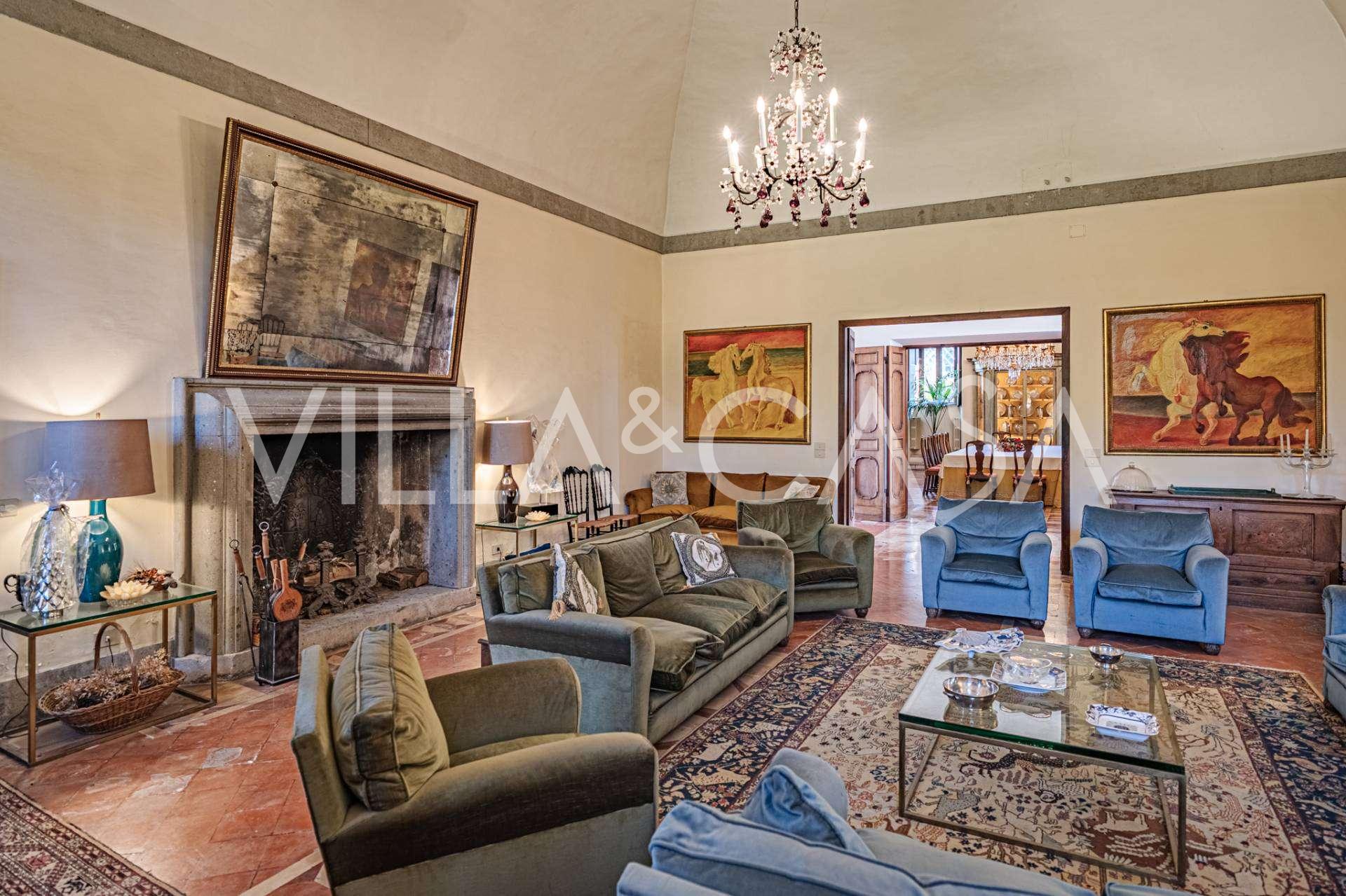 Die Burg, nur zwanzig Kilometer nördlich von Rom gelegen, ist von dreißig Hektar grüner Wiesen und alter Wälder umgeben, die eine Atmosphäre völliger Abgeschiedenheit und Harmonie mit der Natur schaffen. Hier wurde das berühmte Rennpferd Ribot geboren. Die Reitanlagen entsprechen höchsten internationalen Standards: zwei Ställe mit dreiundzwanzig und fünfundzwanzig Boxen — mit Sattelkammern, Pflegebereichen für Pferde und gemütlichen Personalwohnungen. Auf dem Gelände gibt es auch eine überdachte Reithalle, ein überdachtes Karussell und weitläufige Weiden, die sich für Training und Wettkämpfe eignen. Die Burg grenzt an einen der renommiertesten Golfclubs Europas und verfügt über einen eigenen Hubschrauberlandeplatz. Die alten etruskischen Höhlen auf dem Anwesen verleihen dem Ort besonderen Charme und historische Bedeutung.