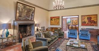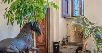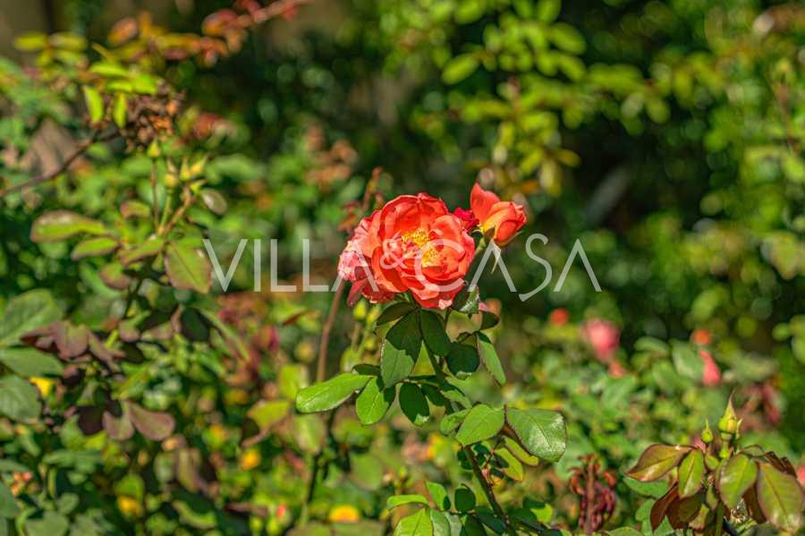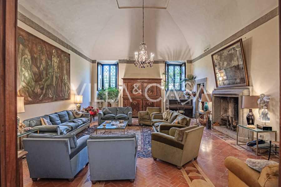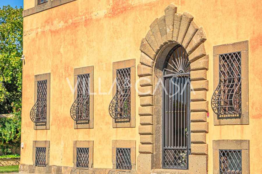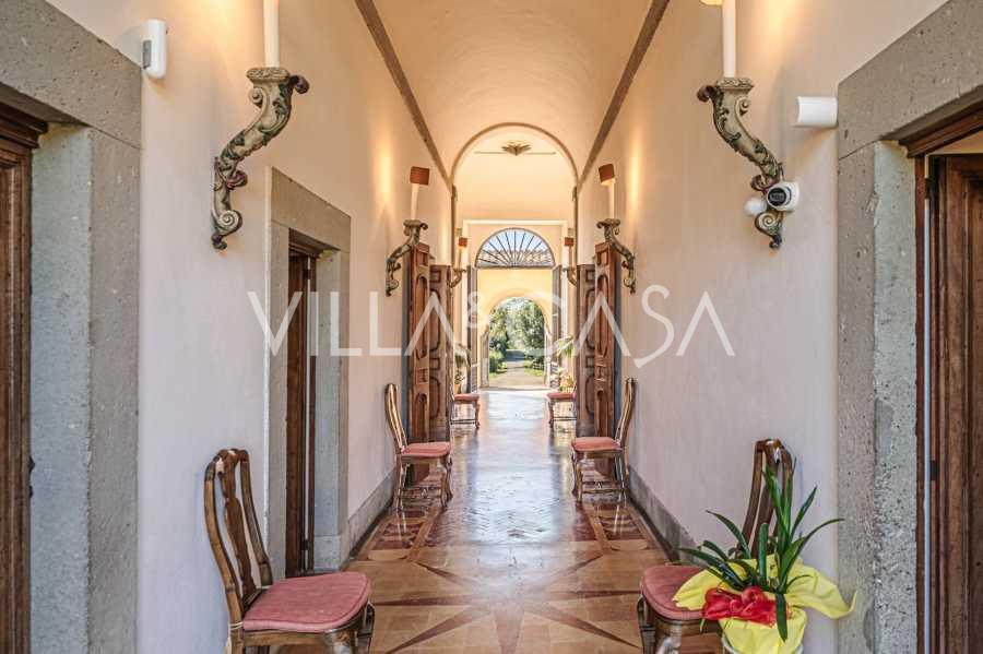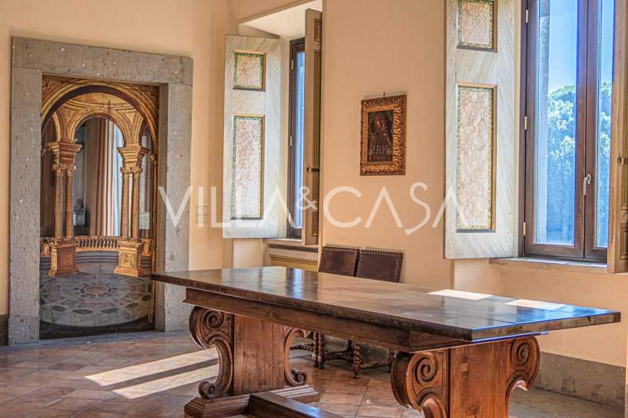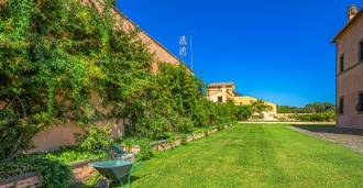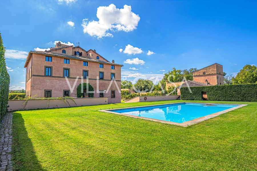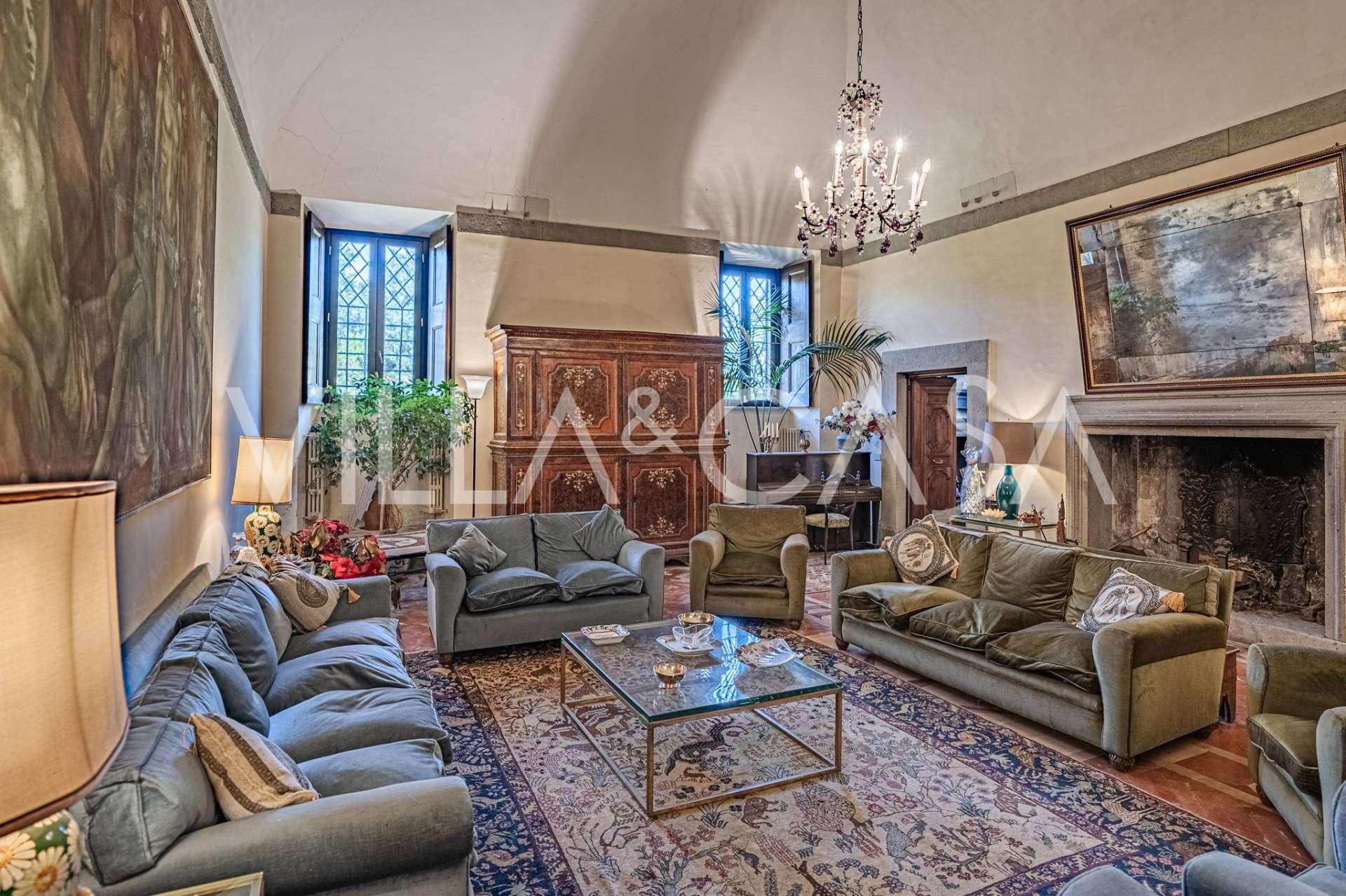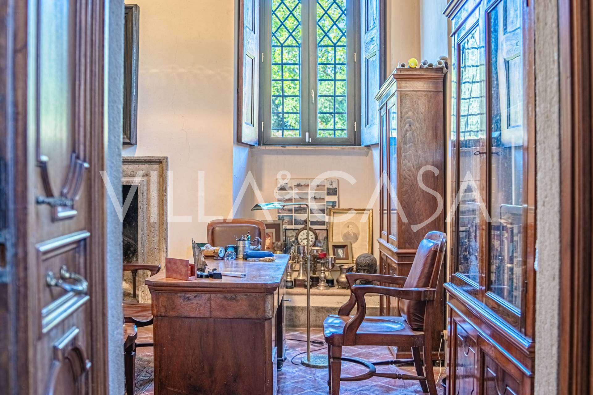 Die Burg, nur zwanzig Kilometer nördlich von Rom gelegen, ist von dreißig Hektar grüner Wiesen und alter Wälder umgeben, die eine Atmosphäre völliger Abgeschiedenheit und Harmonie mit der Natur schaffen. Hier wurde das berühmte Rennpferd Ribot geboren. Die Reitanlagen entsprechen höchsten internationalen Standards: zwei Ställe mit dreiundzwanzig und fünfundzwanzig Boxen — mit Sattelkammern, Pflegebereichen für Pferde und gemütlichen Personalwohnungen. Auf dem Gelände gibt es auch eine überdachte Reithalle, ein überdachtes Karussell und weitläufige Weiden, die sich für Training und Wettkämpfe eignen. Die Burg grenzt an einen der renommiertesten Golfclubs Europas und verfügt über einen eigenen Hubschrauberlandeplatz. Die alten etruskischen Höhlen auf dem Anwesen verleihen dem Ort besonderen Charme und historische Bedeutung.