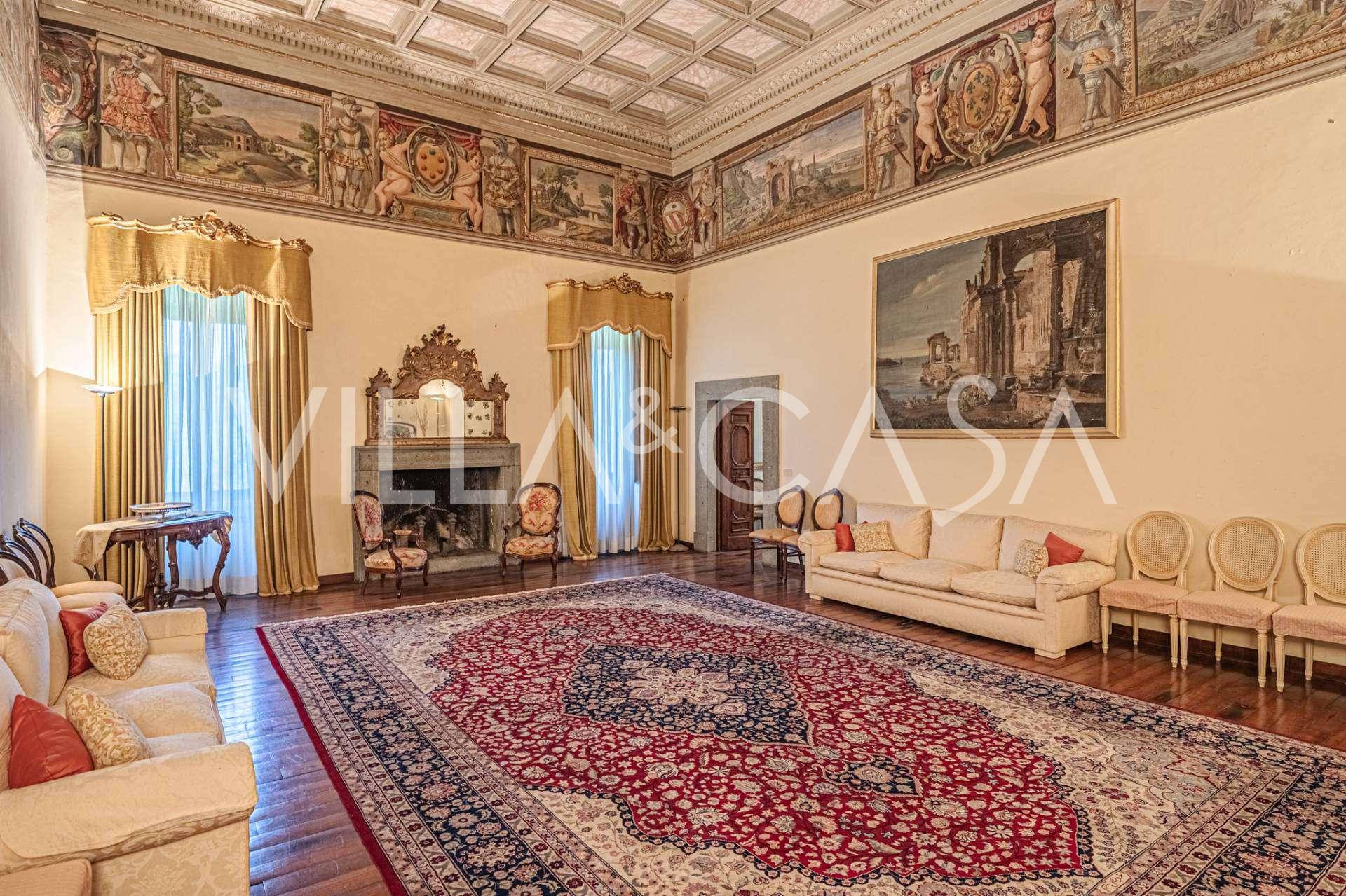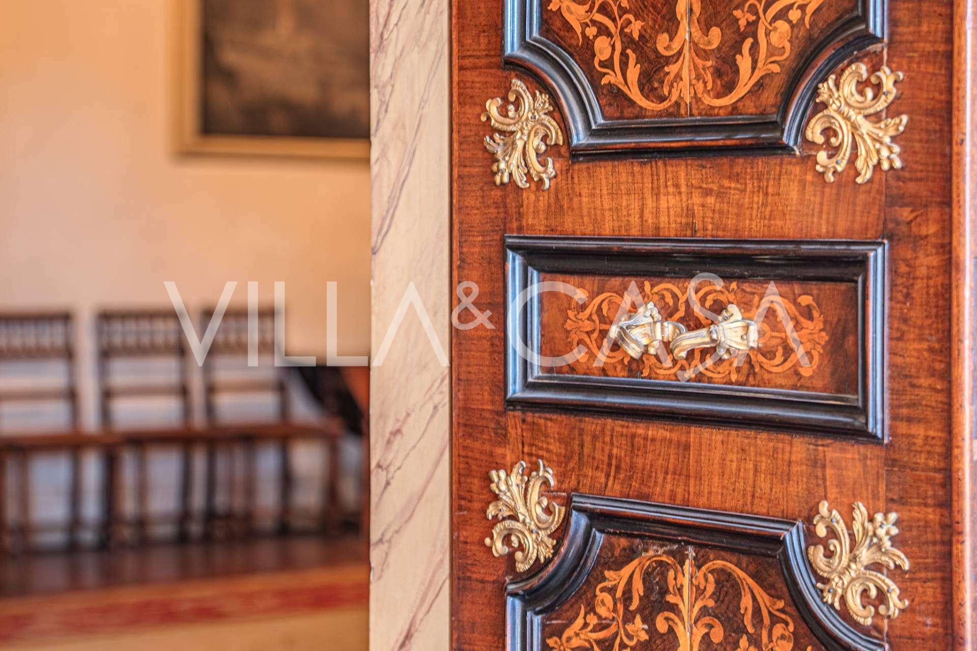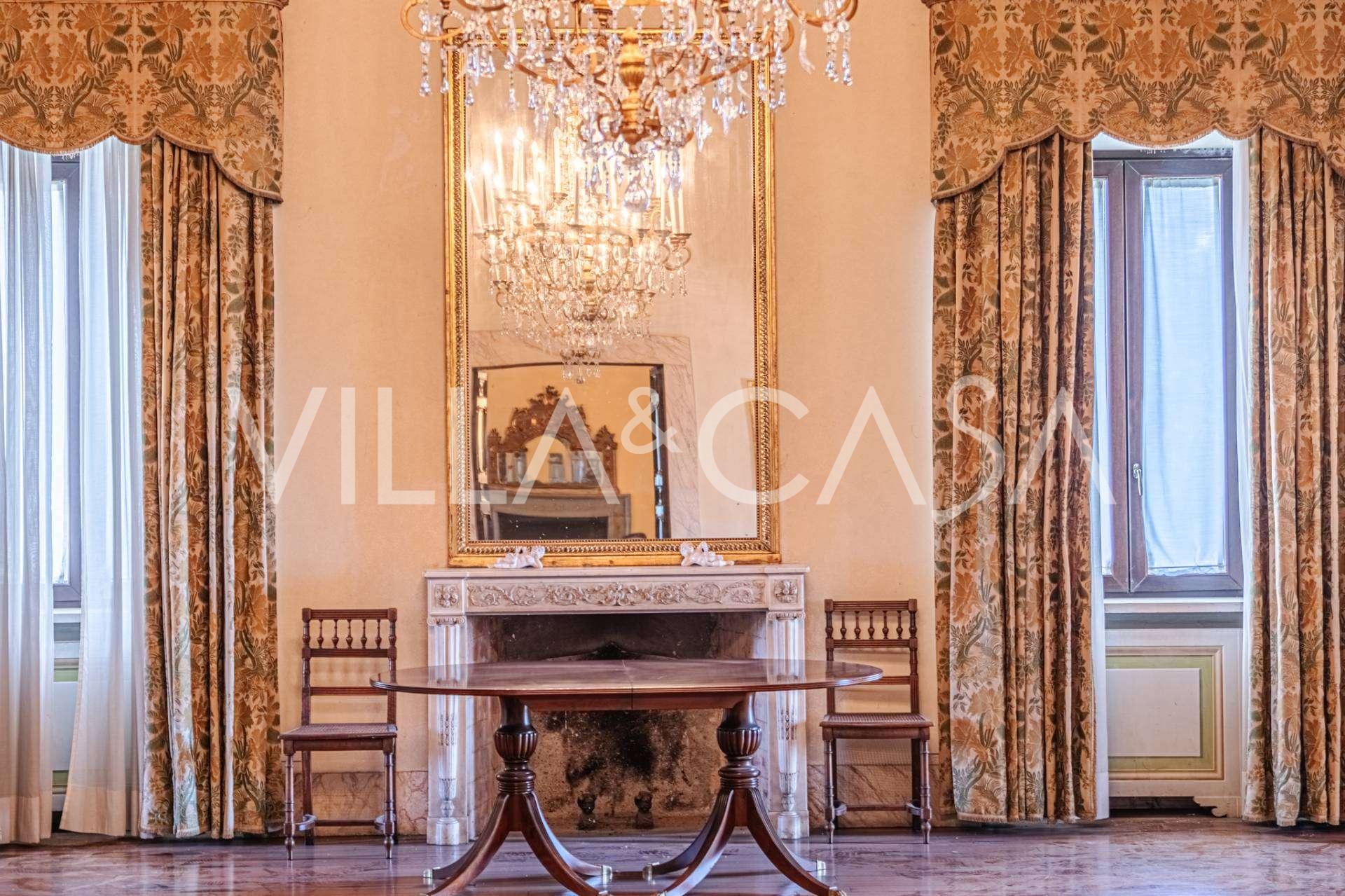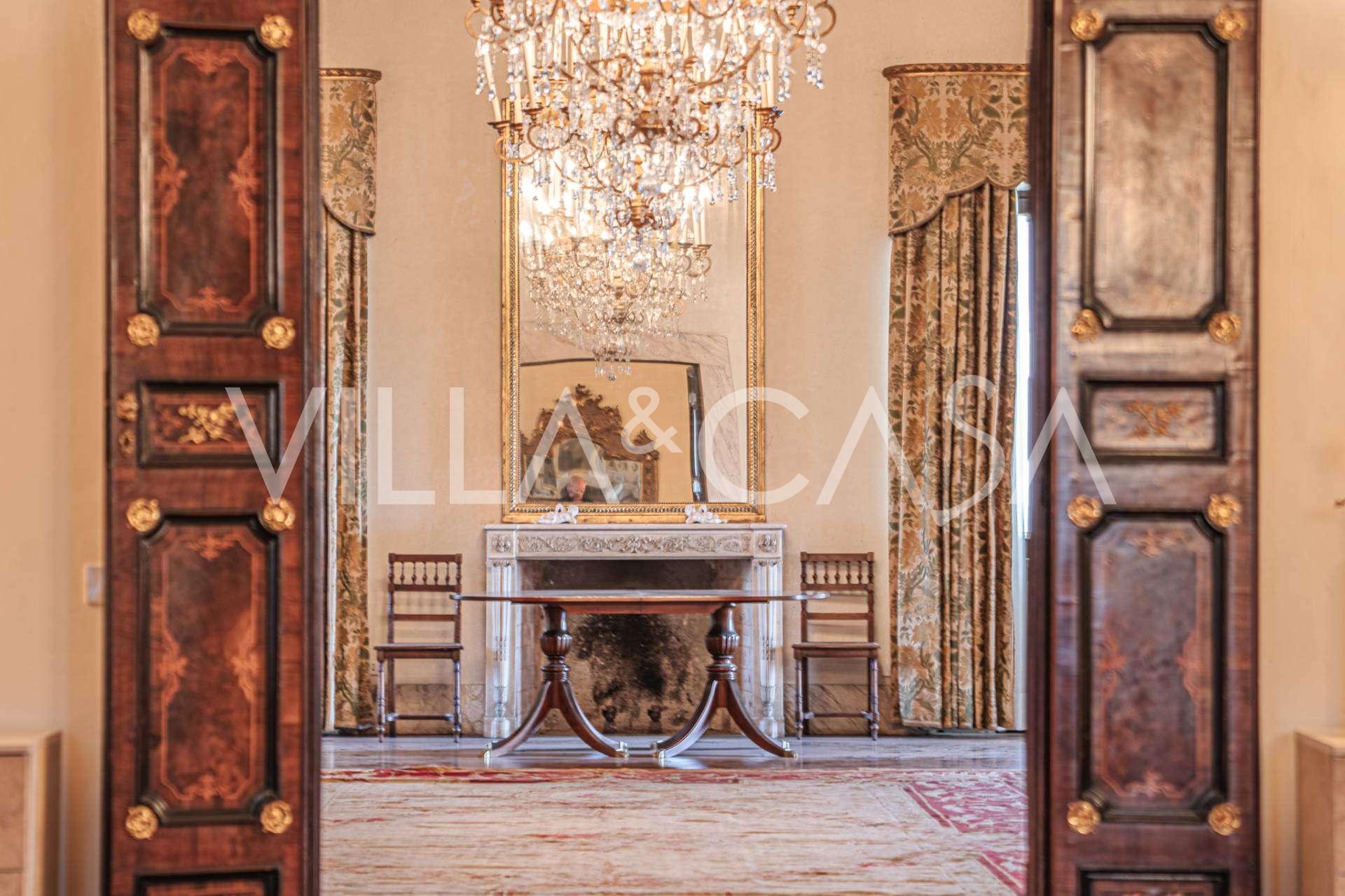 Im ersten Obergeschoss befinden sich zwei repräsentative Salons mit bemalten Decken, zwei Schlafzimmer und zwei Badezimmer.