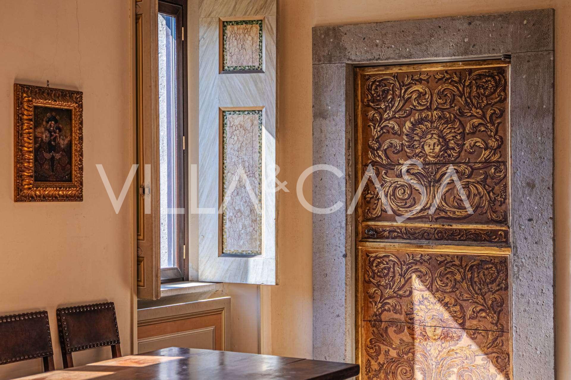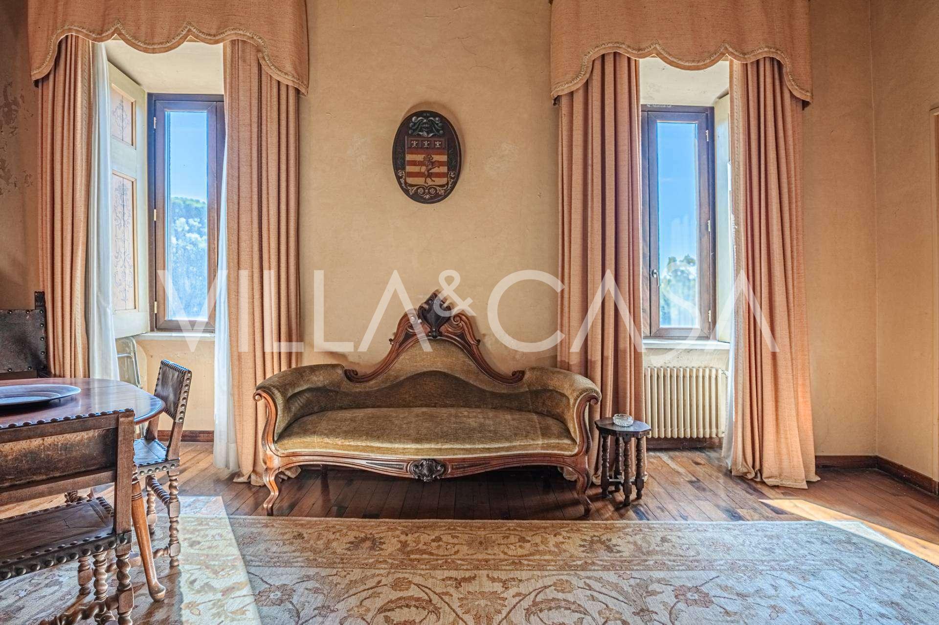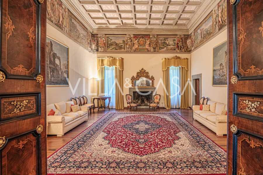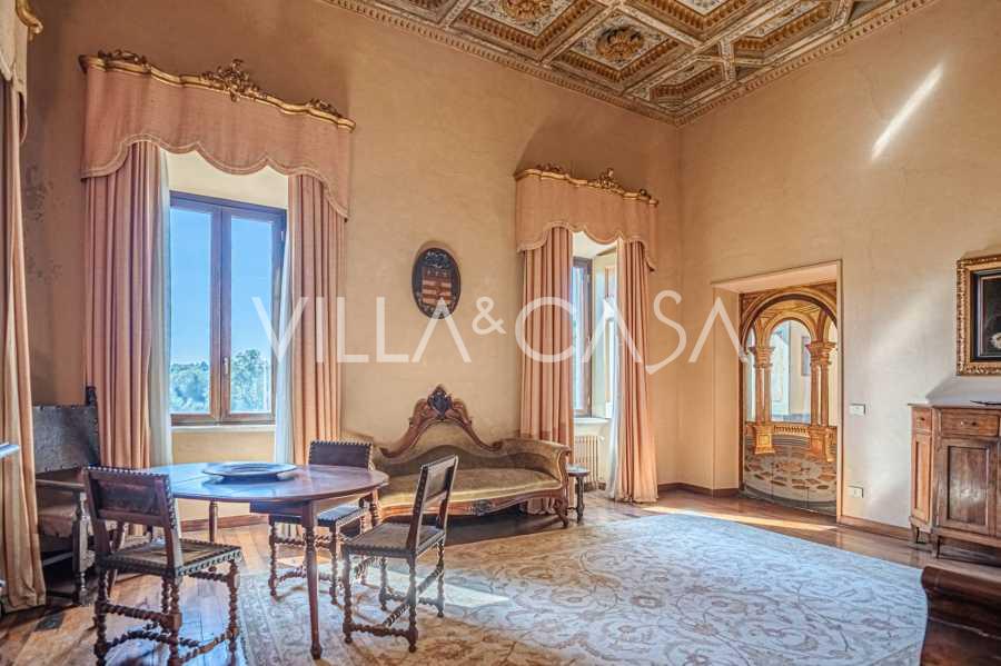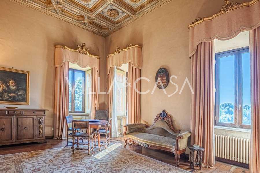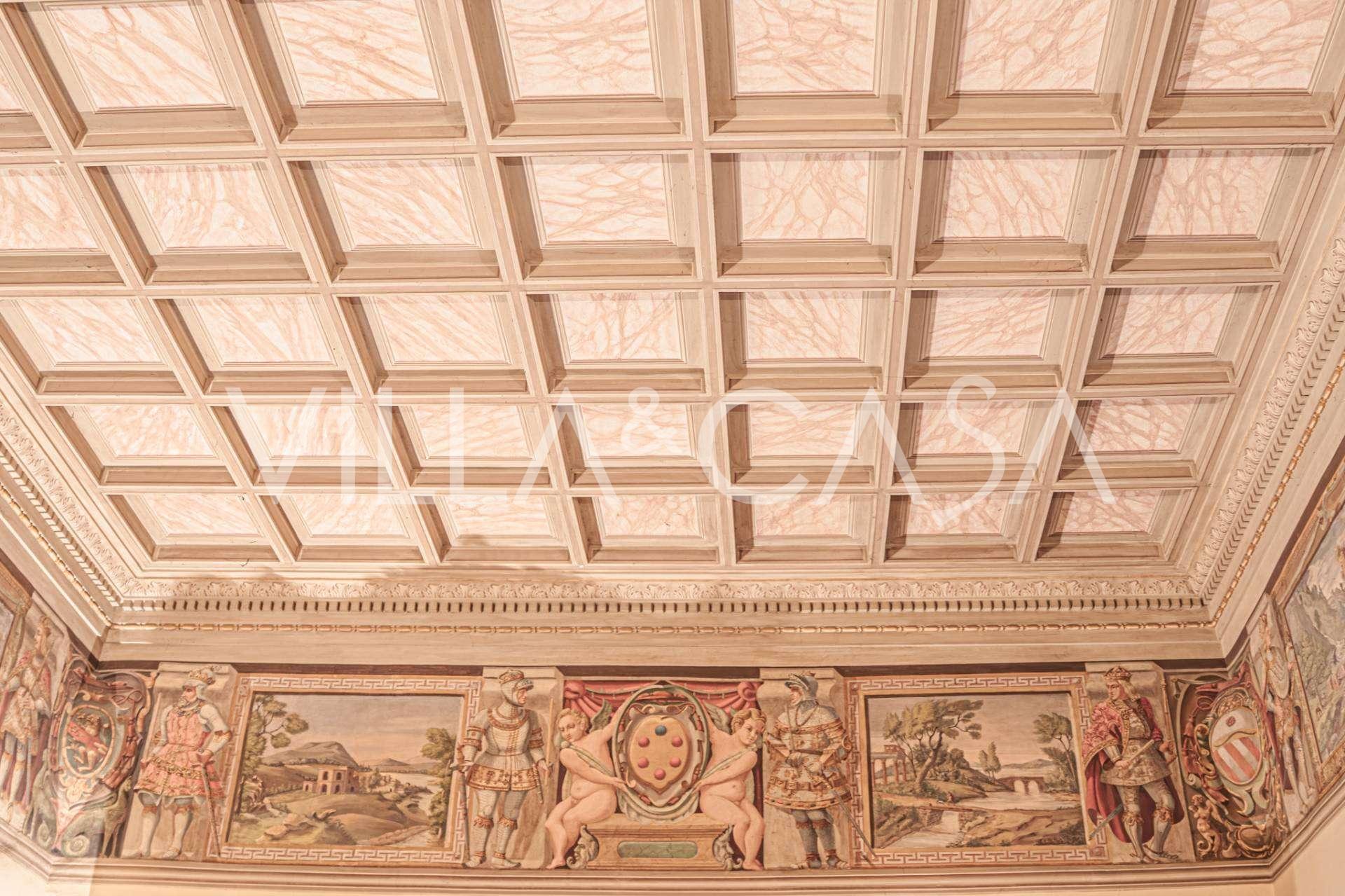 Im ersten Obergeschoss befinden sich zwei repräsentative Salons mit bemalten Decken, zwei Schlafzimmer und zwei Badezimmer.