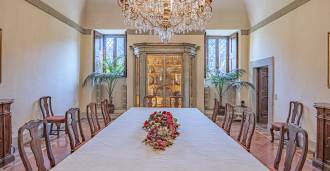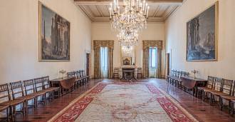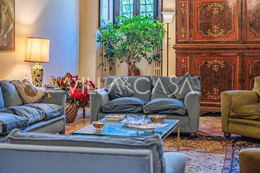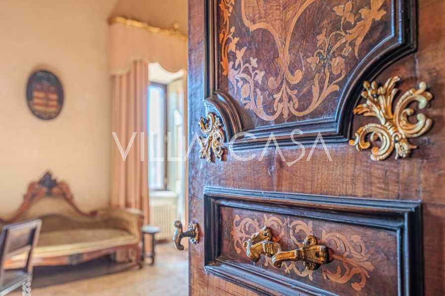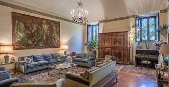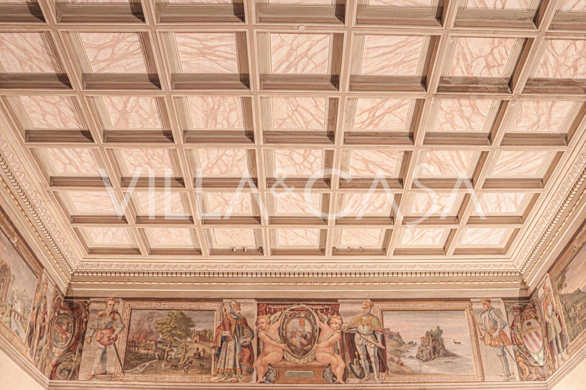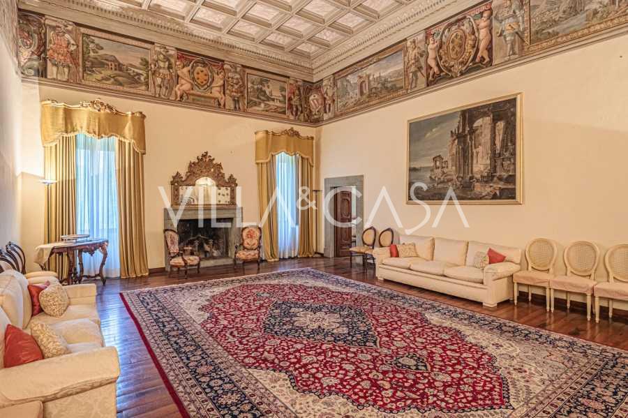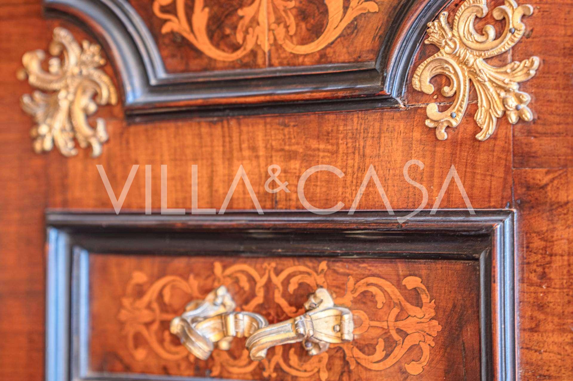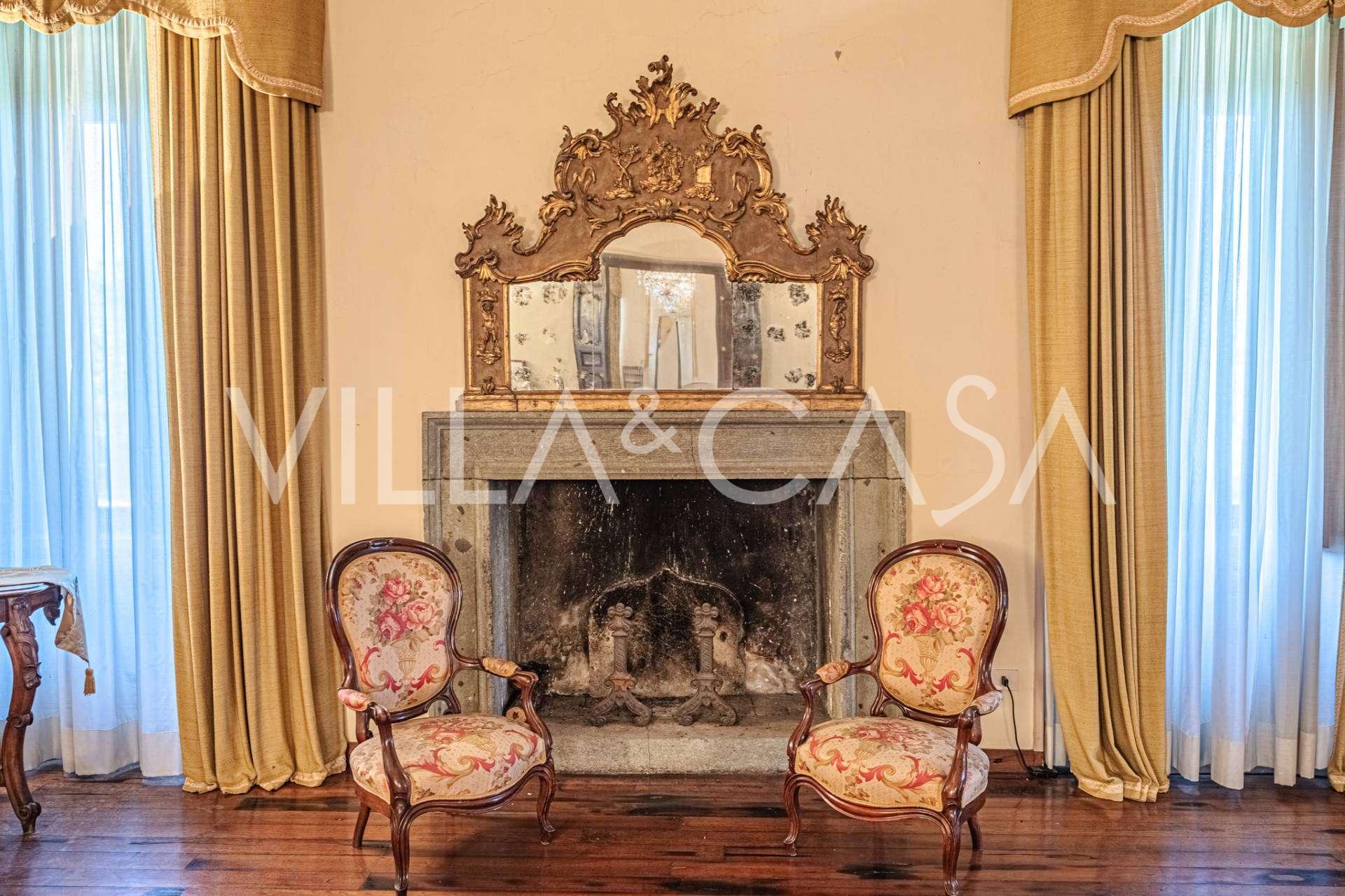 Im ersten Obergeschoss befinden sich zwei repräsentative Salons mit bemalten Decken, zwei Schlafzimmer und zwei Badezimmer.