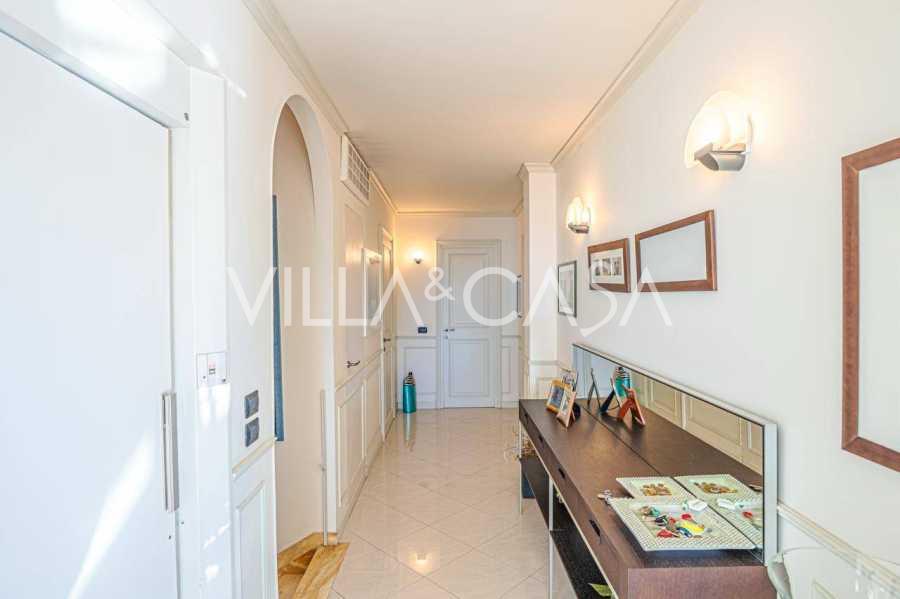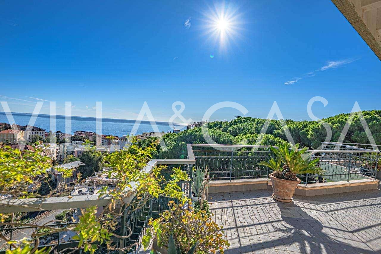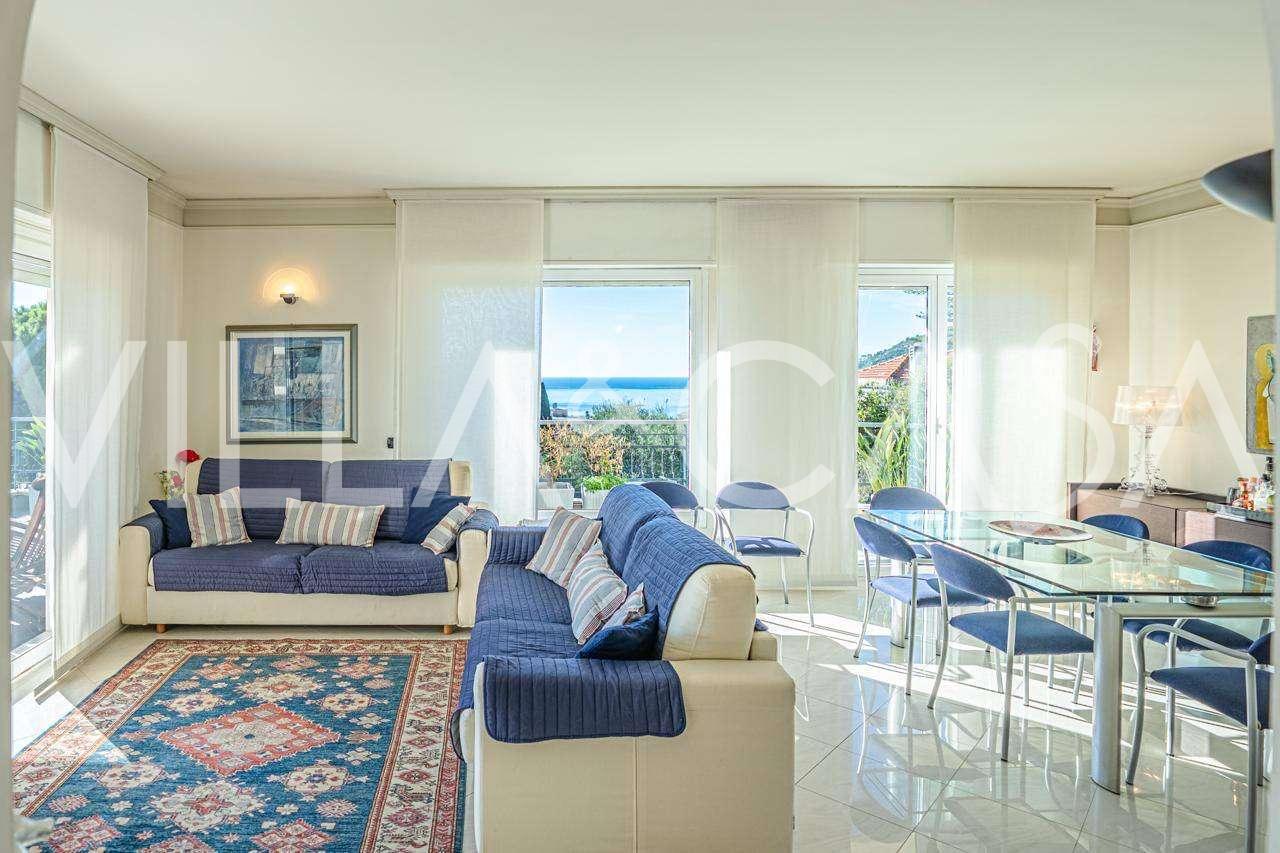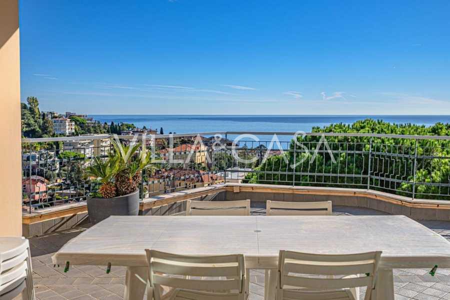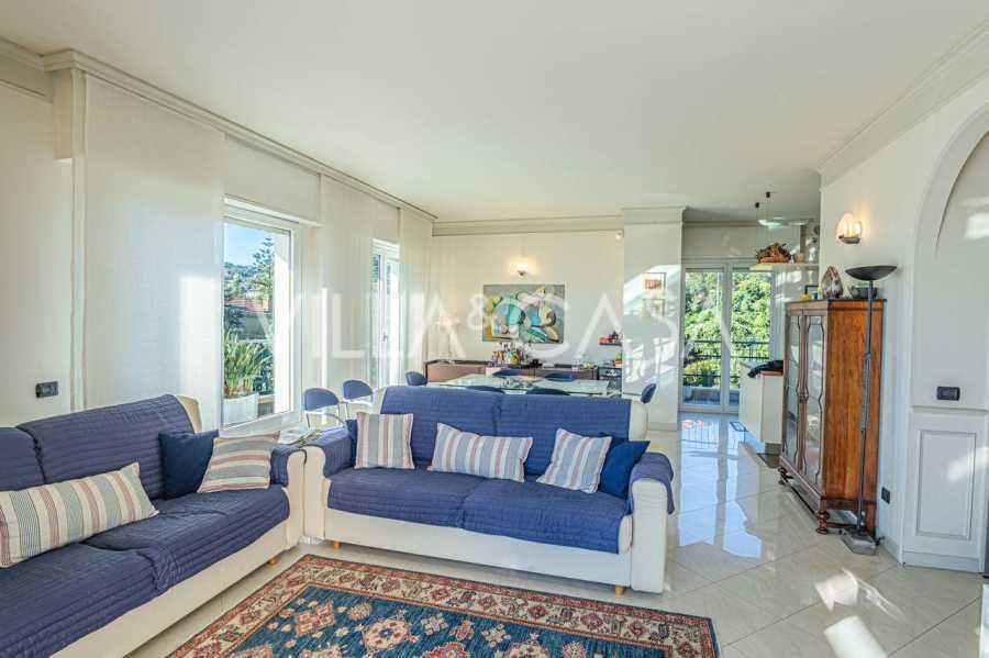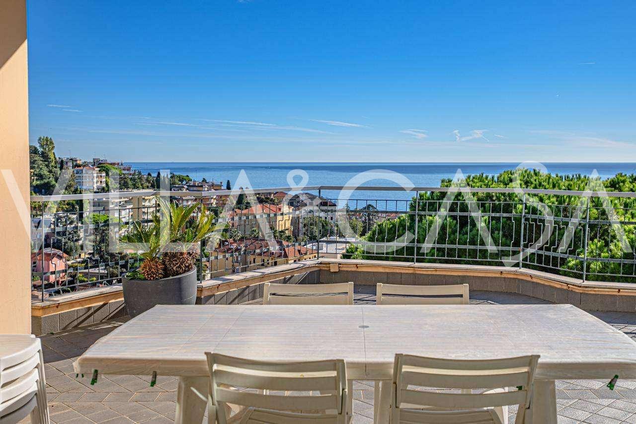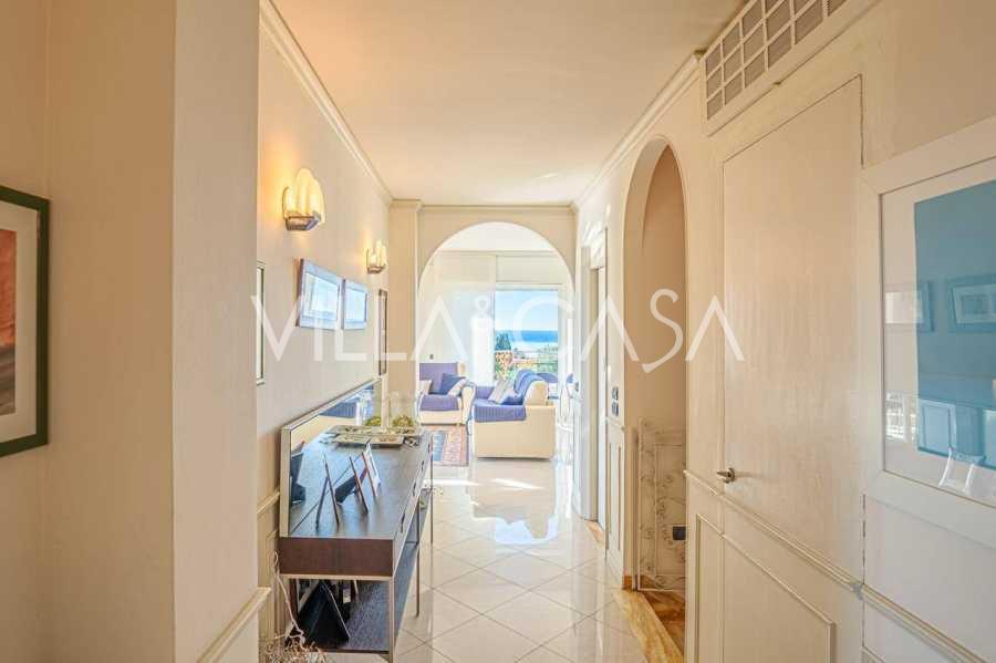 Zum Verkauf steht ein Penthouse in Sanremo, nur 10 Gehminuten vom Meer entfernt, mit einer Gesamtfläche von etwa 146 m2. Die Wohnung befindet sich im 5. Stock eines Gebäudes mit Aufzug und umfasst: