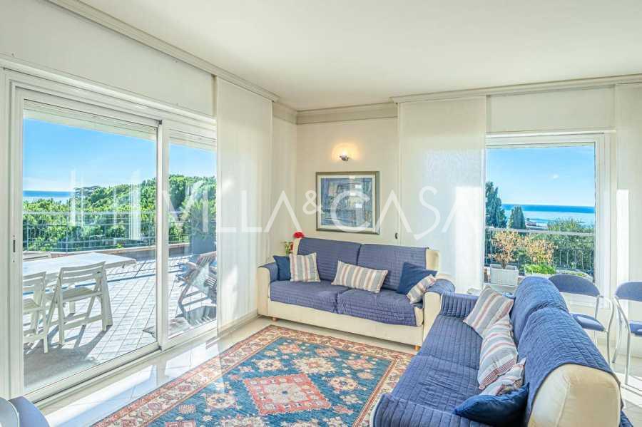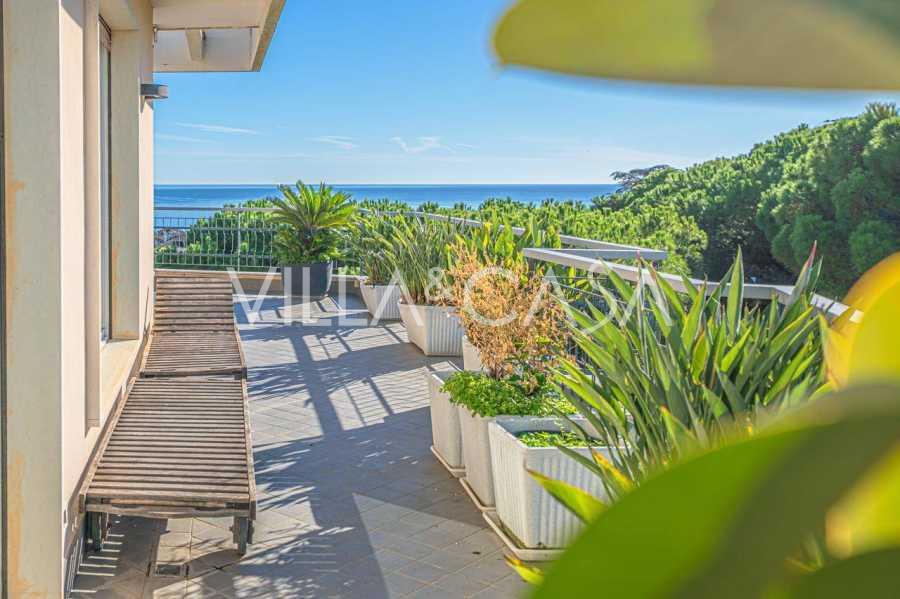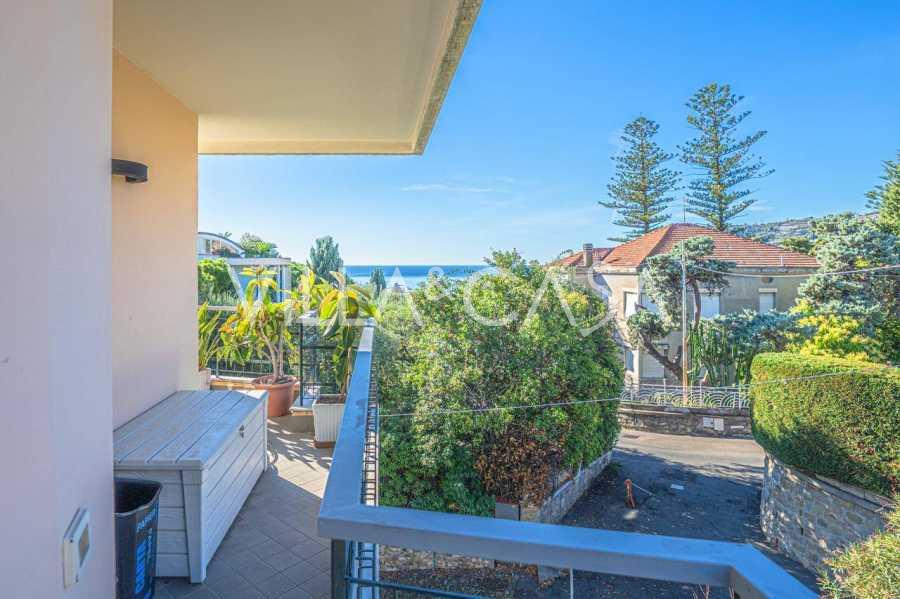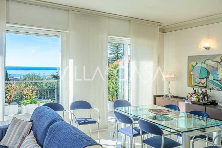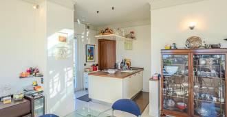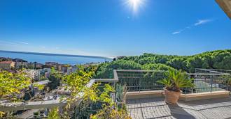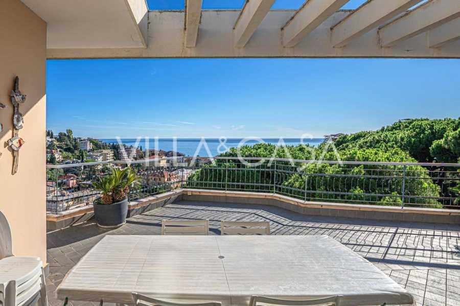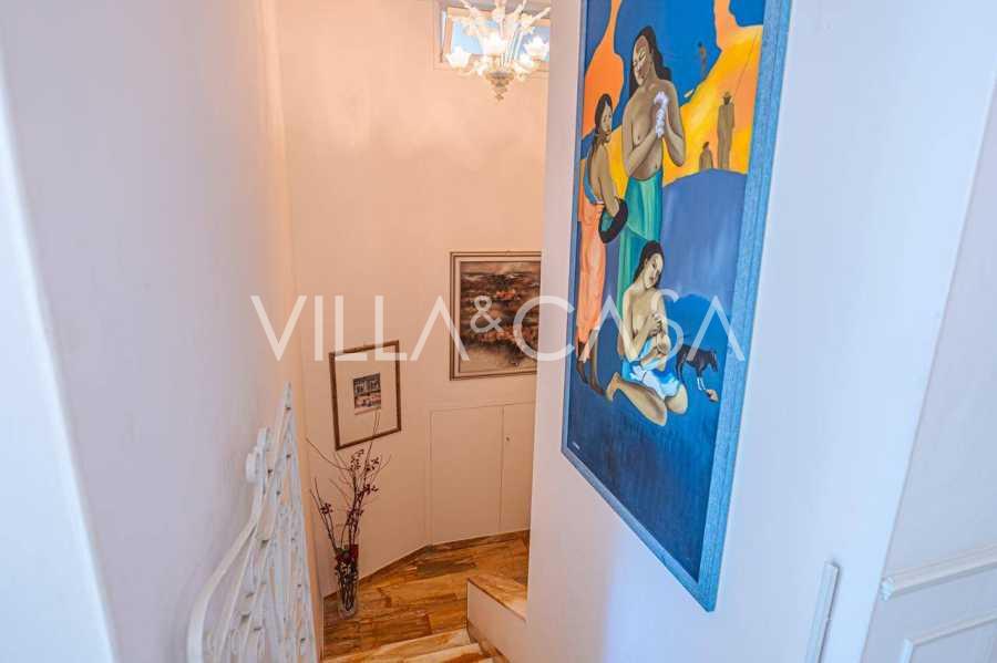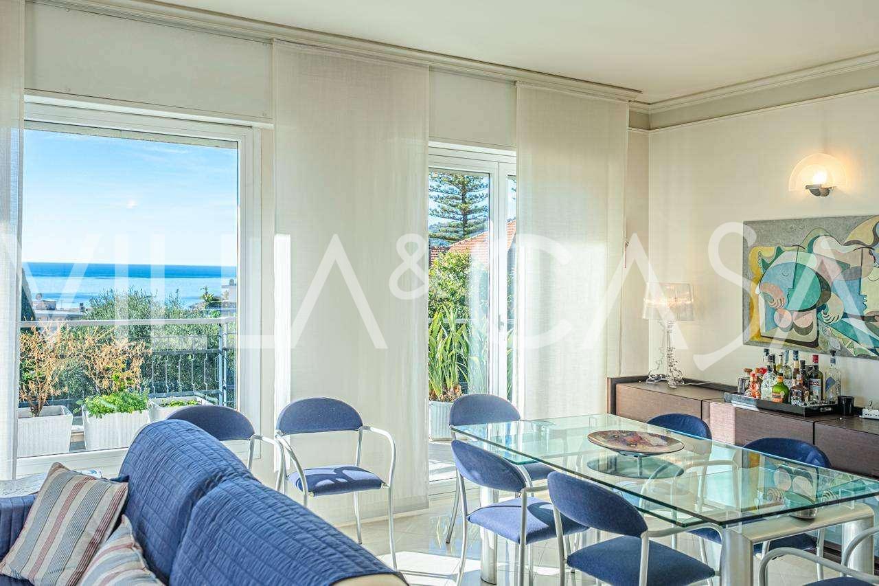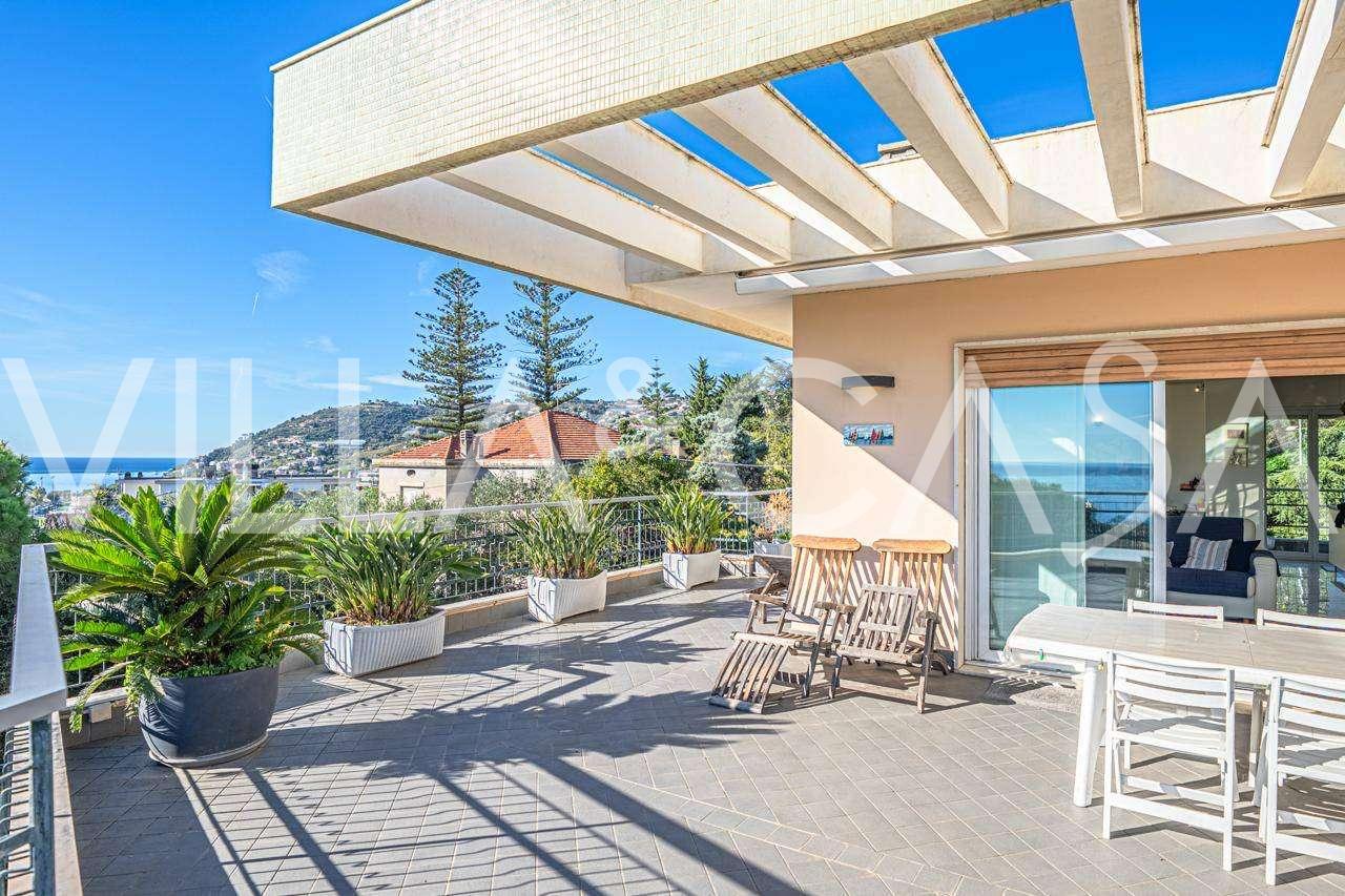 Zum Verkauf steht ein Penthouse in Sanremo, nur 10 Gehminuten vom Meer entfernt, mit einer Gesamtfläche von etwa 146 m2. Die Wohnung befindet sich im 5. Stock eines Gebäudes mit Aufzug und umfasst:
