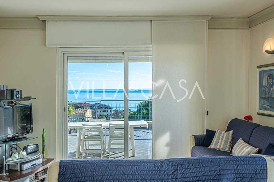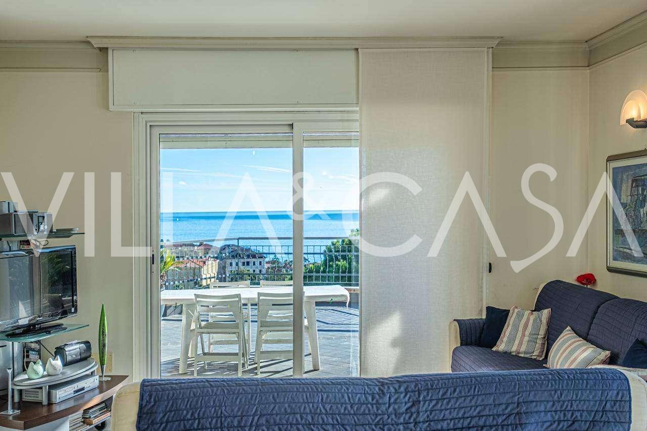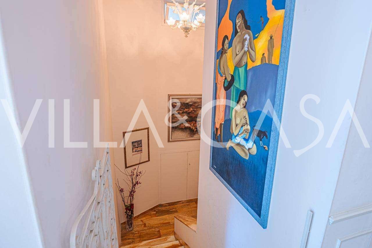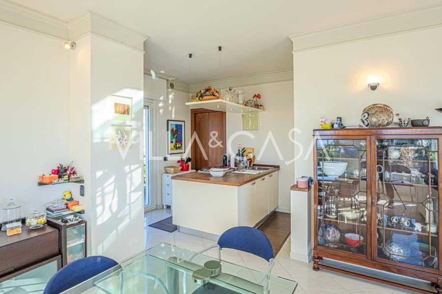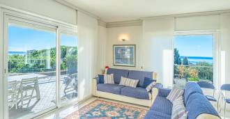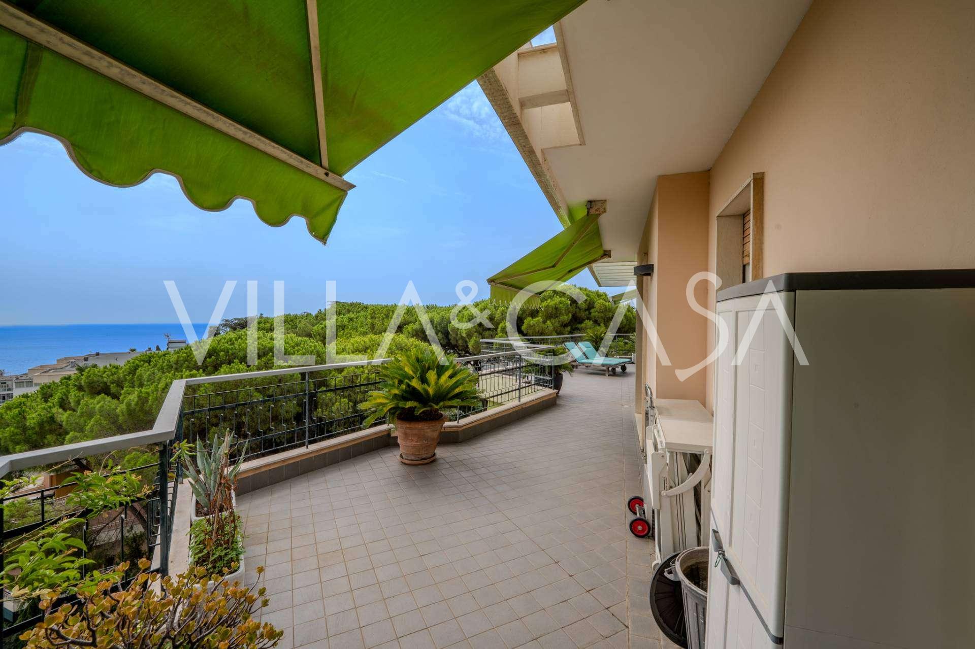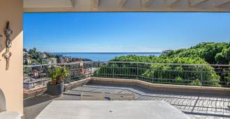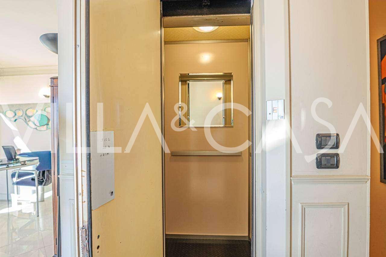 Zum Verkauf steht ein Penthouse in Sanremo, nur 10 Gehminuten vom Meer entfernt, mit einer Gesamtfläche von etwa 146 m2. Die Wohnung befindet sich im 5. Stock eines Gebäudes mit Aufzug und umfasst: