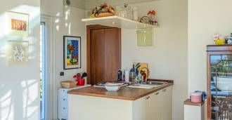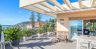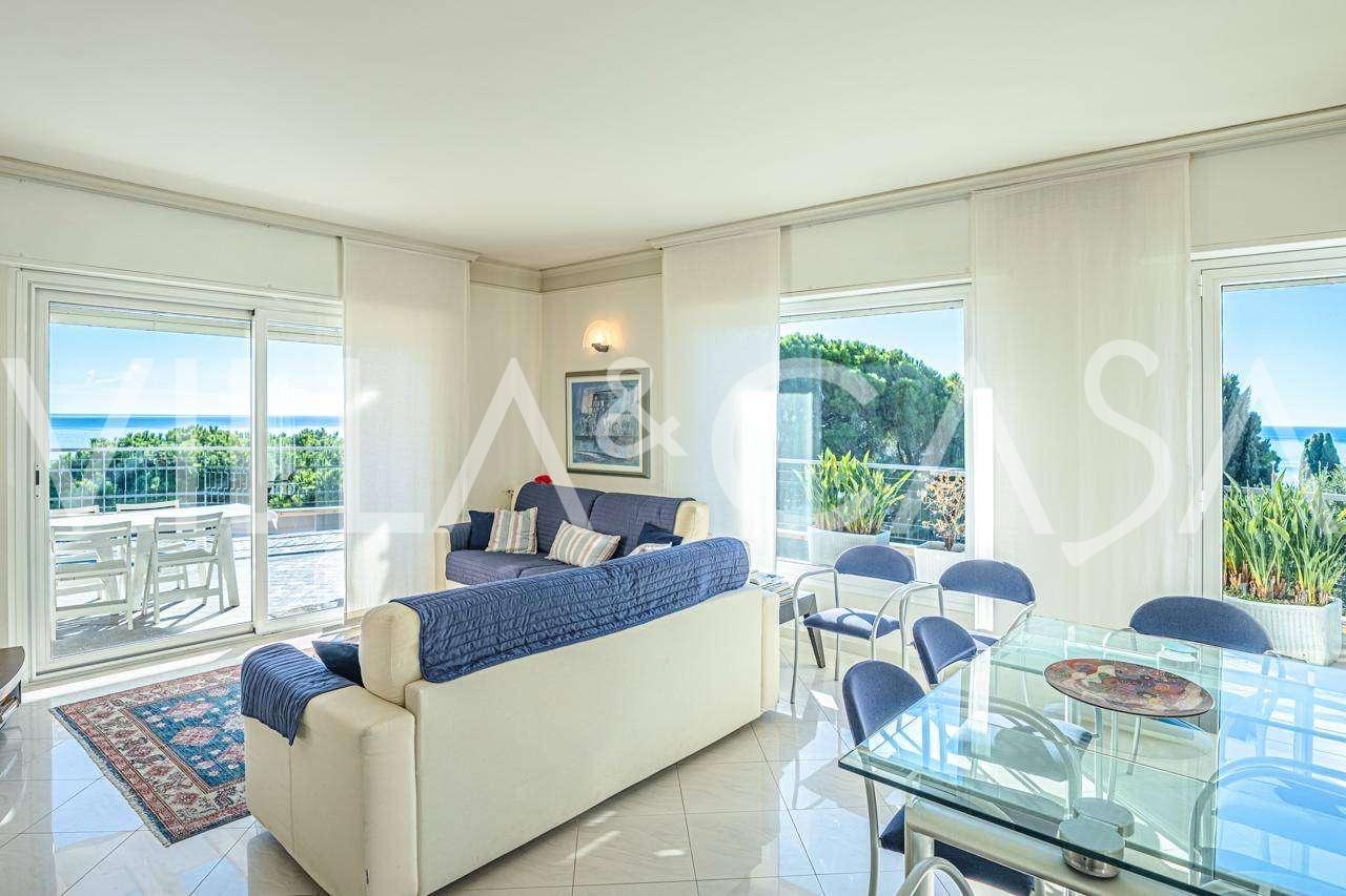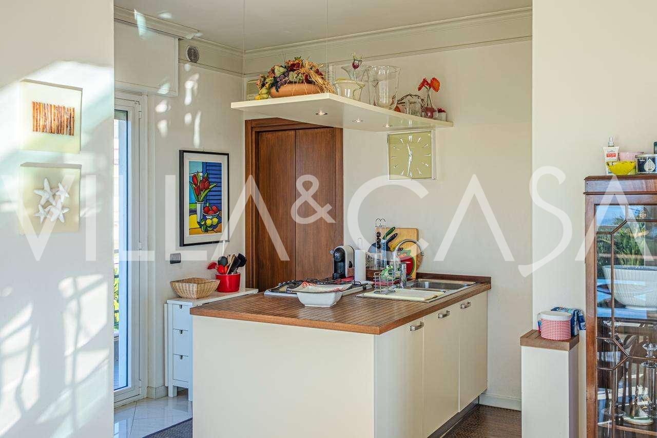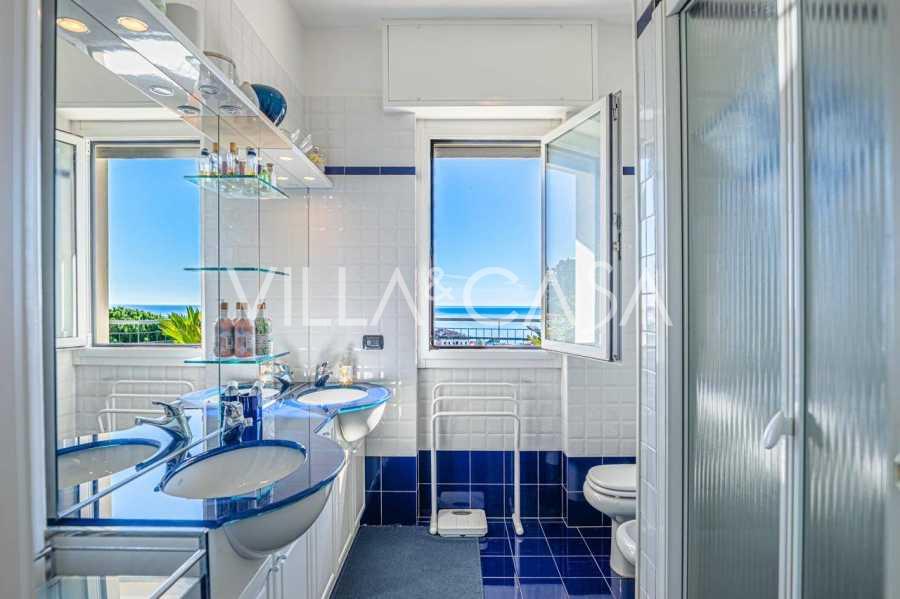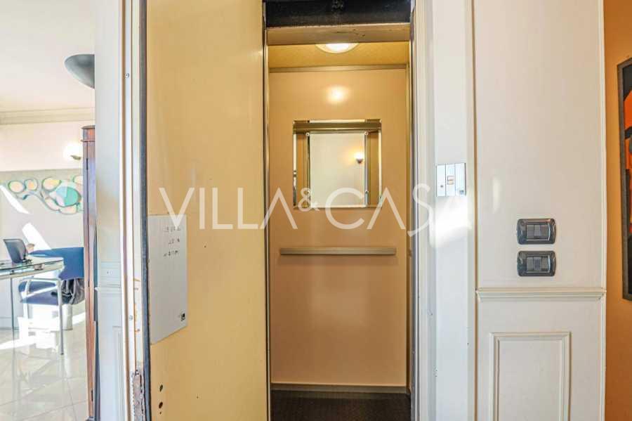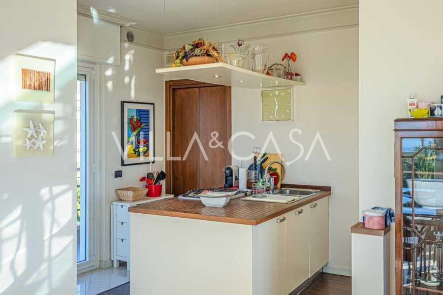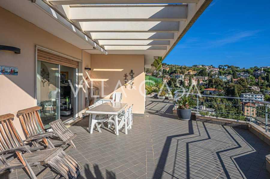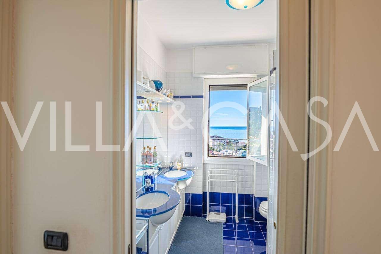 Zum Verkauf steht ein Penthouse in Sanremo, nur 10 Gehminuten vom Meer entfernt, mit einer Gesamtfläche von etwa 146 m2. Die Wohnung befindet sich im 5. Stock eines Gebäudes mit Aufzug und umfasst: