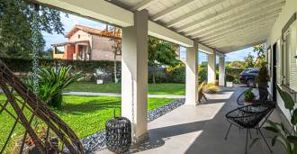 Die Villa ist mit hochwertigen Materialien gebaut und verfügt über ein autonomes Heizsystem, Klimaanlage und moderne technische Lösungen. Der gepflegte Garten sorgt für Gemütlichkeit und Privatsphäre, während der Parkplatz für zwei Autos zusätzlichen Komfort bietet.