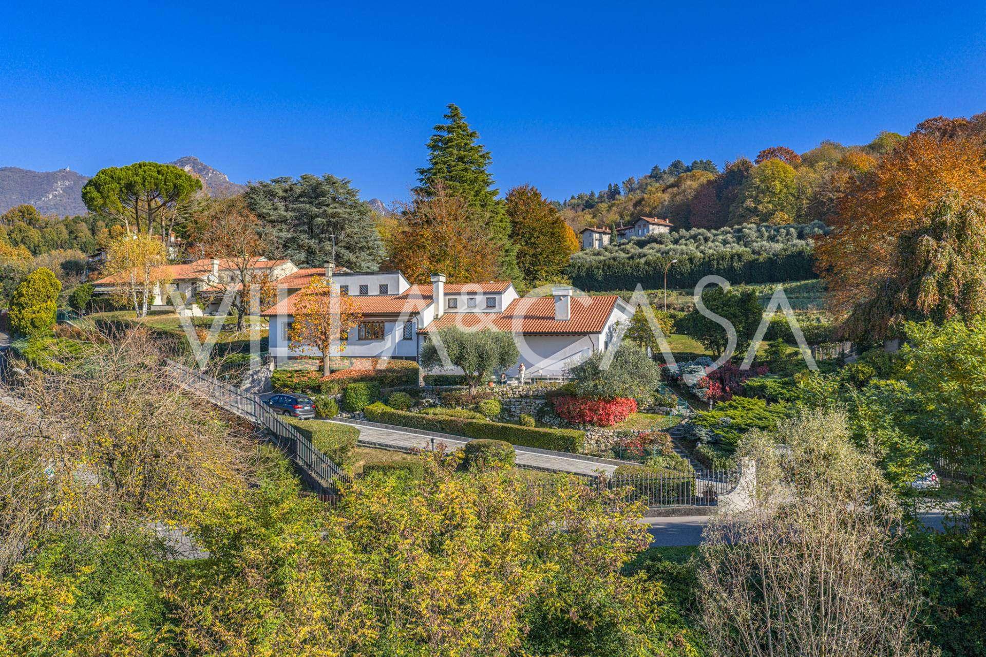 In der malerischen Gegend von Galbiate, nur einen kurzen Spaziergang vom See entfernt, befindet sich eine einzigartige Villa mit einer Fläche von 606 m², umgeben von einem gepflegten Garten von 2500 m², mit beeindruckendem Blick auf den See und die Alpen.