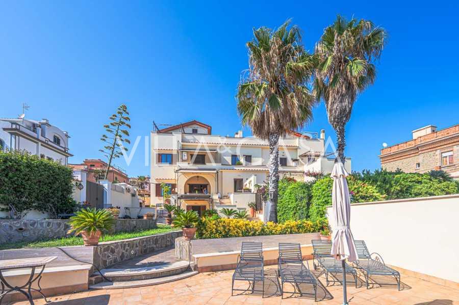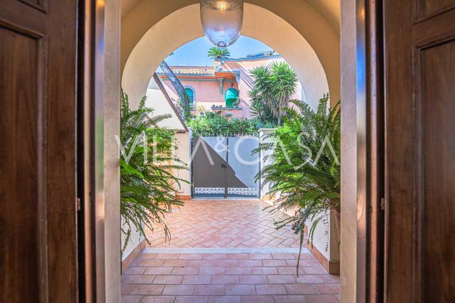 In einem der prestigeträchtigsten Abschnitte der Küste von Santa Marinella, in einer Straße mit reicher Geschichte, befindet sich diese prächtige Villa aus dem frühen 20. Jahrhundert mit Blick auf das Mittelmeer.