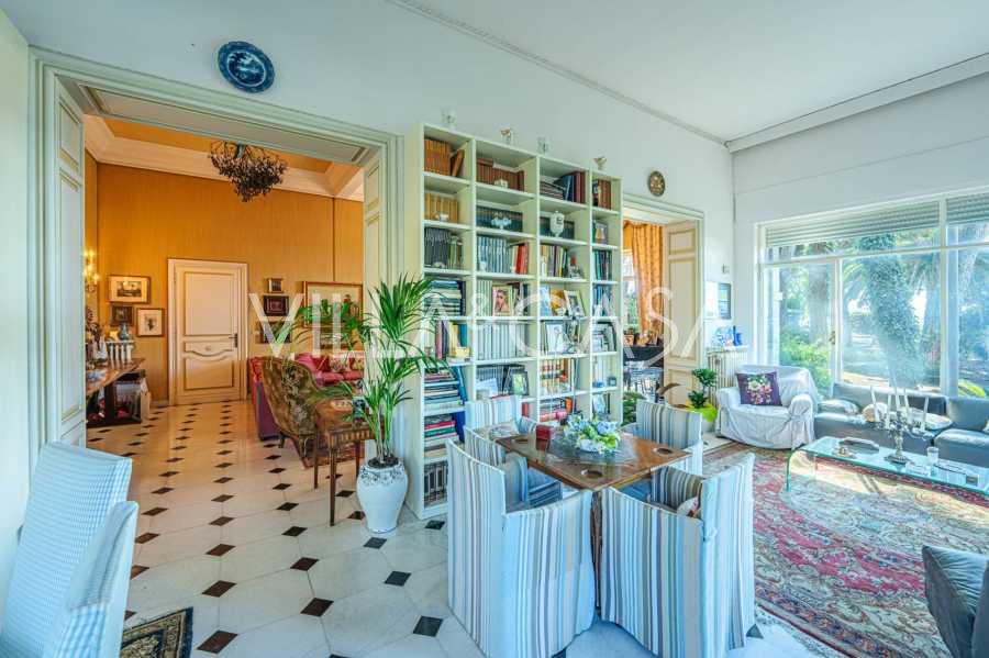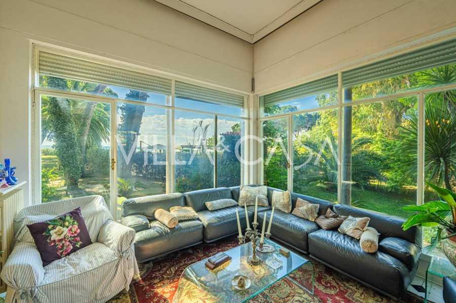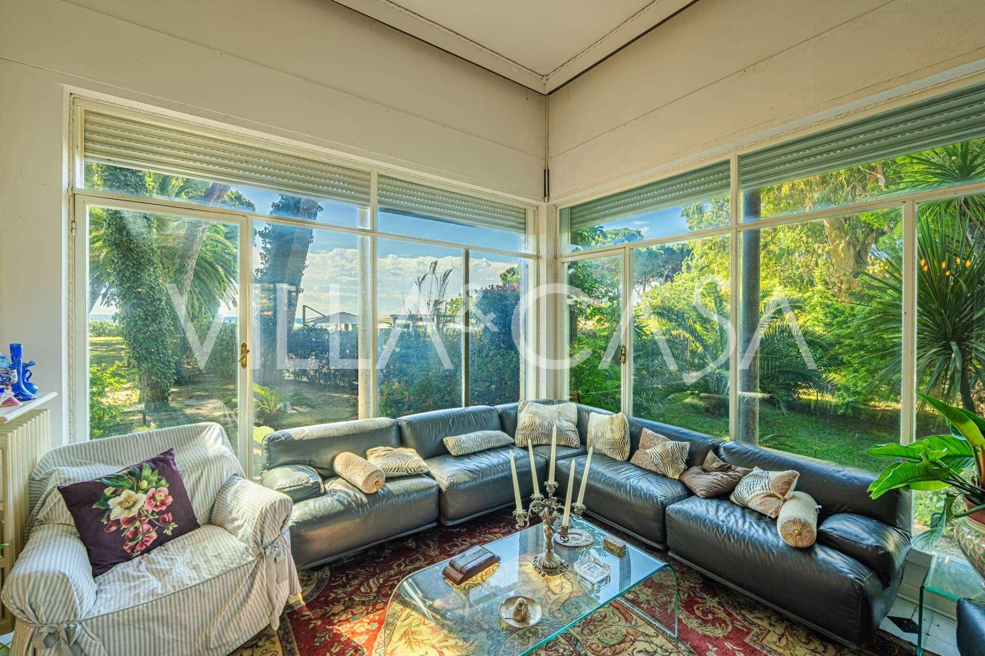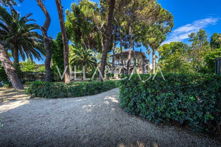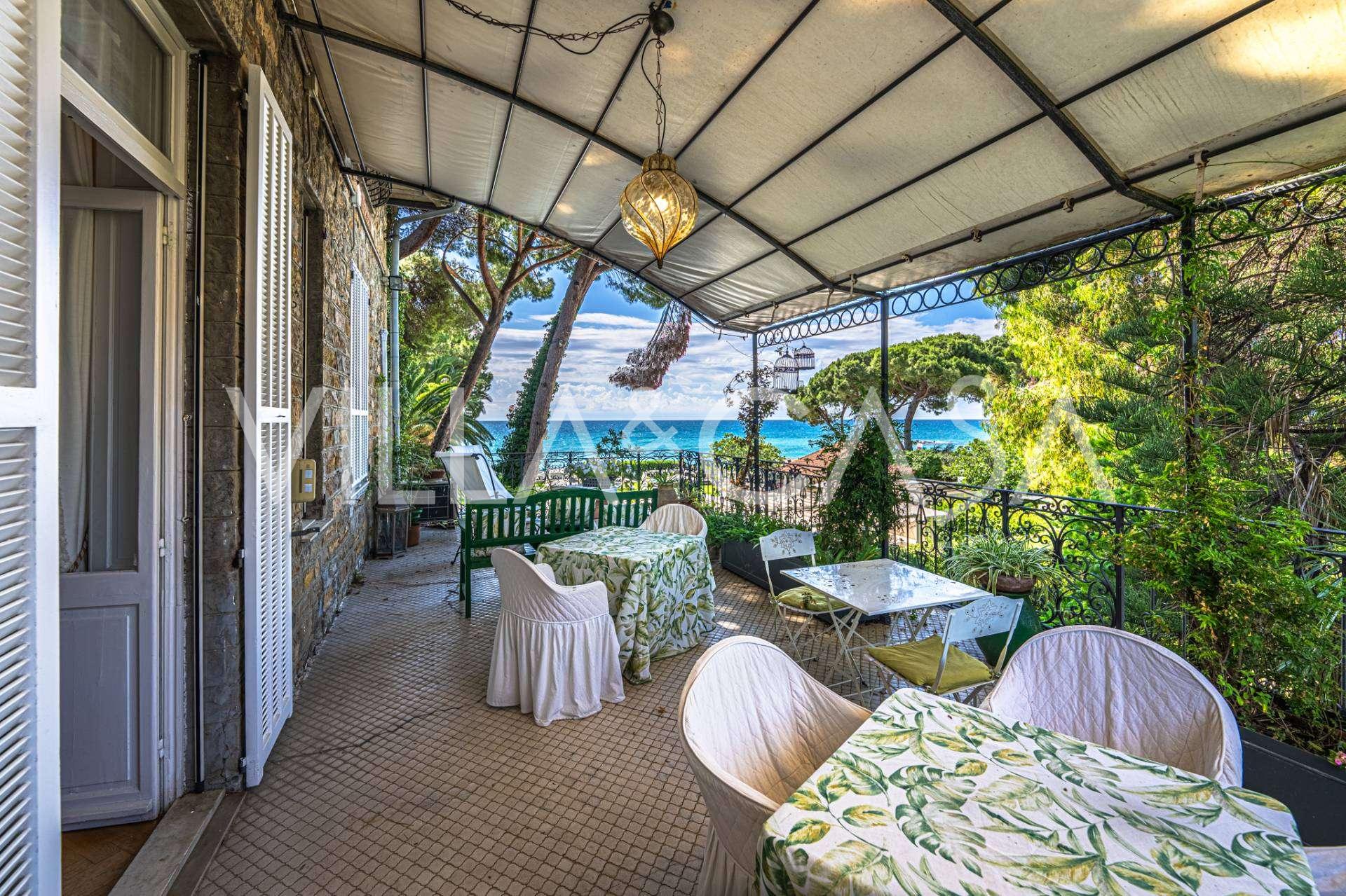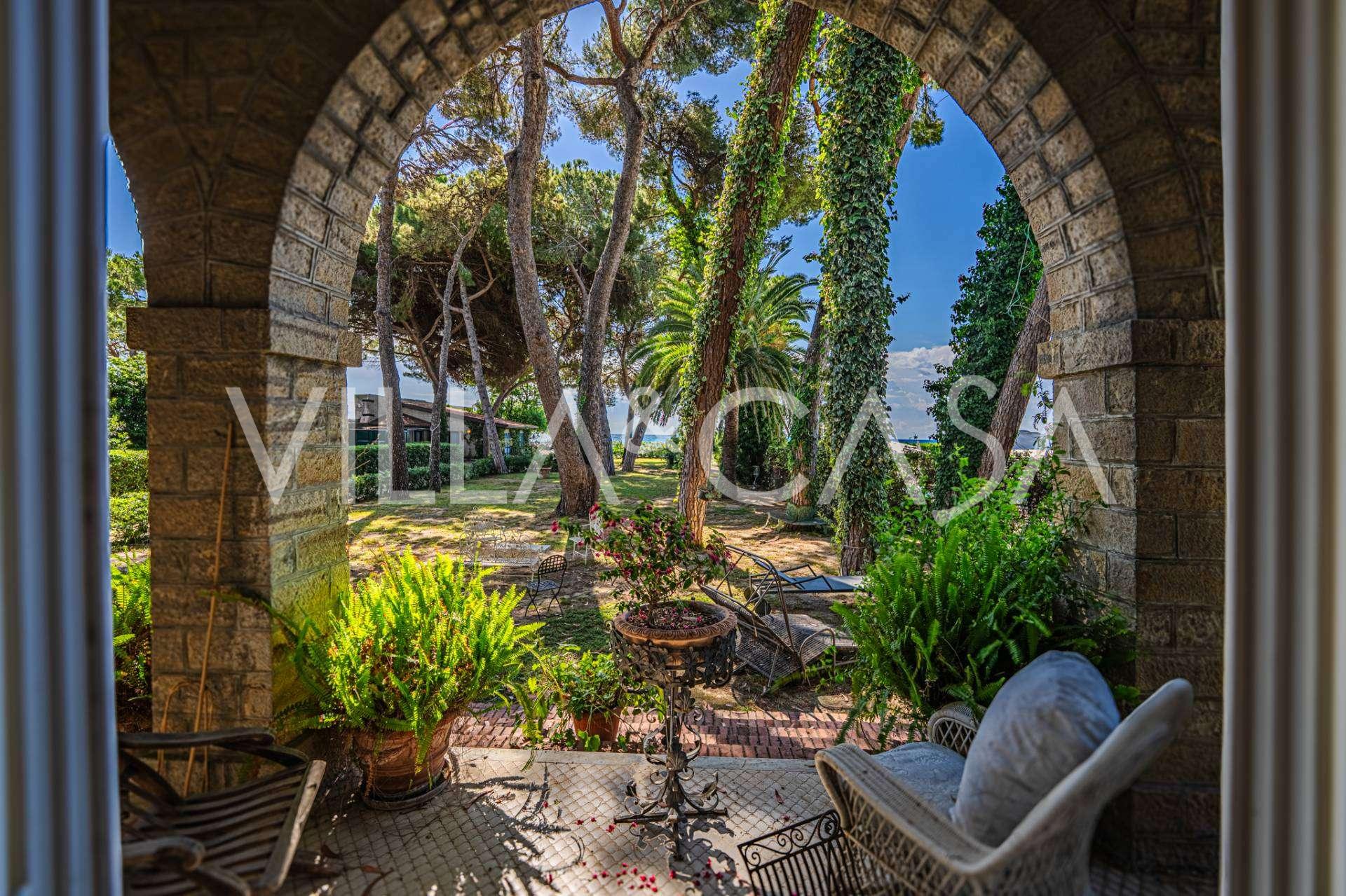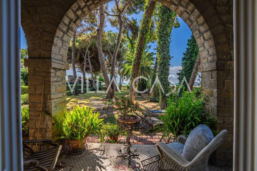 Zum Verkauf steht eine stilvolle Villa in erster Meereslinie in Diano Marina, im englischen Stil erbaut, mit einer Fläche von ca. 628 m2, auf vier Ebenen verteilt. Sie bietet direkten Zugang zum Meer und einem Sandstrand. Die Villa ist von einem weitläufigen Park von ca. 5000 m2 umgeben, der mit jahrhundertealten mediterranen Tannen bepflanzt ist.