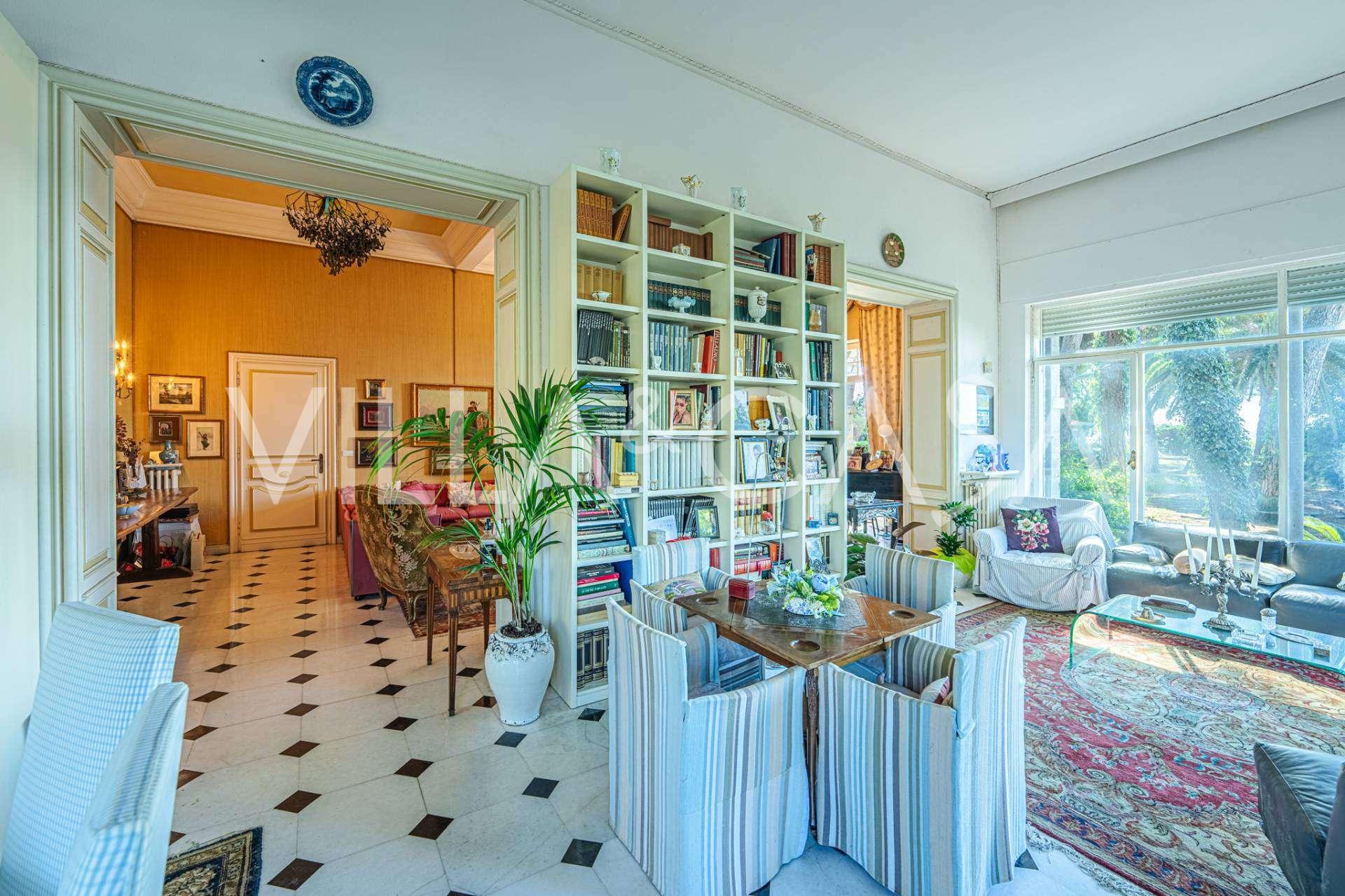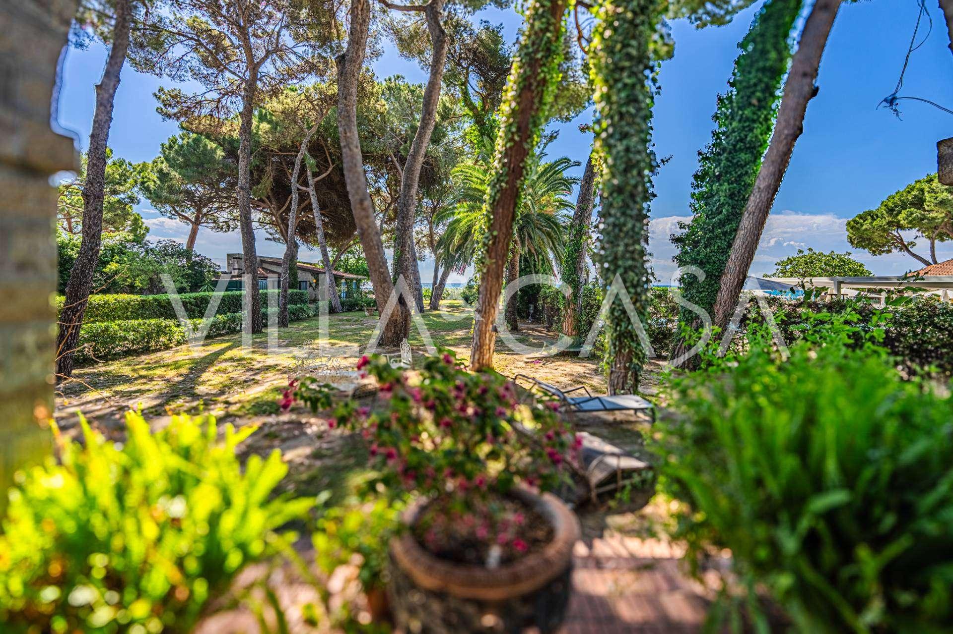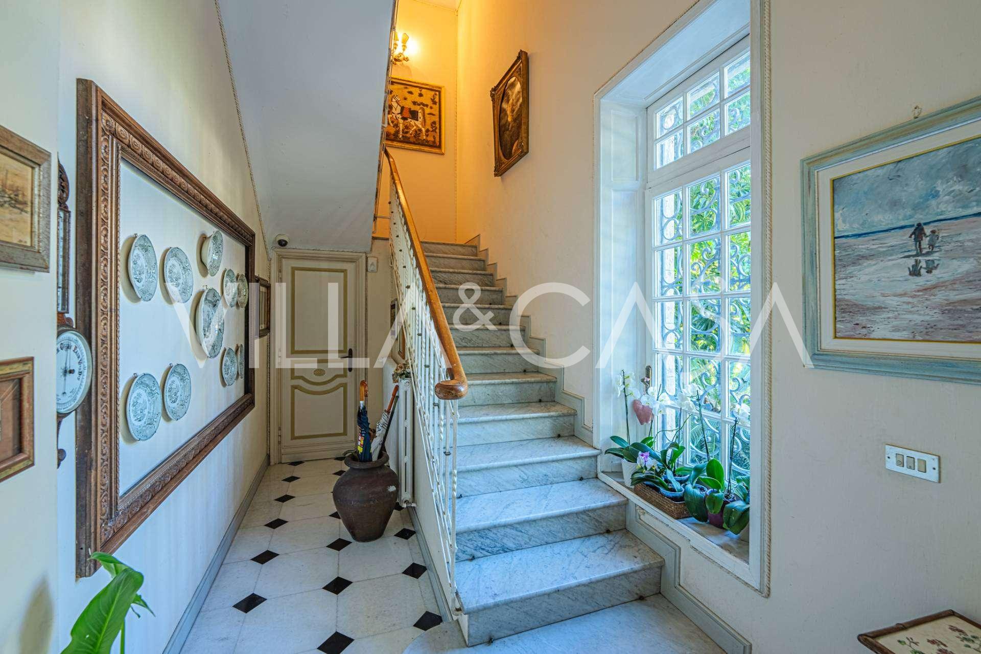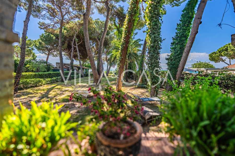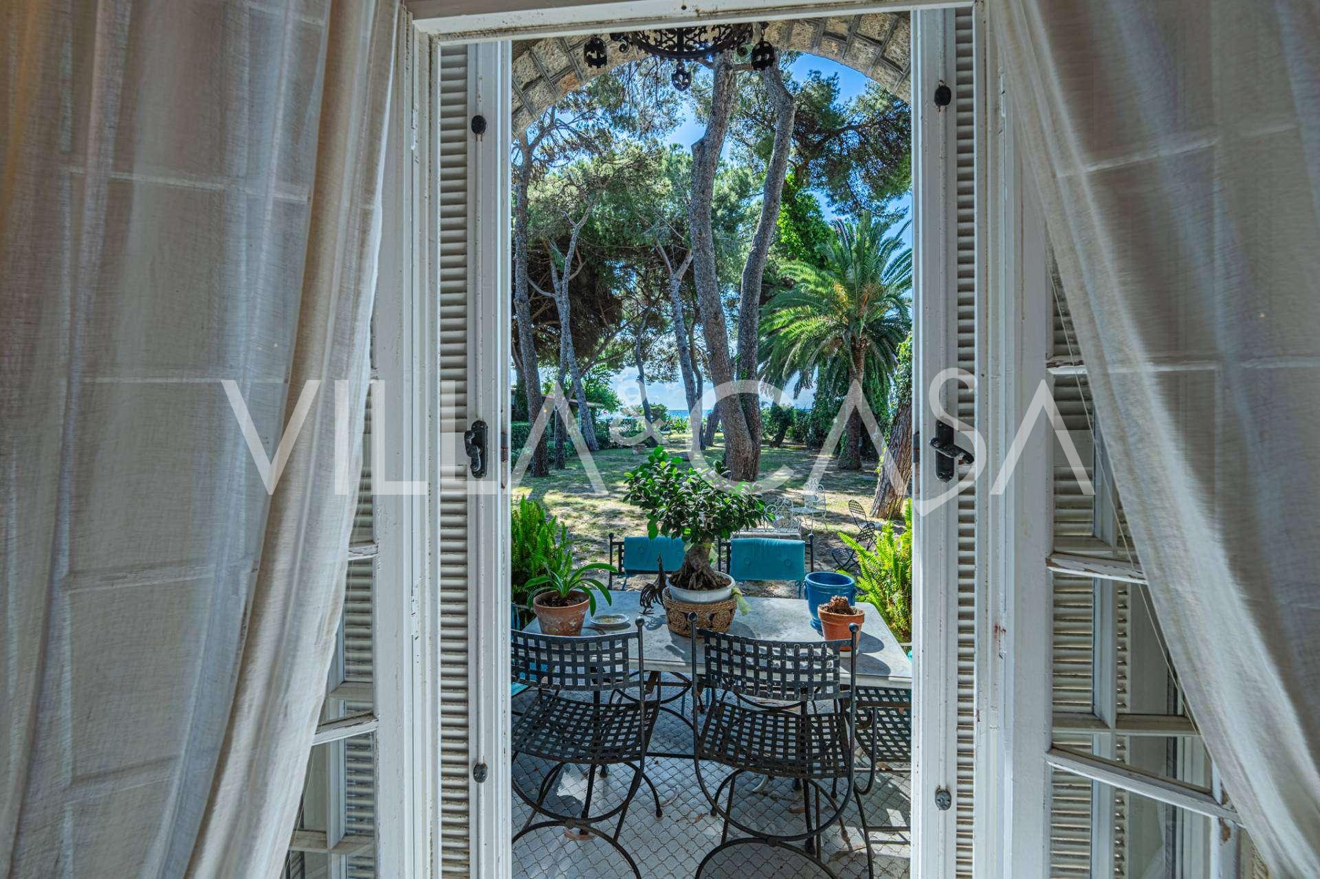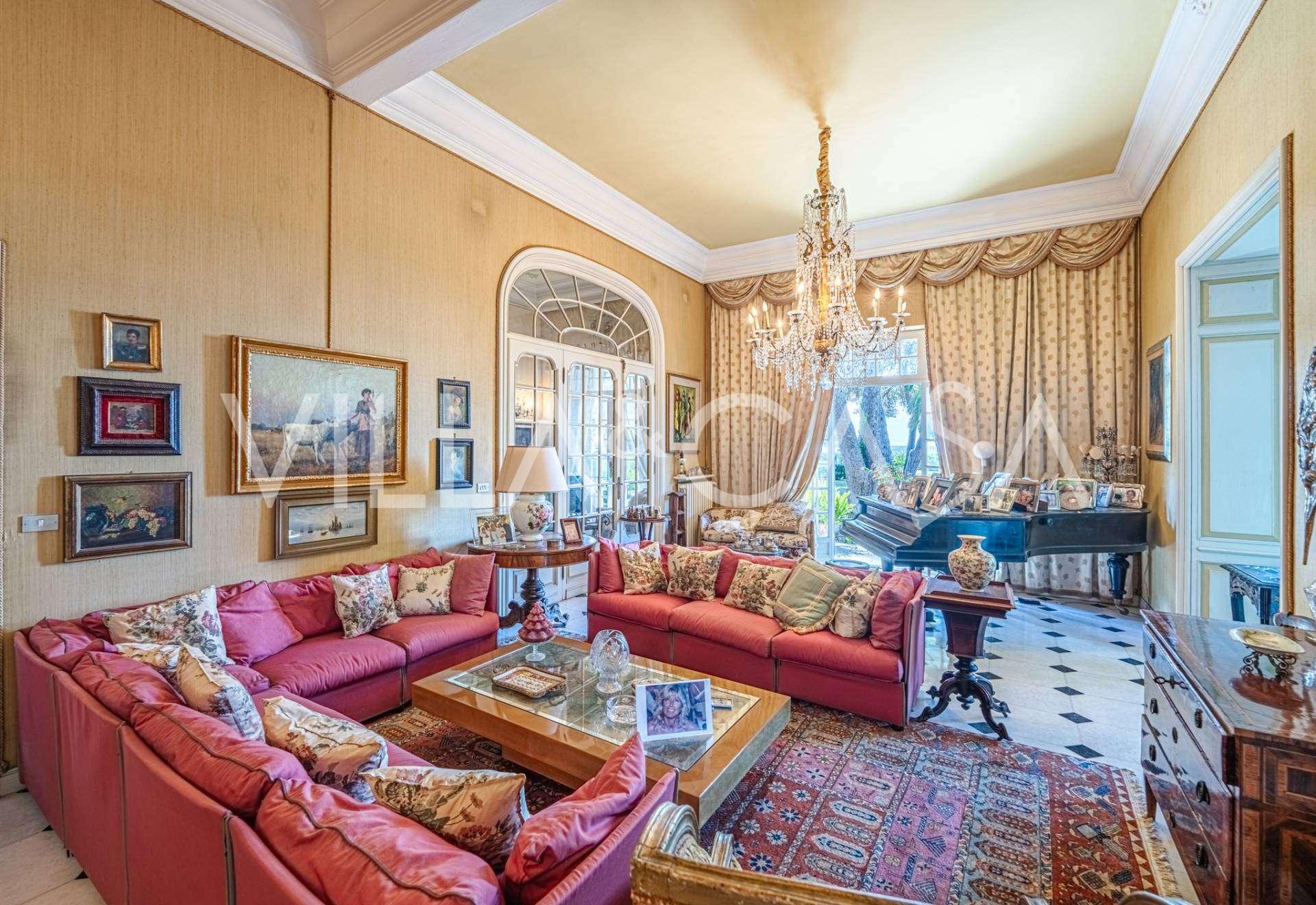 Zum Verkauf steht eine stilvolle Villa in erster Meereslinie in Diano Marina, im englischen Stil erbaut, mit einer Fläche von ca. 628 m2, auf vier Ebenen verteilt. Sie bietet direkten Zugang zum Meer und einem Sandstrand. Die Villa ist von einem weitläufigen Park von ca. 5000 m2 umgeben, der mit jahrhundertealten mediterranen Tannen bepflanzt ist.