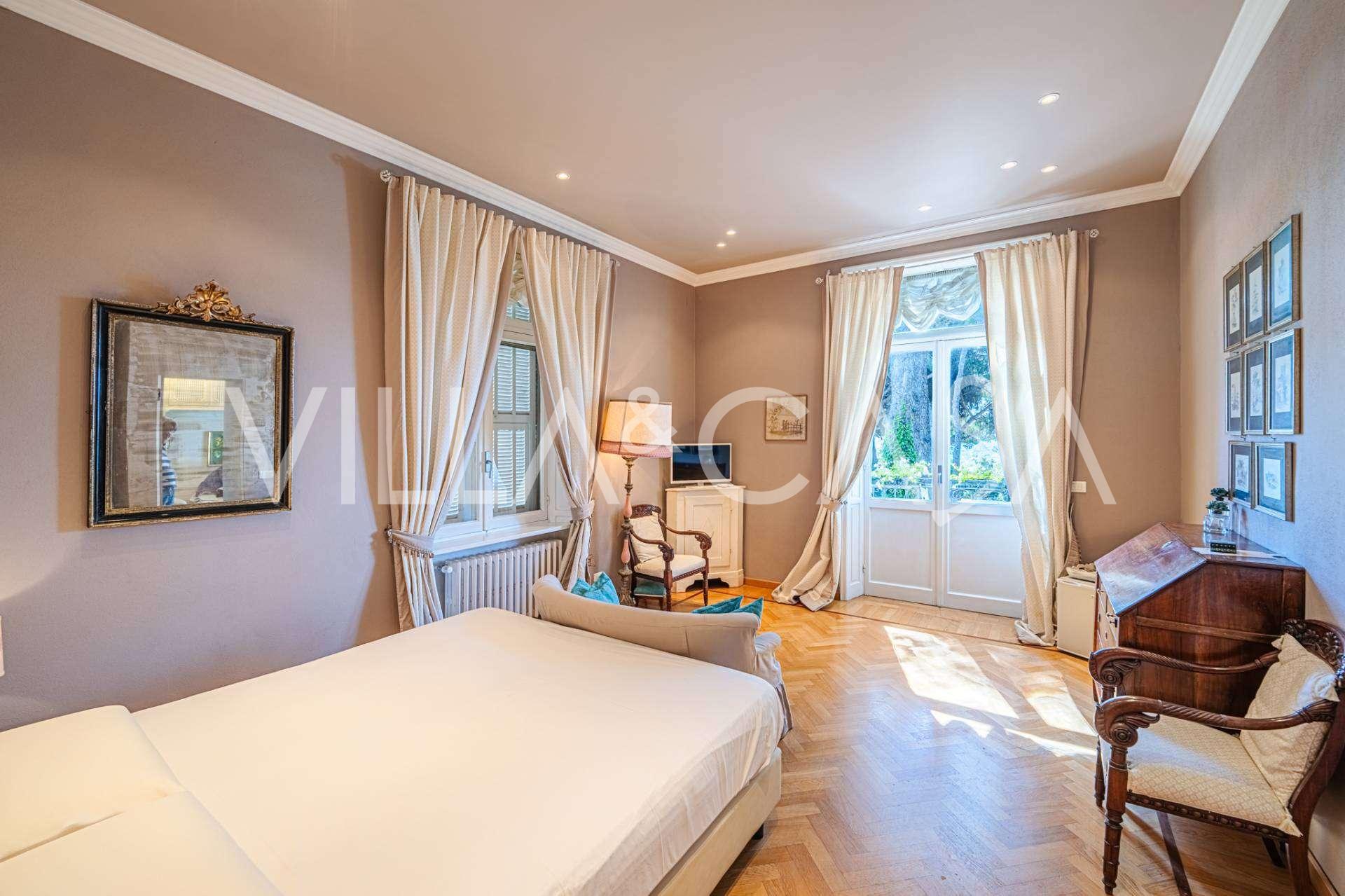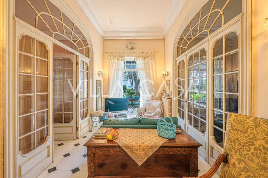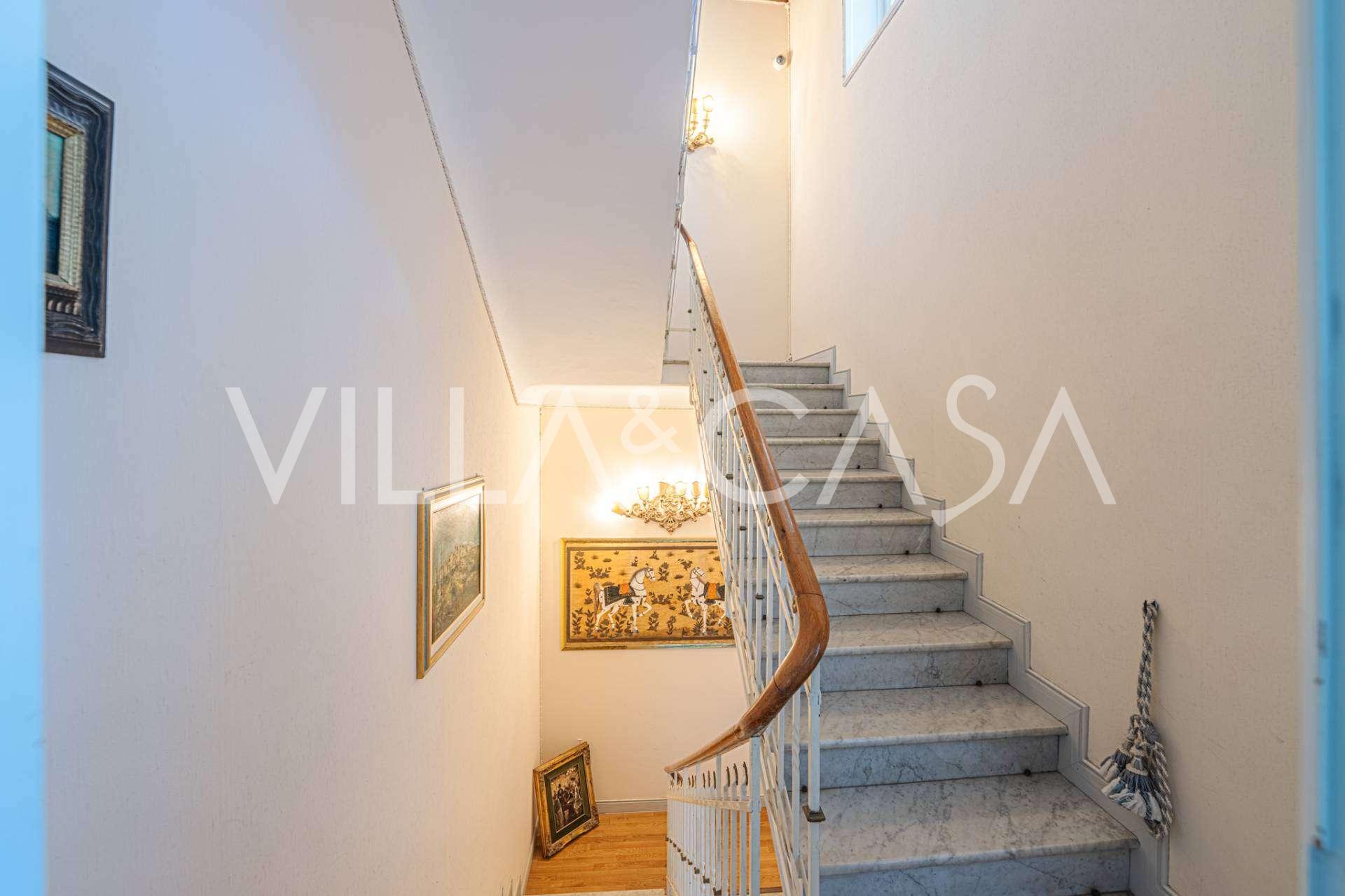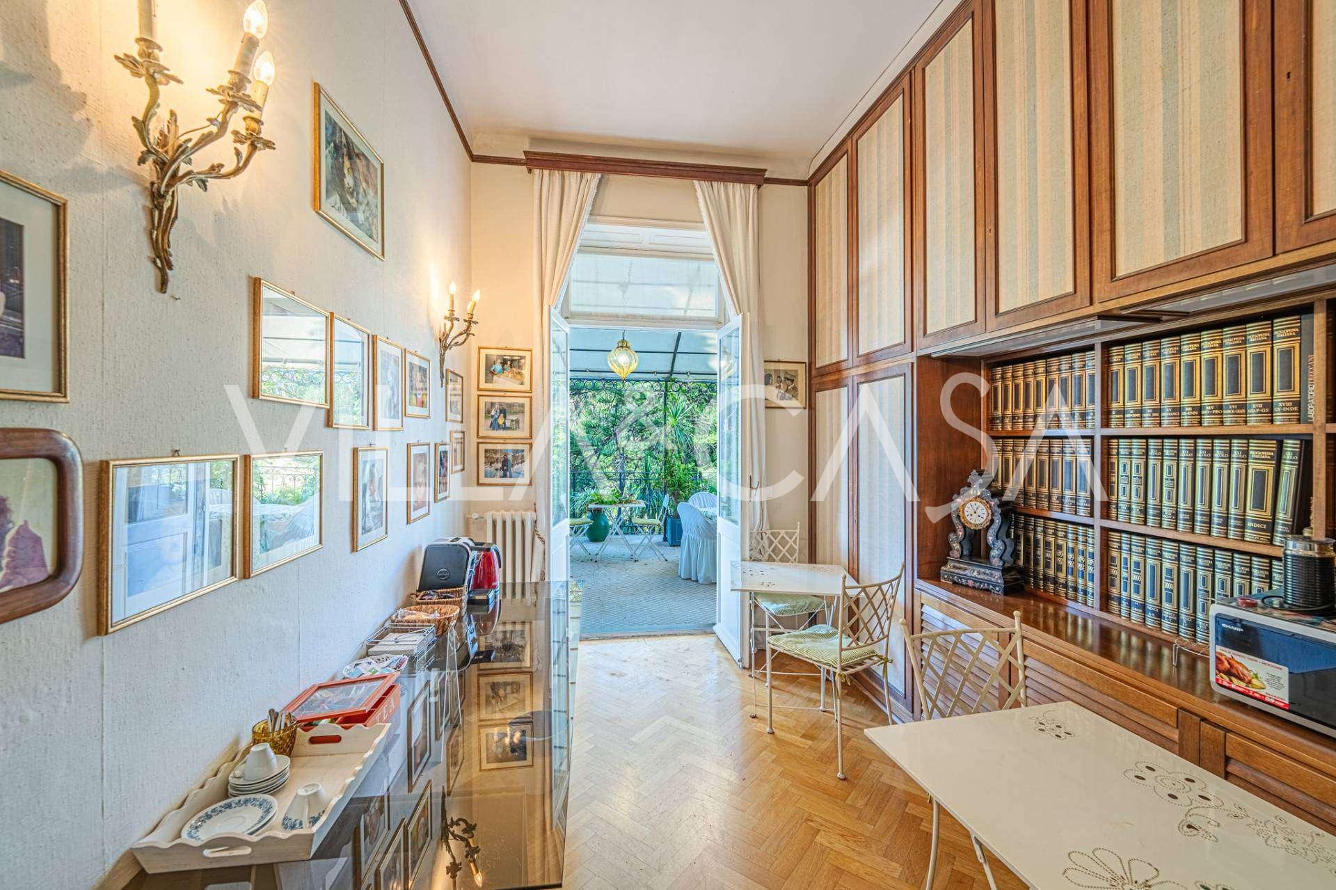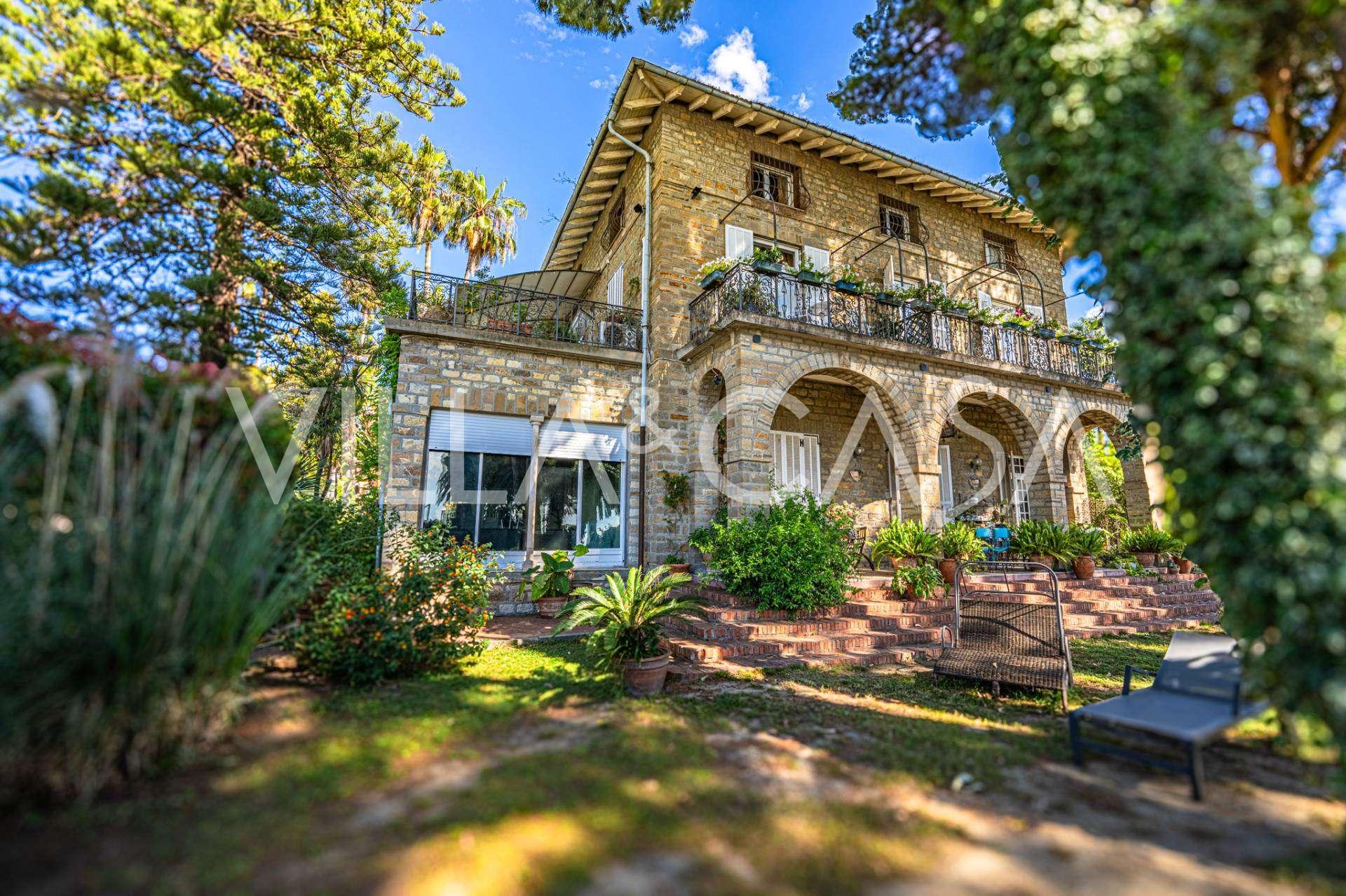 Zum Verkauf steht eine stilvolle Villa in erster Meereslinie in Diano Marina, im englischen Stil erbaut, mit einer Fläche von ca. 628 m2, auf vier Ebenen verteilt. Sie bietet direkten Zugang zum Meer und einem Sandstrand. Die Villa ist von einem weitläufigen Park von ca. 5000 m2 umgeben, der mit jahrhundertealten mediterranen Tannen bepflanzt ist.