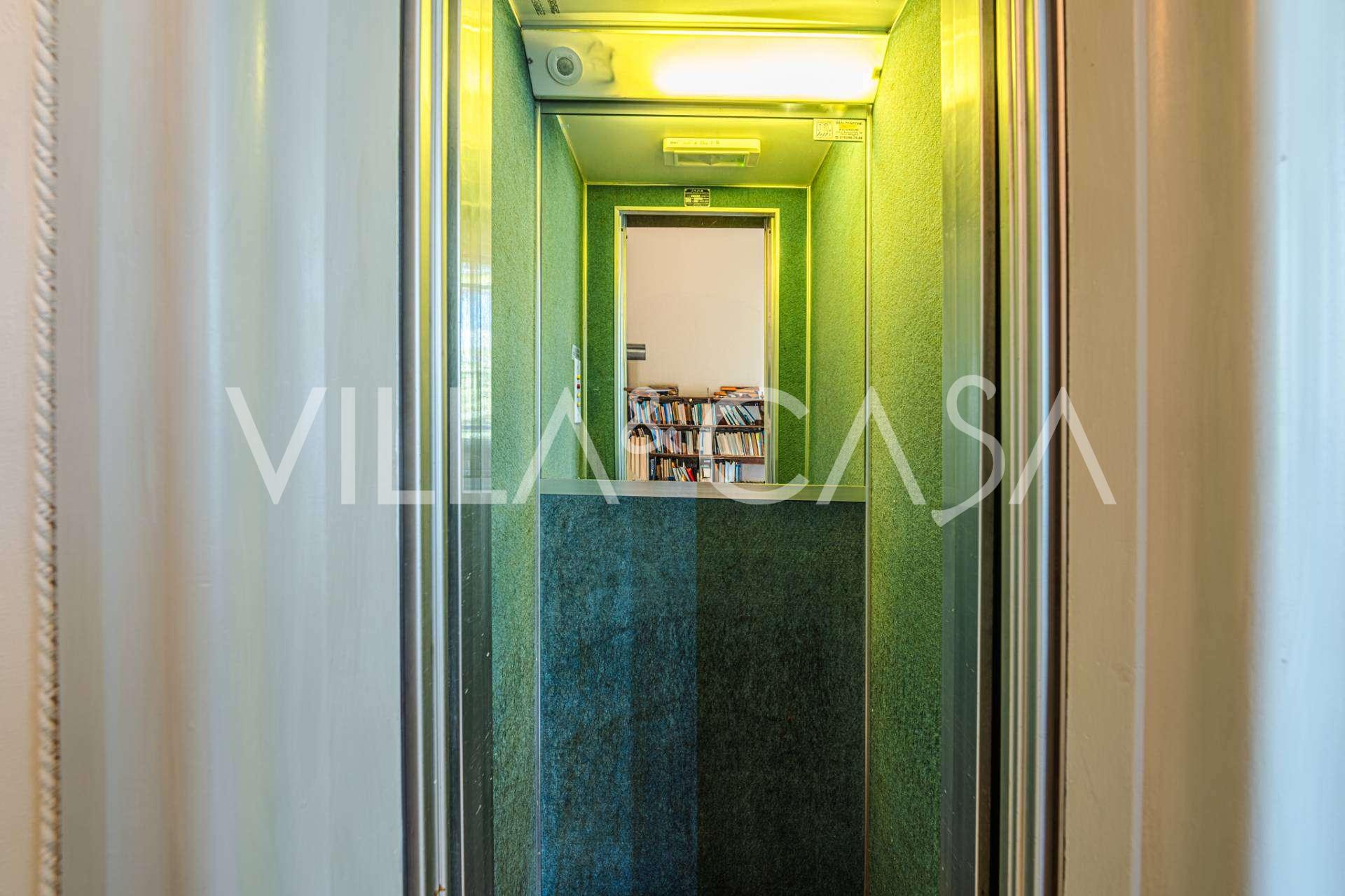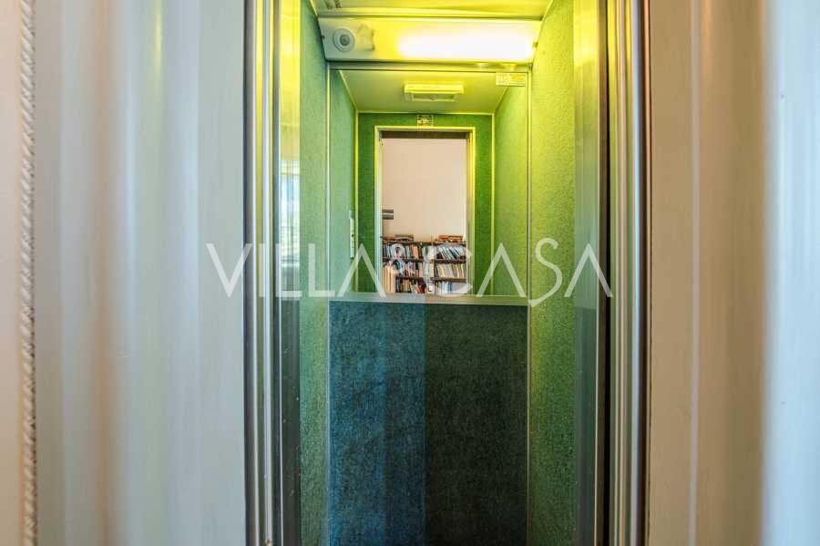 Erste Ebene: Eingang, geräumiger Flur, Aufzug, großes Wohnzimmer mit Kamin und Zugang zum Park und Strand, Wohnzimmer mit Panoramafenstern, Deckenhöhe 3,5 Meter, Schlafzimmer mit Zugang zum Park und zur überdachten Terrasse, Badezimmer mit Badewanne, separate Küche.