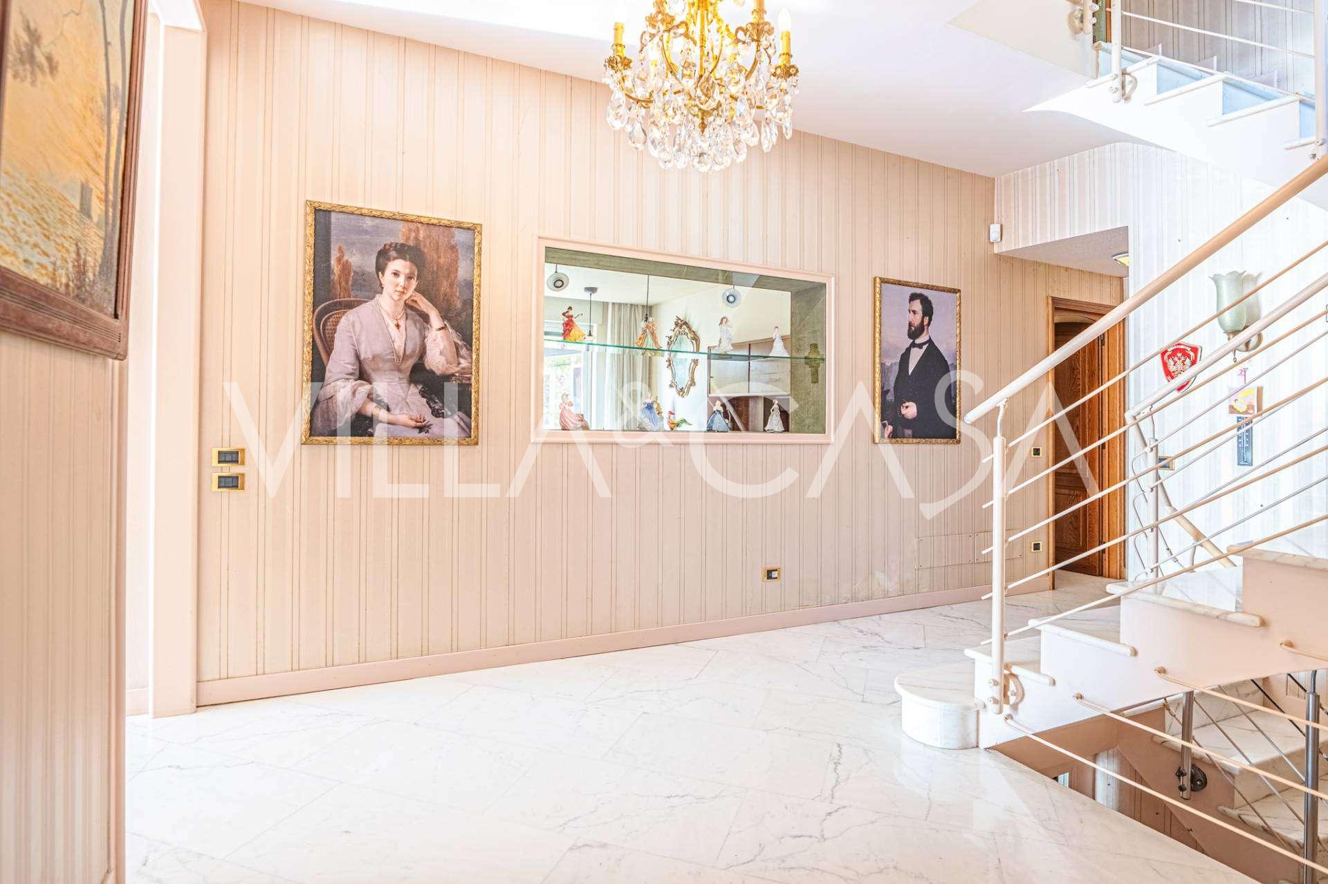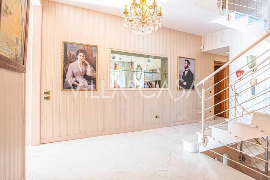 Wir bieten Ihnen eine exquisite Luxusvilla mit einer Fläche von 426 m², gelegen in der malerischen Stadt Ospedaletti, nur wenige Gehminuten vom Meer und den wunderschönen Stränden der Ligurischen Riviera entfernt.