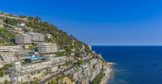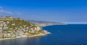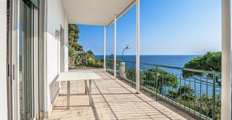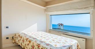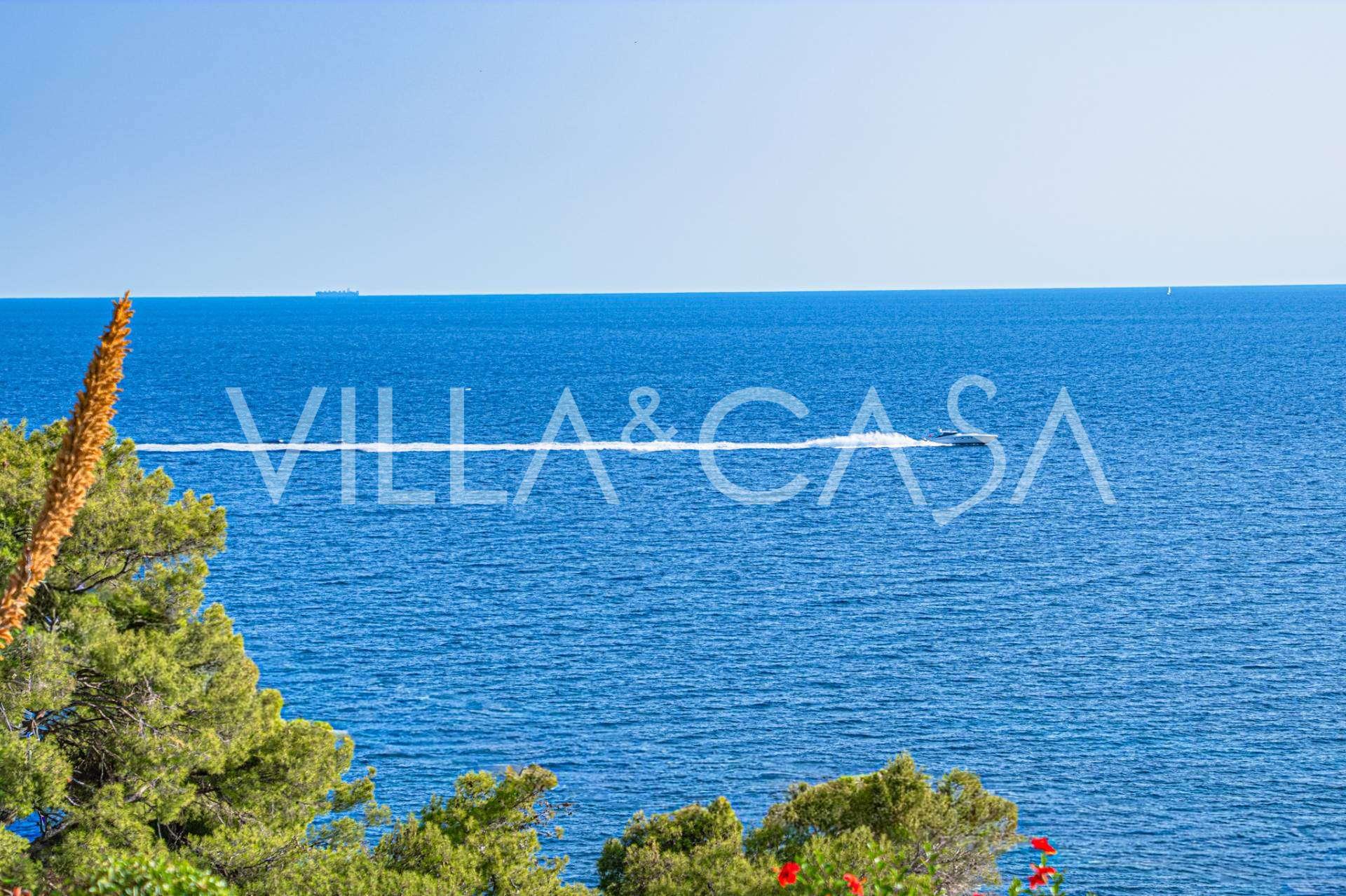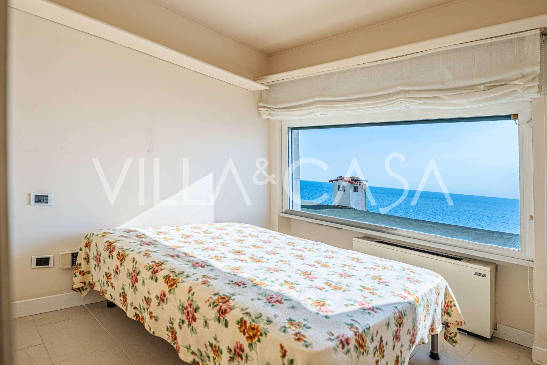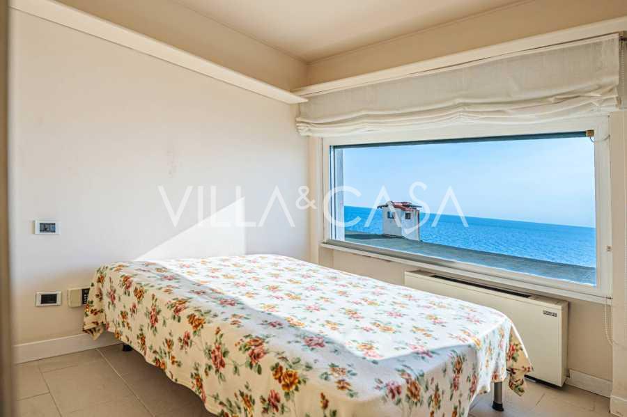 Zwei Schlafzimmer mit atemberaubendem Meerblick und zwei Badezimmern. Das Hauptschlafzimmer hat direkten Zugang zu einer großen Sonnenterrasse, die ideal für den Morgenkaffee mit Blick auf die azurblauen Wellen ist.