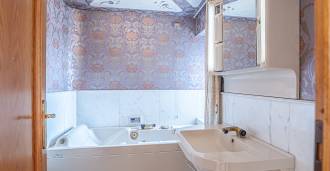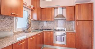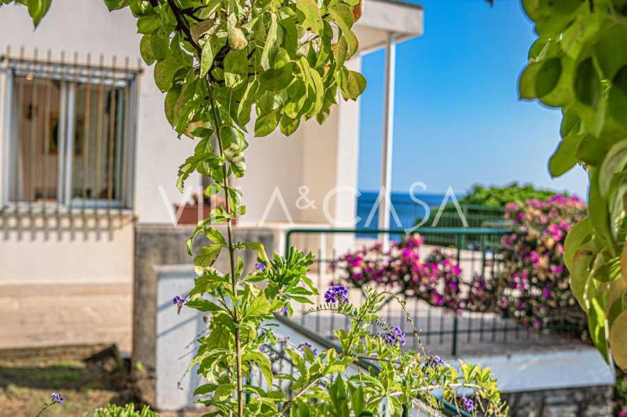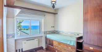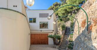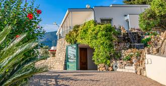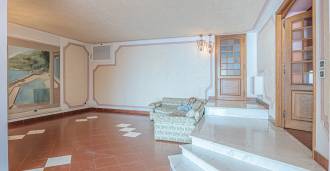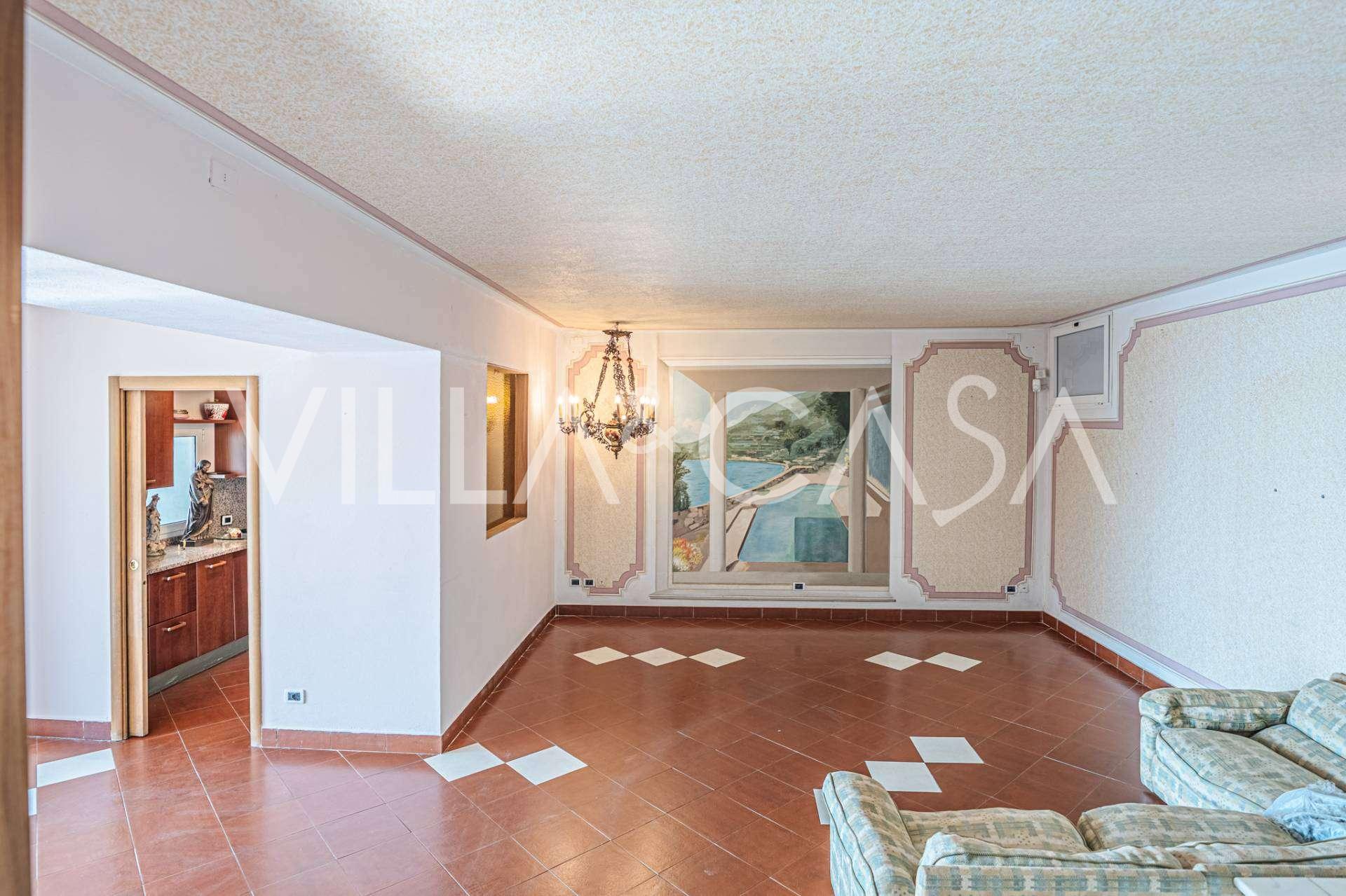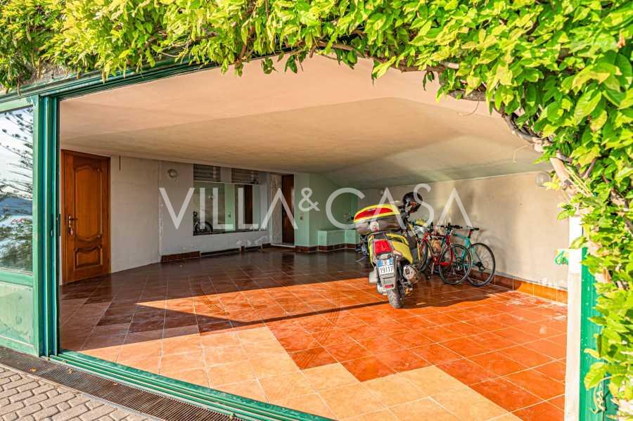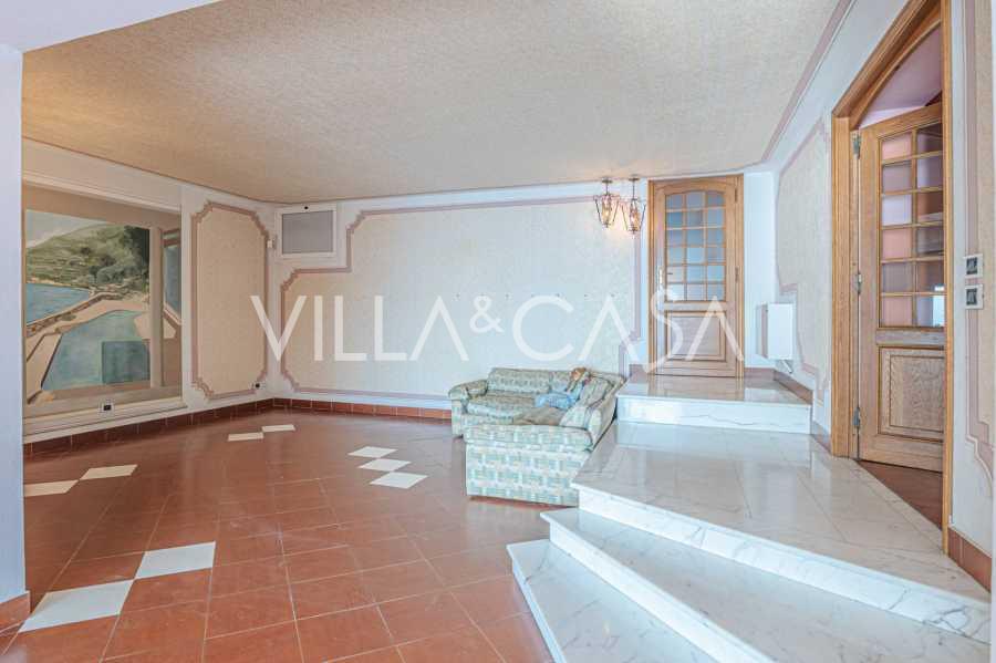 Geräumiges Wohnzimmer mit Meerblick, separate Küche, Abstellraum, Weinkeller, drei Nebenräume sowie eine Garage für zwei Autos.