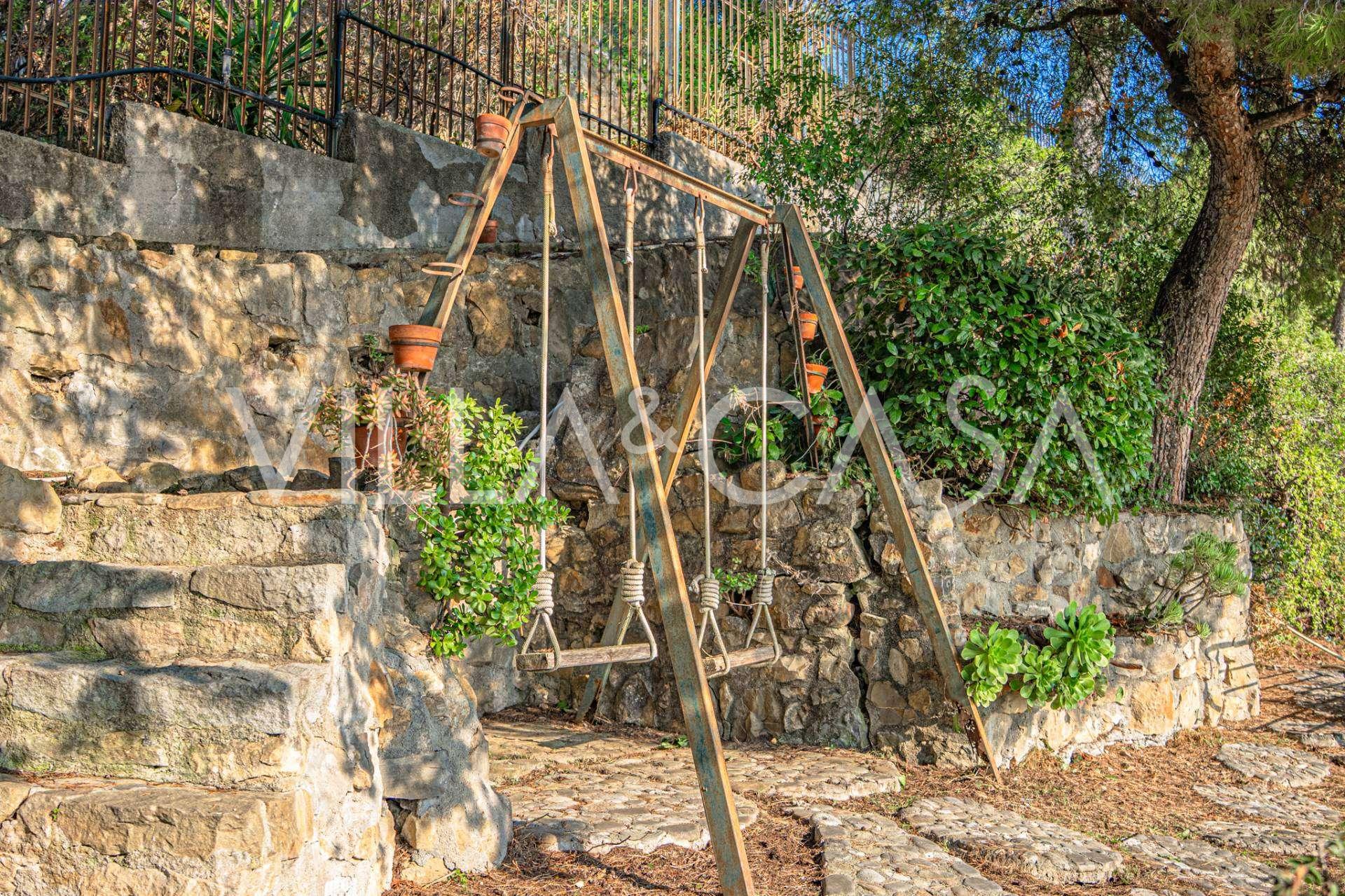 Die Residenz ist von einem einzigartigen mediterranen Garten umgeben, der mit größter Sorgfalt gestaltet wurde. Hier wachsen seltene Baum- und Straucharten, die die Atmosphäre mit einem eleganten Teich und gepflegten Wegen ergänzen. Bequemer Zugang, völlige Privatsphäre, Nähe zu Stränden, Park und städtischer Infrastruktur machen diese Villa zu einem wahren Juwel der Ligurischen Küste.