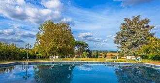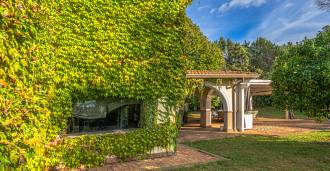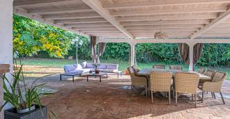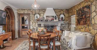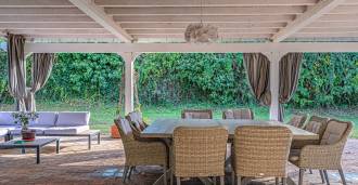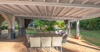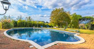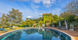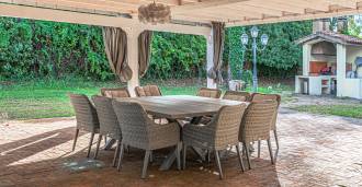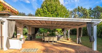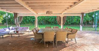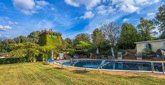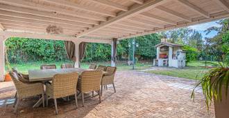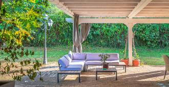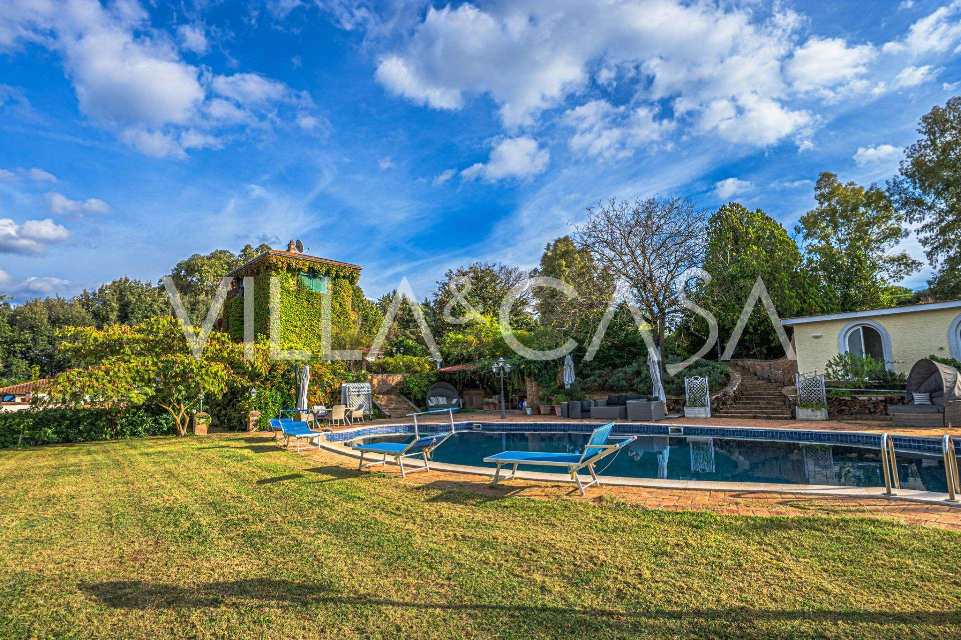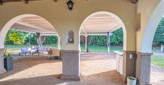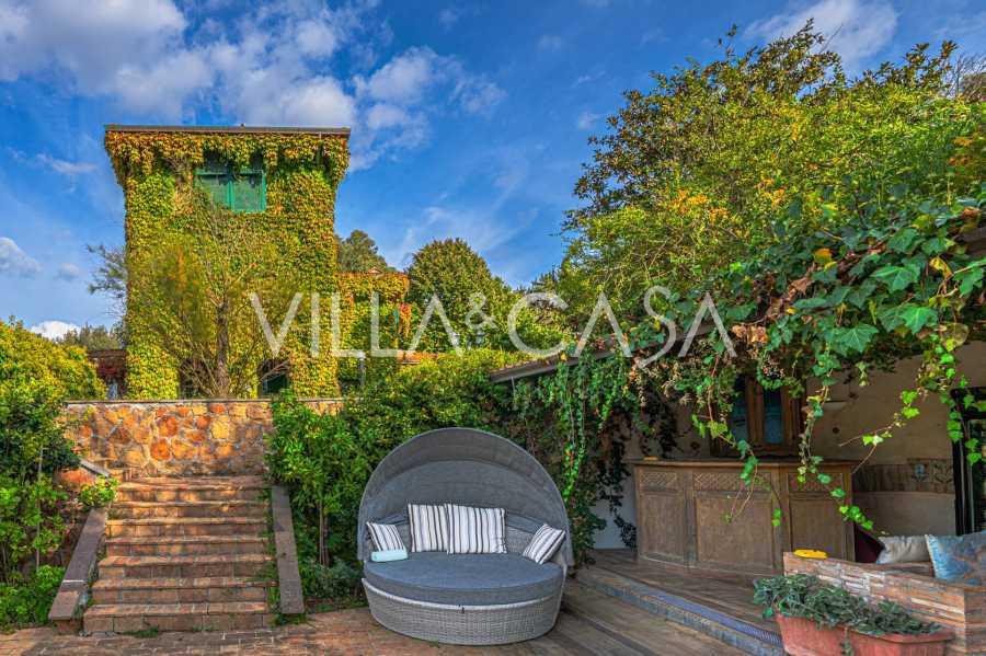 Der Außenbereich der Villa ist ein Kunstwerk unter freiem Himmel. Zwei Panoramaterrassen bieten herrliche Ausblicke auf die Landschaften von Agro-Romano. Im Zentrum des Gartens befindet sich ein Designerpool mit blauer Mosaik, umgeben von duftenden Blumen und Grün, ein Ort, an dem Luxus auf Natur trifft. Eine romantische Steintreppe, die von einem alten Turm mit grünem Efeu herabführt, führt zu ihm. Ein eleganter Pavillon mit einem Bereich für Abendessen im Freien, eine Poolbar und ein Grillbereich machen die Villa zum idealen Ort für Empfänge, Feste und abgeschiedene Erholung.