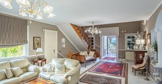 Die Villa erstreckt sich über vier Etagen und beeindruckt mit ihrer durchdachten Architektur und elegantem Innendesign. Ein majestätischer Vorhof mit symmetrischen Treppen führt zum Haupteingang und eröffnet einen Raum, in dem jedes Element für Komfort und Genuss geschaffen wurde. Im Erdgeschoss empfängt eine luxuriöse Empfangszone die Gäste in der Atmosphäre eines privaten Palastes: ein geräumiges Wohnzimmer mit Kamin, ein elegantes Arbeitszimmer und ein stilvolles Gästezimmer mit Badezimmer schaffen eine Harmonie aus Gemütlichkeit und Noblesse.