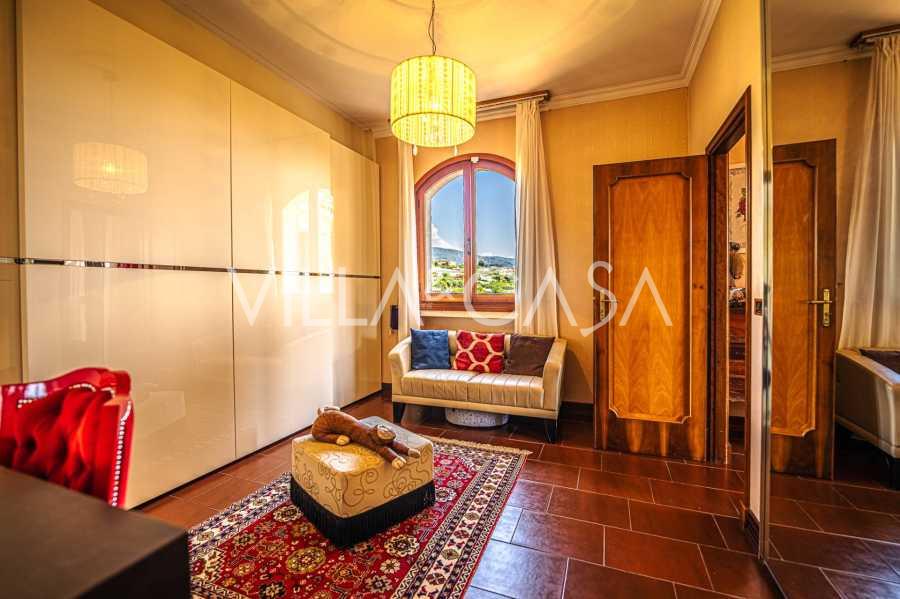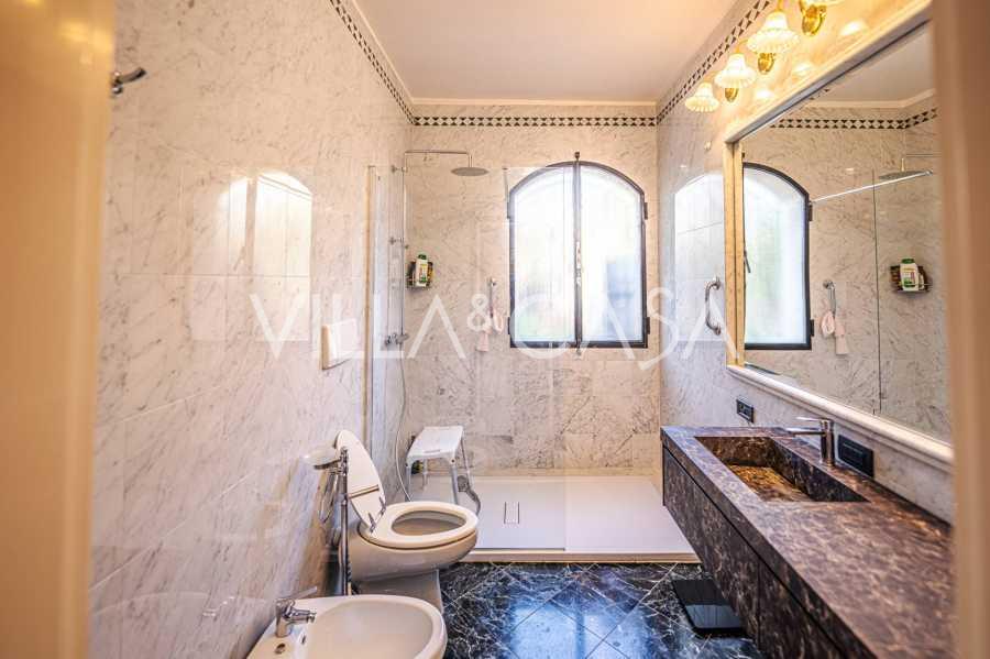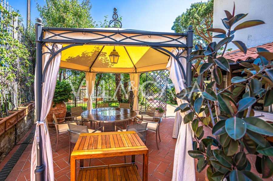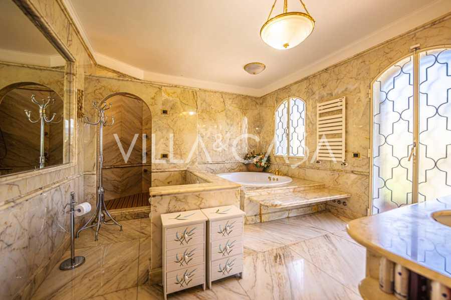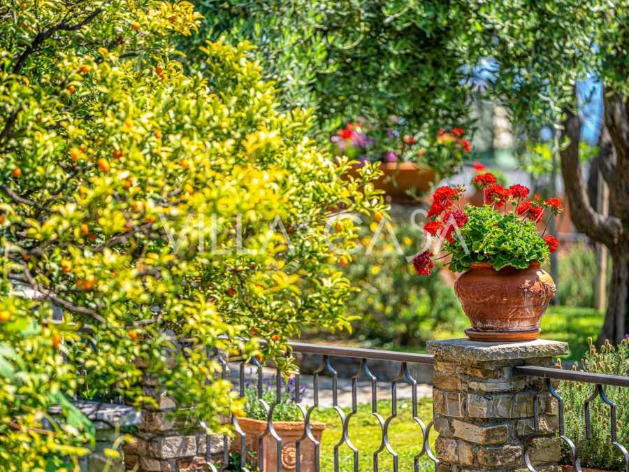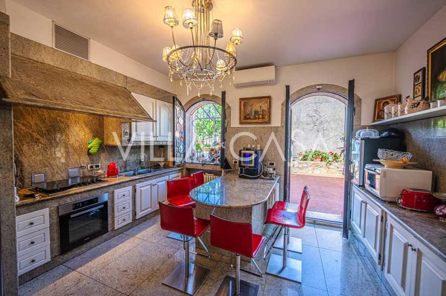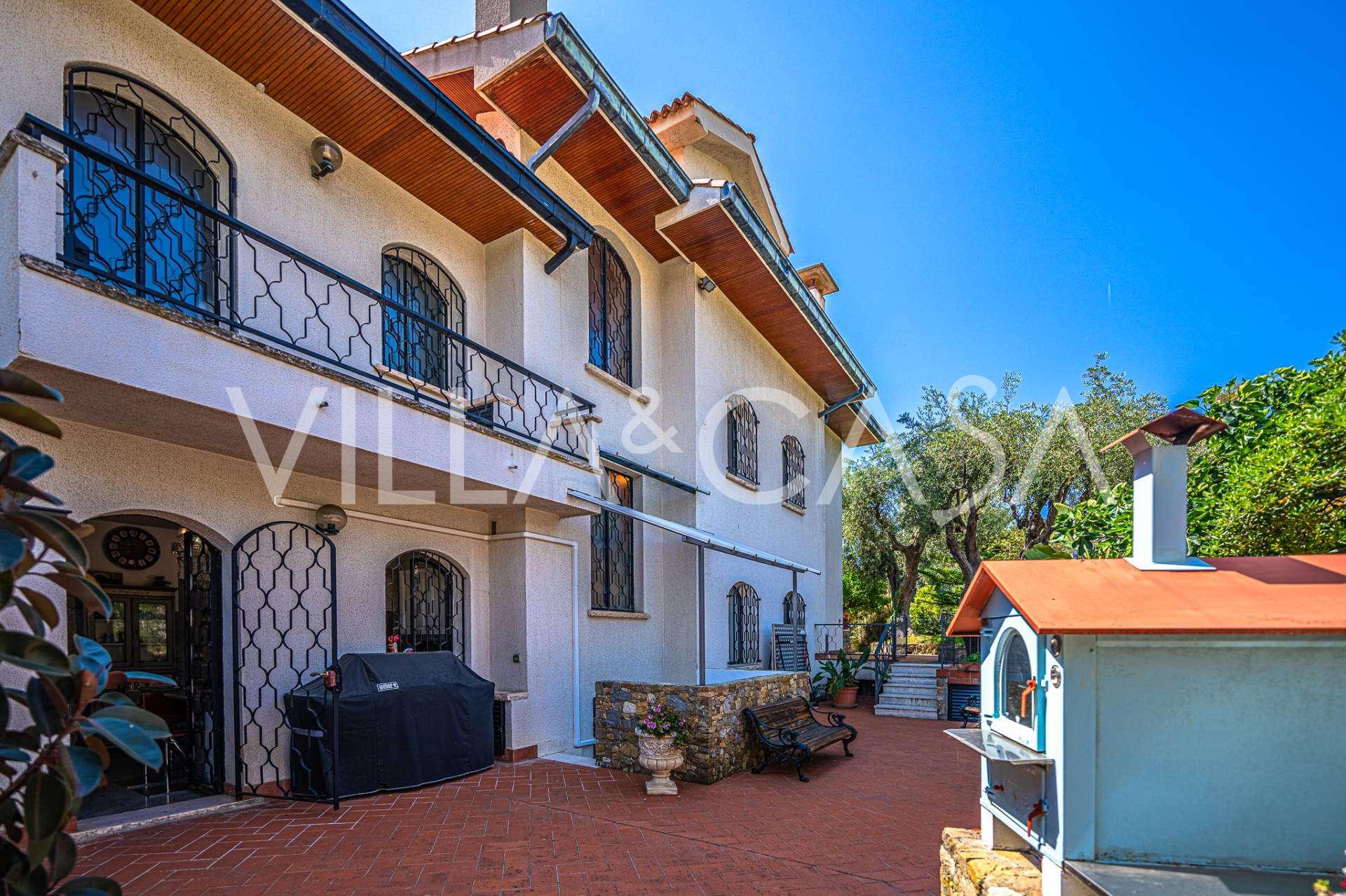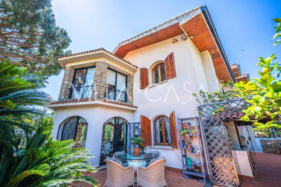 Exklusives Angebot! In einem ruhigen und prestigeträchtigen Teil von Sanremo steht eine geräumige Villa mit einer Fläche von ca. 608 m2 mit Meerblick sowie ein zweistöckiges Gästehaus von ca. 141 m2 zum Verkauf. Die Villa erstreckt sich über vier Etagen und umfasst: