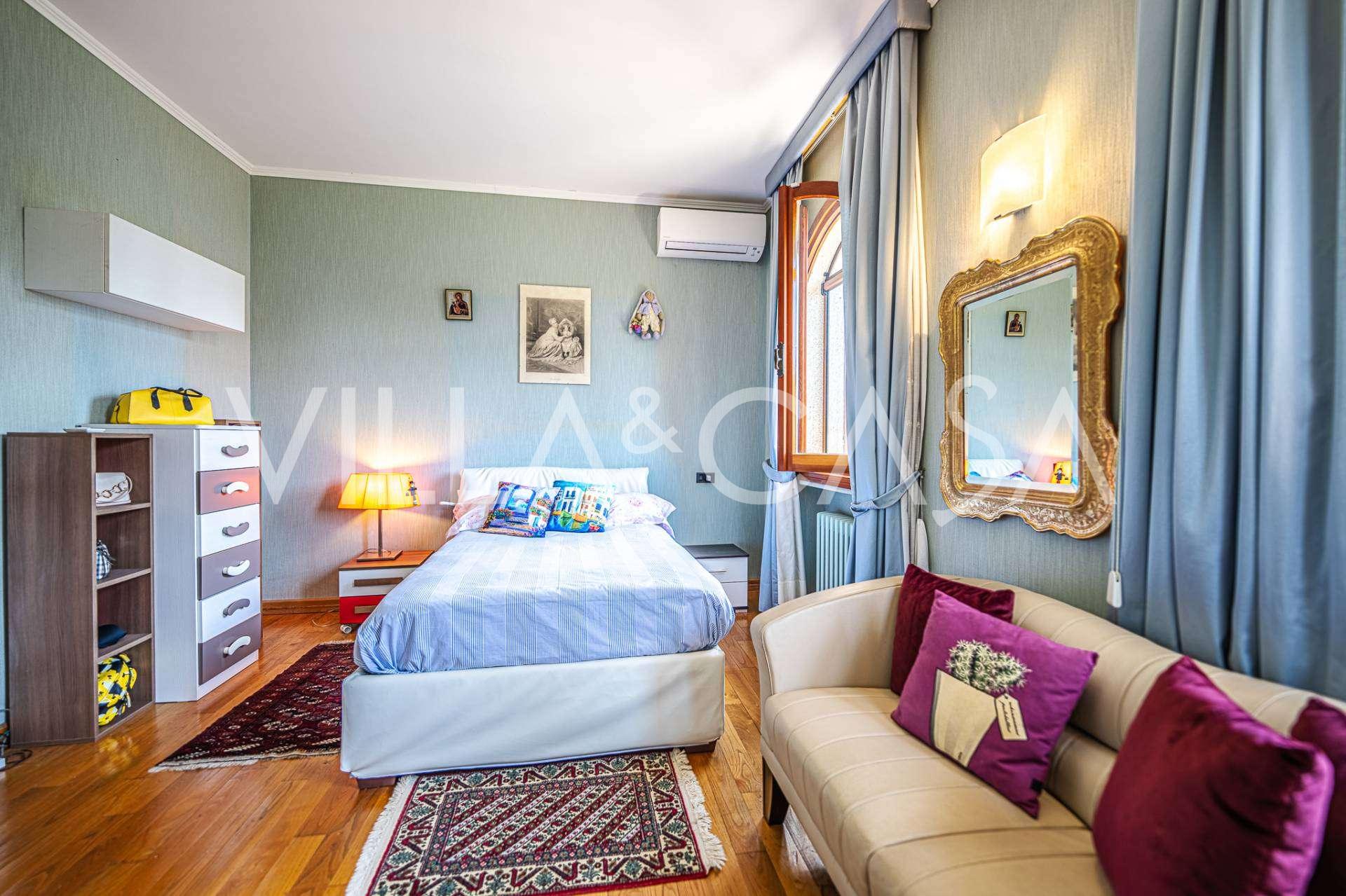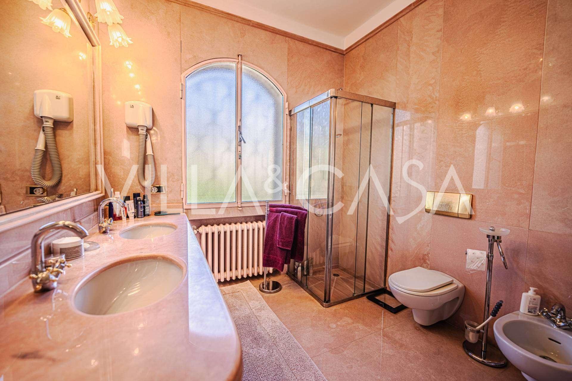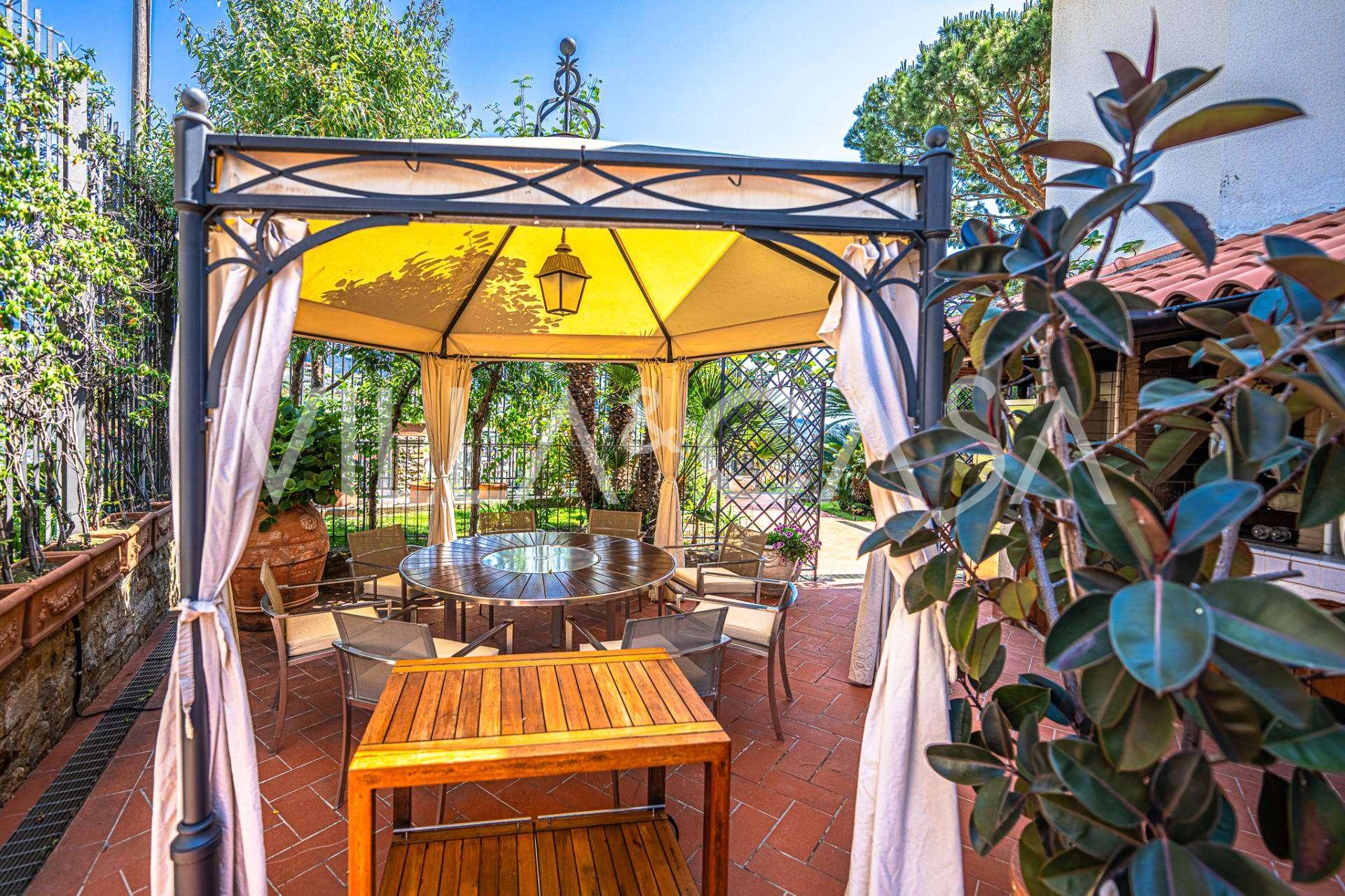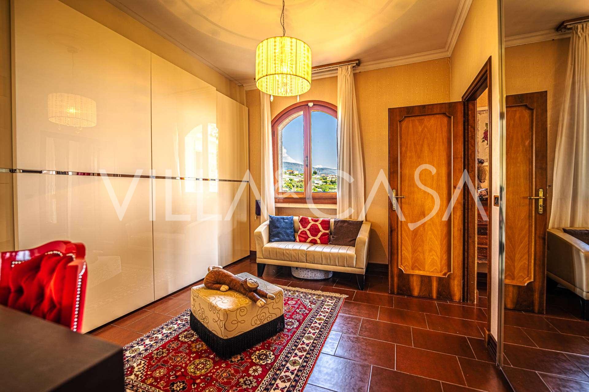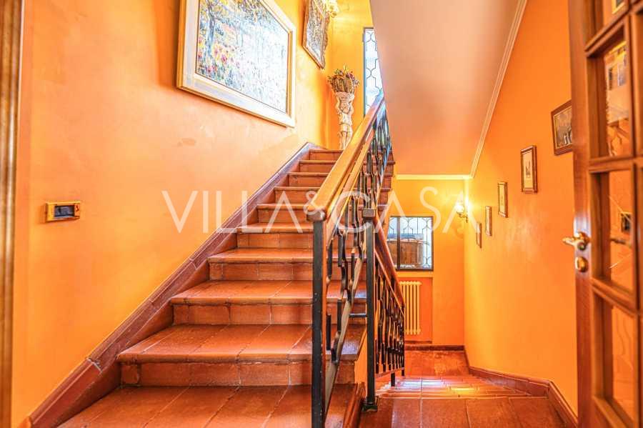 Exklusives Angebot! In einem ruhigen und prestigeträchtigen Teil von Sanremo steht eine geräumige Villa mit einer Fläche von ca. 608 m2 mit Meerblick sowie ein zweistöckiges Gästehaus von ca. 141 m2 zum Verkauf. Die Villa erstreckt sich über vier Etagen und umfasst: