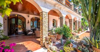 Erdgeschoss: Geräumige überdachte Terrasse mit Bögen und Meerblick, Halle, großer Saal mit Kamin, Wohnzimmer mit Zugang zum Garten, Küche ebenfalls mit Zugang zum Garten und Ruhebereich, zwei Schlafzimmer, zwei Badezimmer.