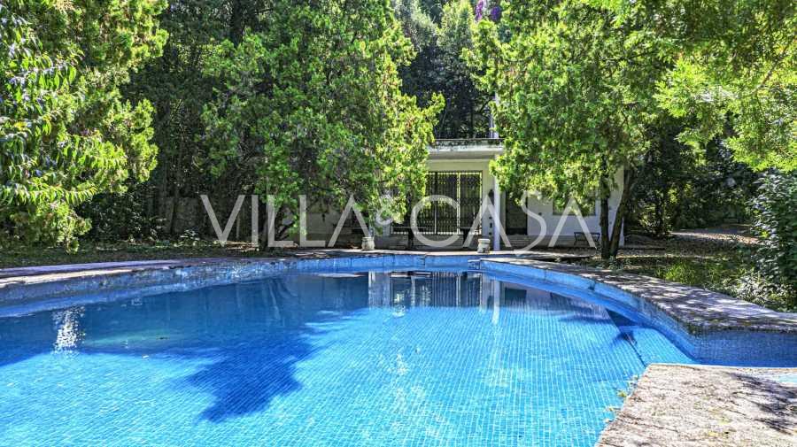 Zum Verkauf steht eine elegante Villa aus dem späten 19. Jahrhundert mit eklektischer Architektur, die gekonnt koloniale, klassische und moderne Stile vereint. Auf einem Parkgrundstück von über 4000 Quadratmetern gelegen, das mit wertvollen Pflanzen bepflanzt ist, umfasst das Anwesen einen Pool und ein Gästehaus mit einer Fläche von etwa 100 m².