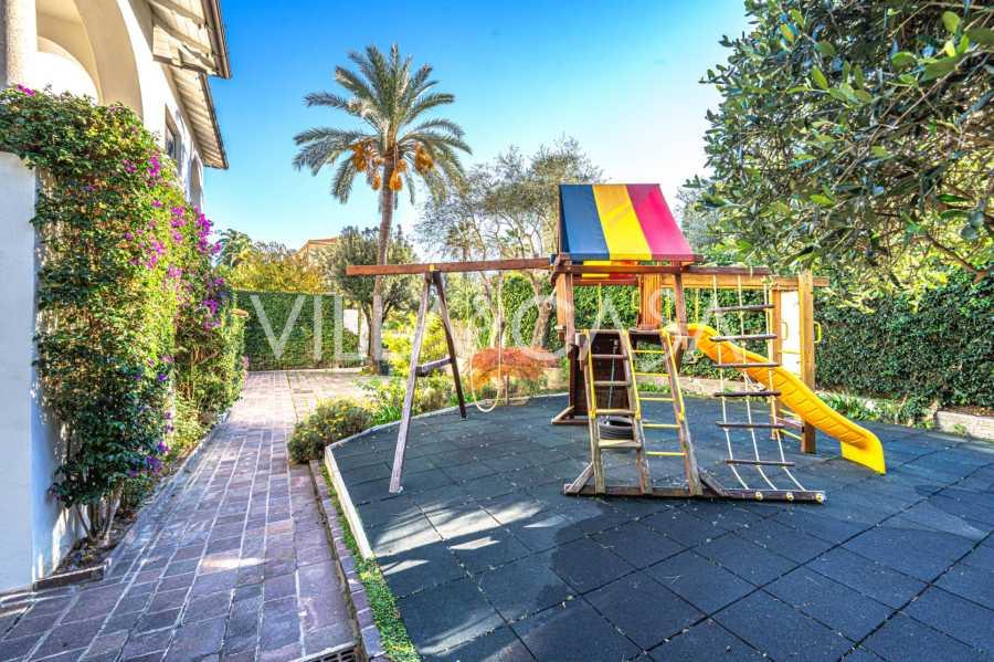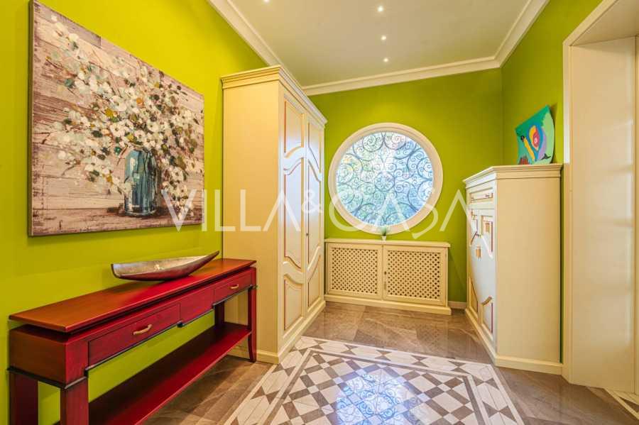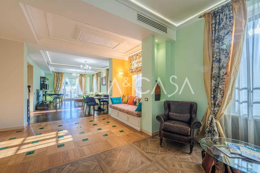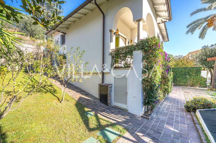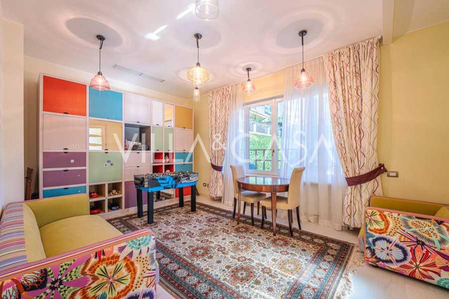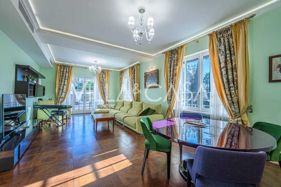 In einem ruhigen und abgeschiedenen Viertel von Sanremo, nur wenige Gehminuten vom Meer entfernt, steht eine Villa mit einer Fläche von 468 m2 zum Verkauf. Die Villa erstreckt sich über drei Etagen und umfasst: