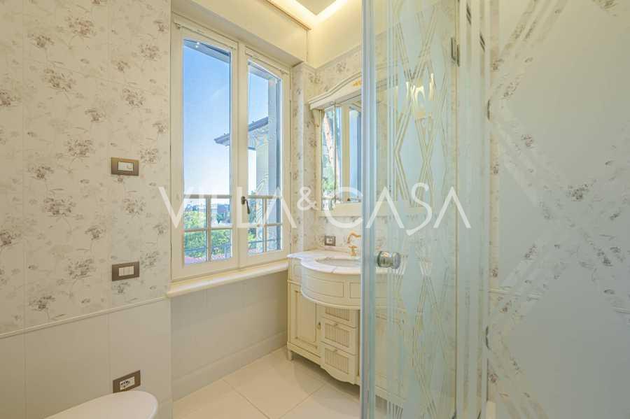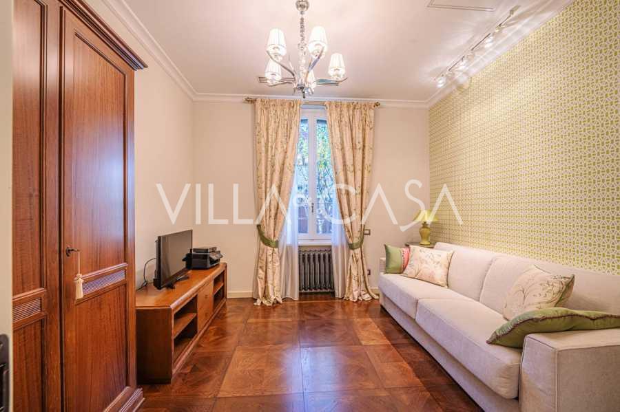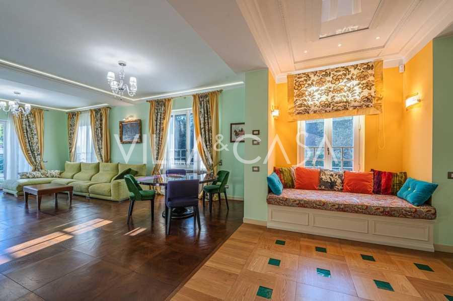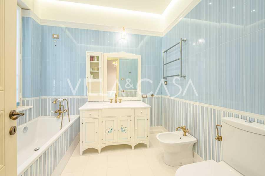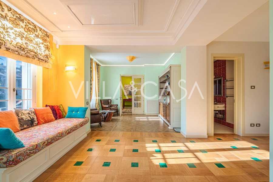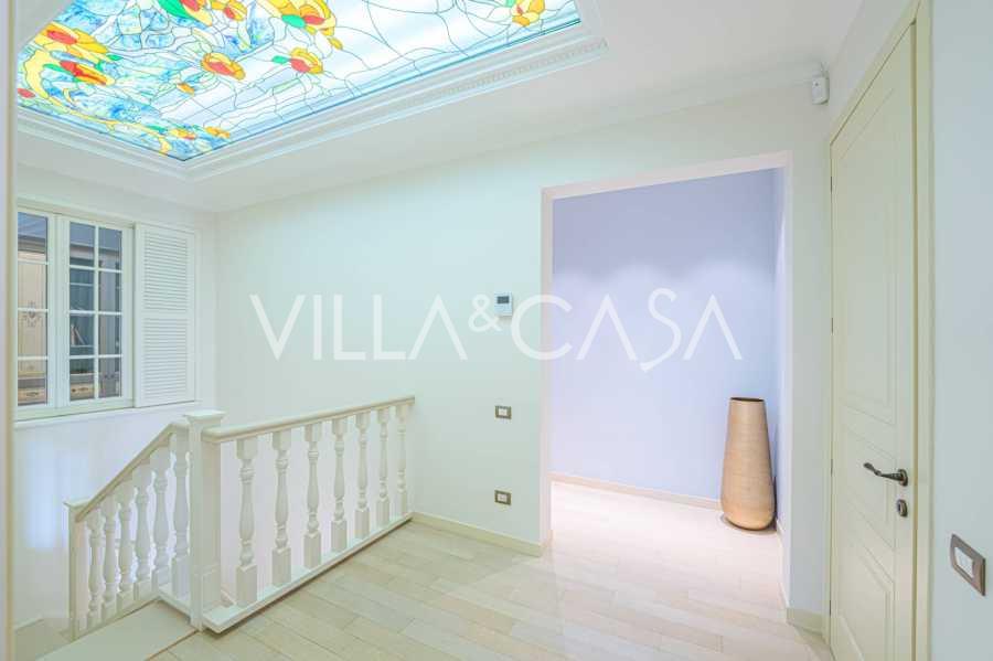 In einem ruhigen und abgeschiedenen Viertel von Sanremo, nur wenige Gehminuten vom Meer entfernt, steht eine Villa mit einer Fläche von 468 m2 zum Verkauf. Die Villa erstreckt sich über drei Etagen und umfasst: