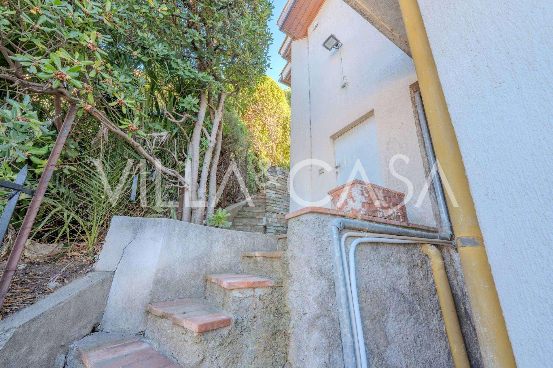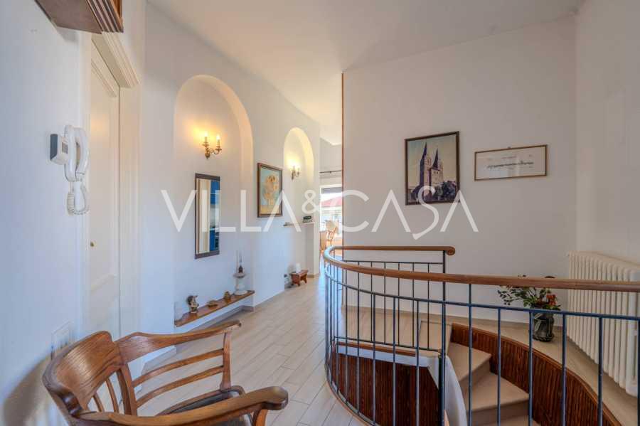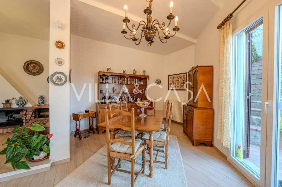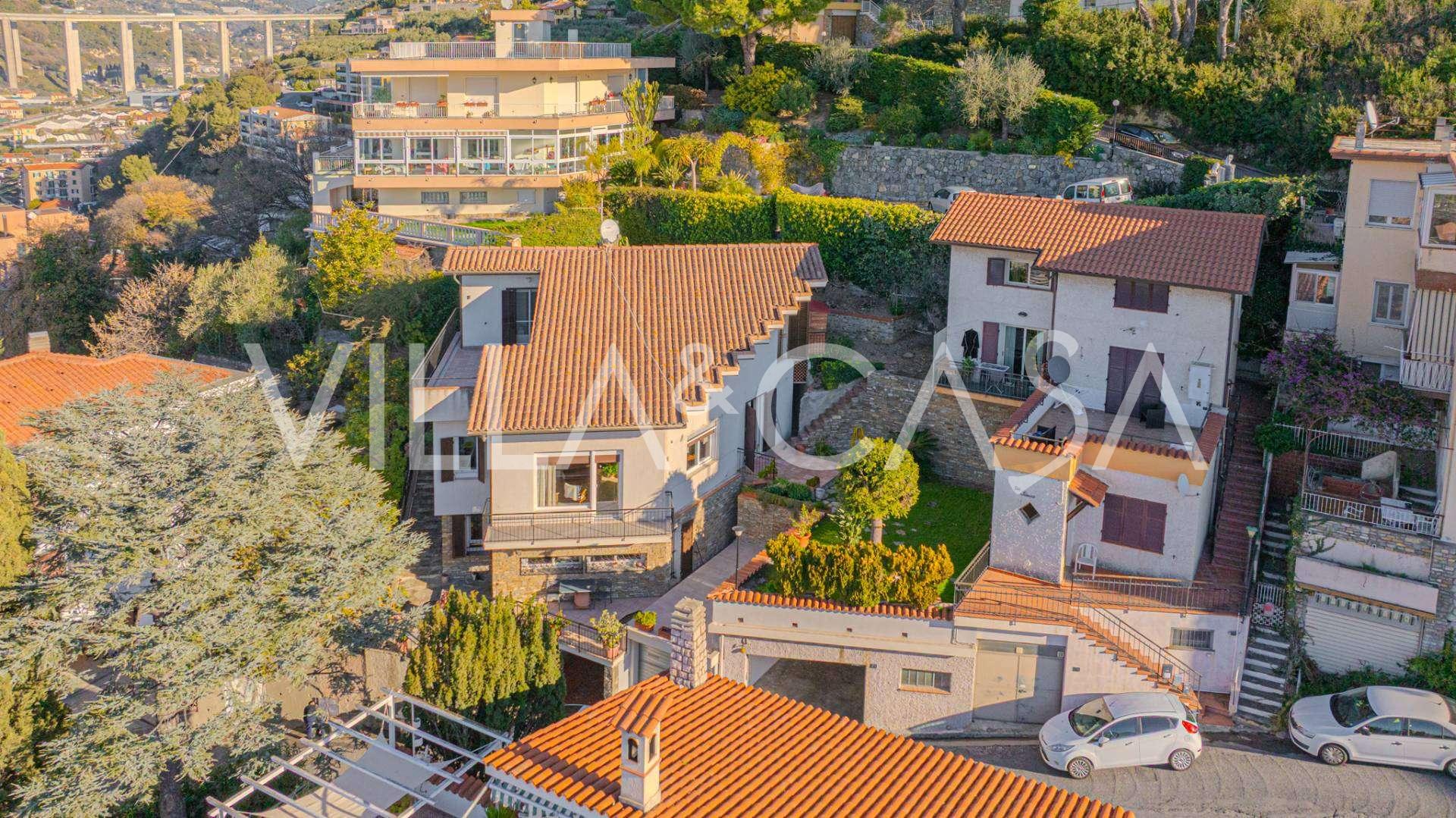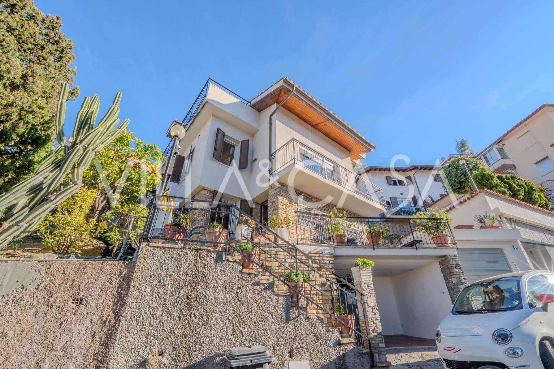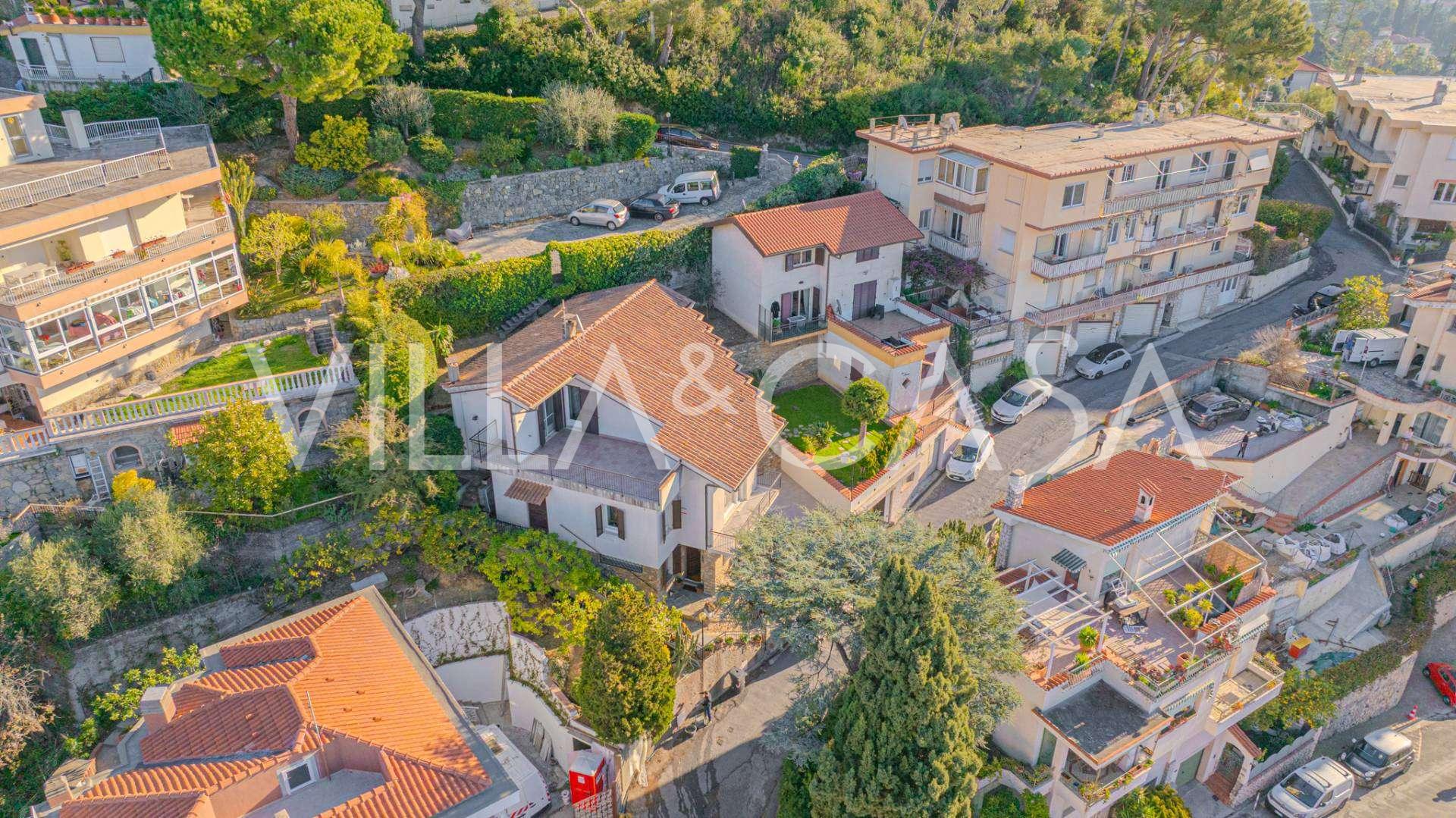 In Vallecrosia, in einem sonnigen Gebiet, nur 15 Minuten zu Fuß vom Meer entfernt, steht eine geräumige Villa mit einer Gesamtfläche von etwa 251 m2 zum Verkauf. Das Haus hat drei Etagen und besteht aus zwei unabhängigen Teilen, die derzeit zu einem Wohnraum vereint sind.