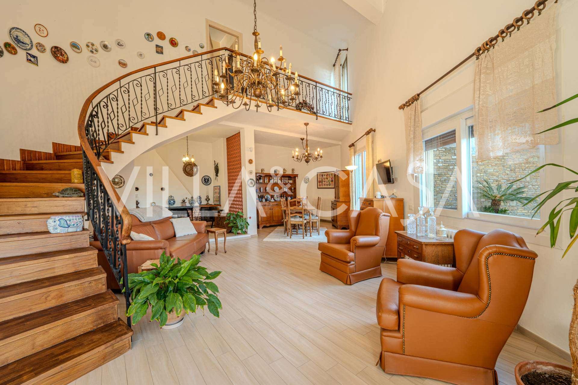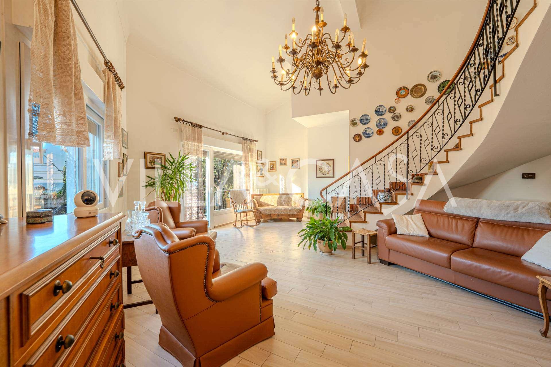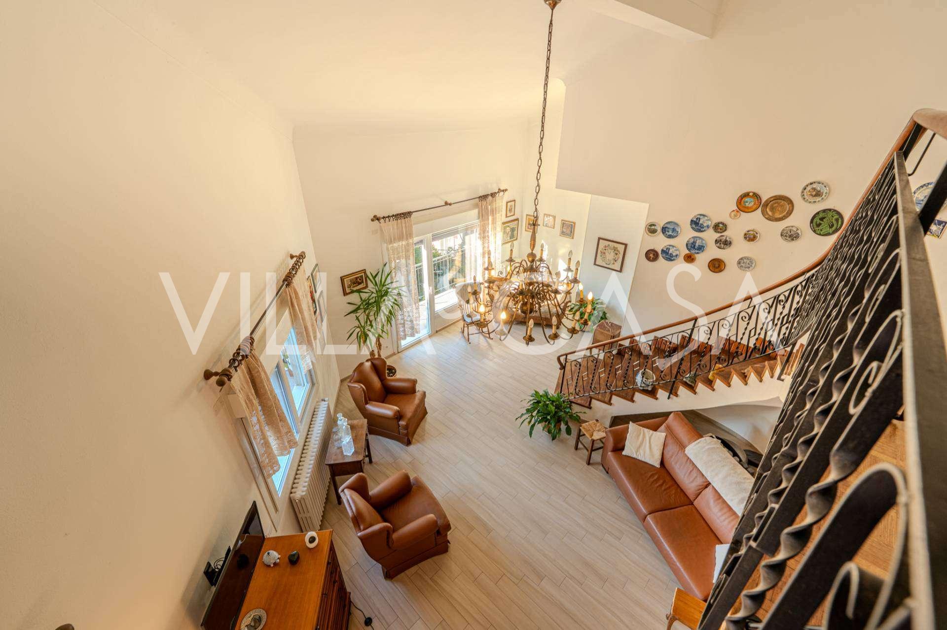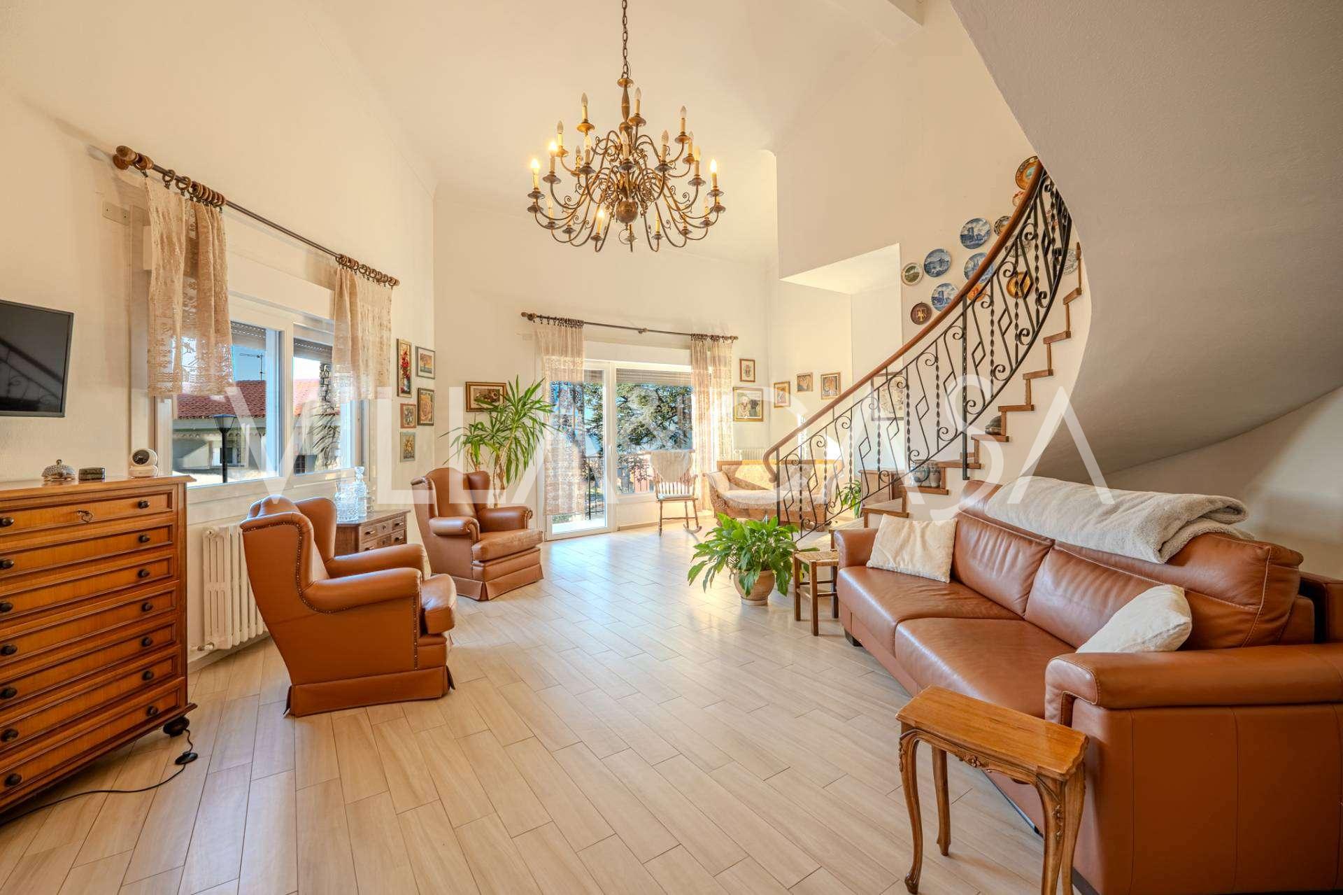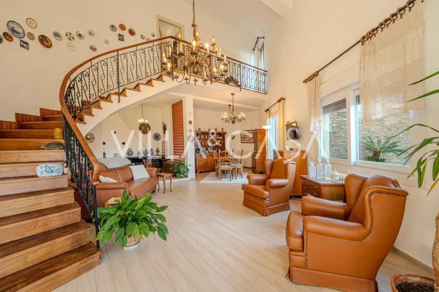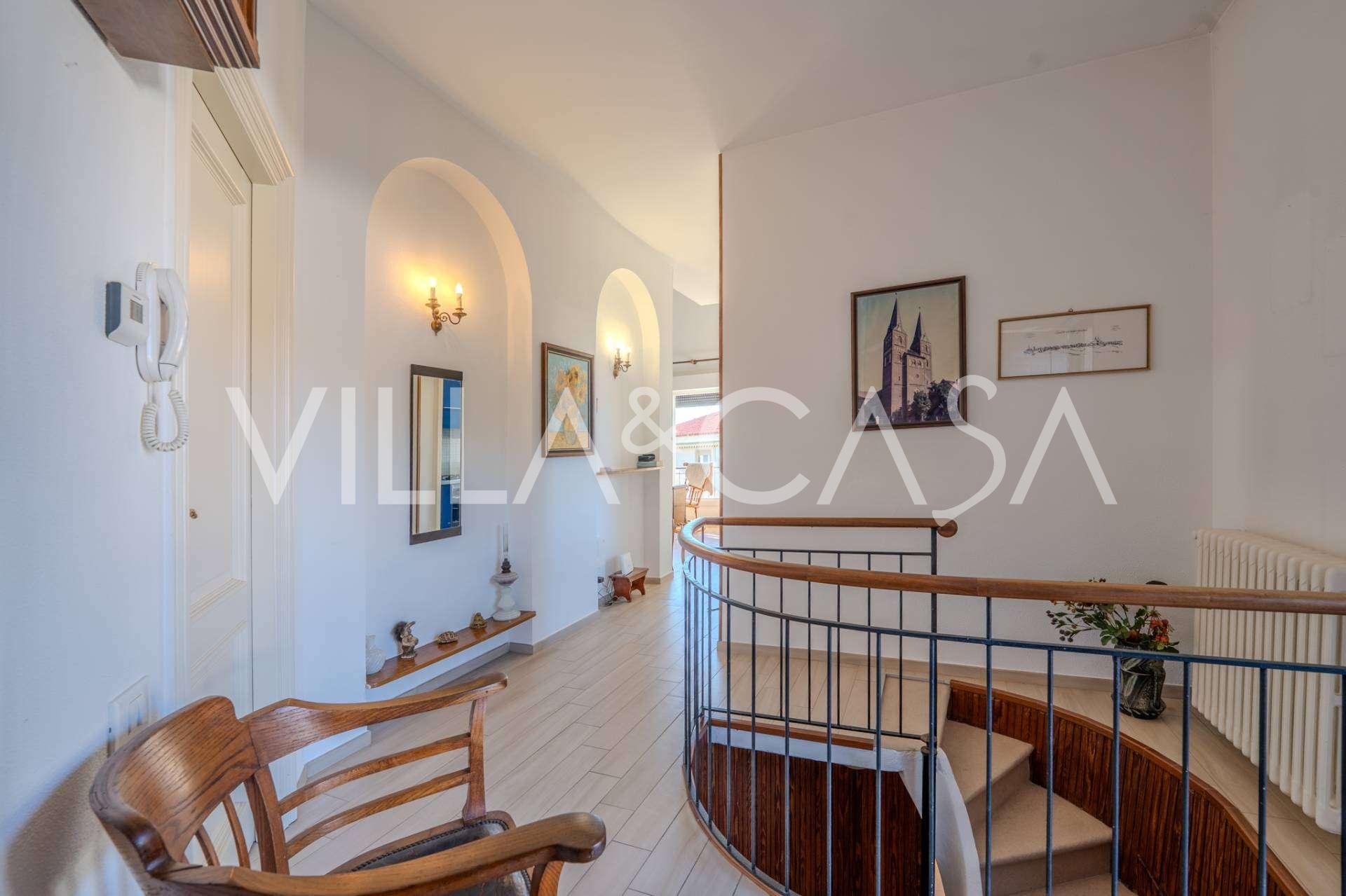 In Vallecrosia, in einem sonnigen Gebiet, nur 15 Minuten zu Fuß vom Meer entfernt, steht eine geräumige Villa mit einer Gesamtfläche von etwa 251 m2 zum Verkauf. Das Haus hat drei Etagen und besteht aus zwei unabhängigen Teilen, die derzeit zu einem Wohnraum vereint sind.