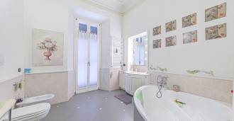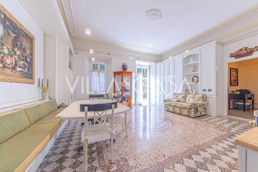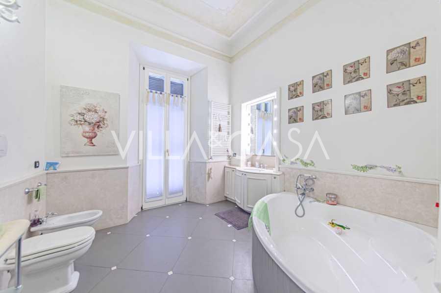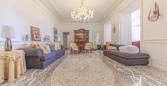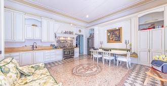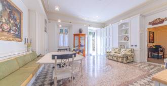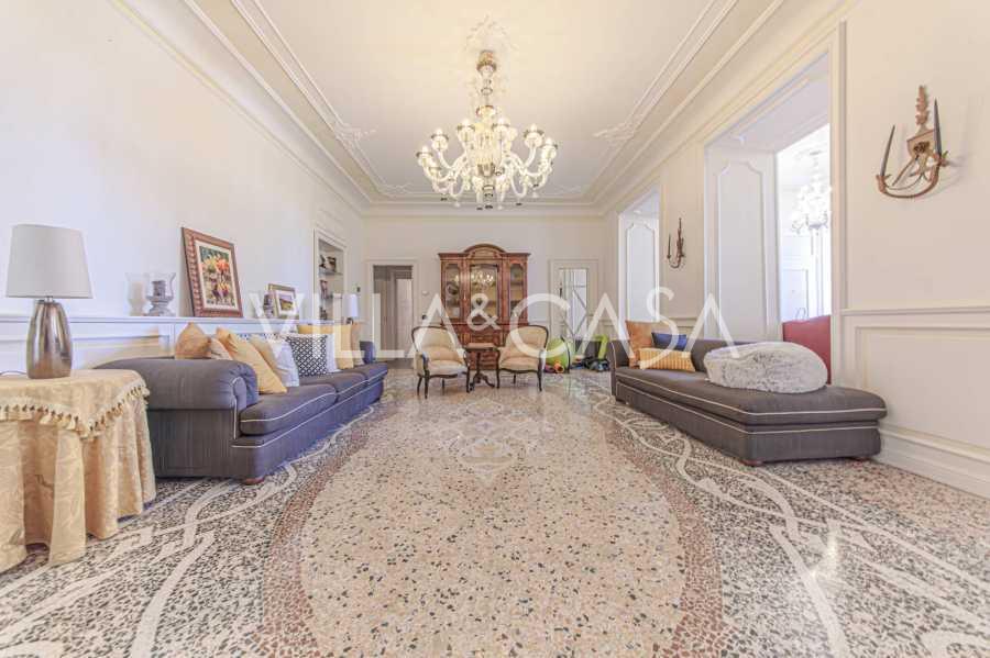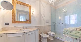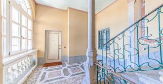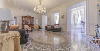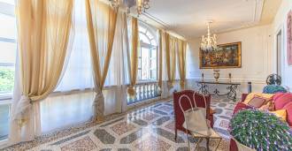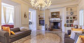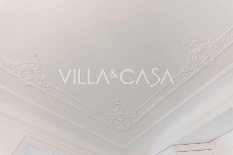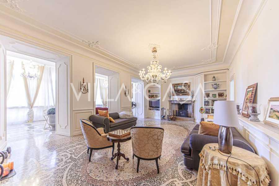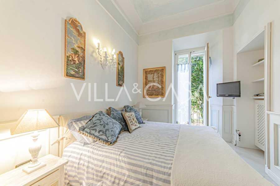 Die über 270 m² großen Apartments befinden sich im Erdgeschoss und sind über eine historische Haupttreppe mit Fresken und Säulen aus rosa Baveno-Granit zugänglich. Der großzügige Grundriss umfasst eine majestätische Marmorempfangshalle mit Panoramablick auf den See, einen luxuriösen Salon mit Kamin und Stuck, eine Küche mit Essbereich, ein Gäste-WC, ein elegantes Badezimmer, ein Gästezimmer, ein Kinderzimmer mit Ankleideraum sowie ein Hauptschlafzimmer mit eigenem Bad.