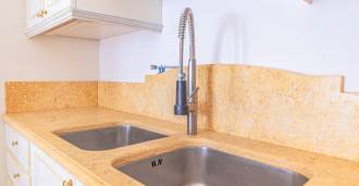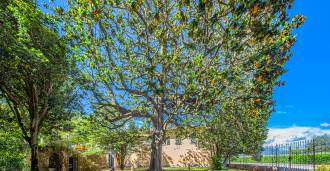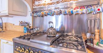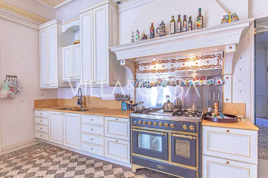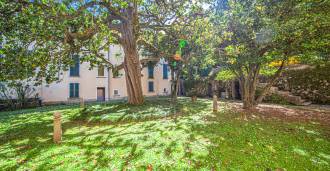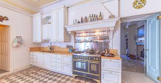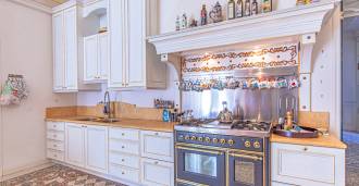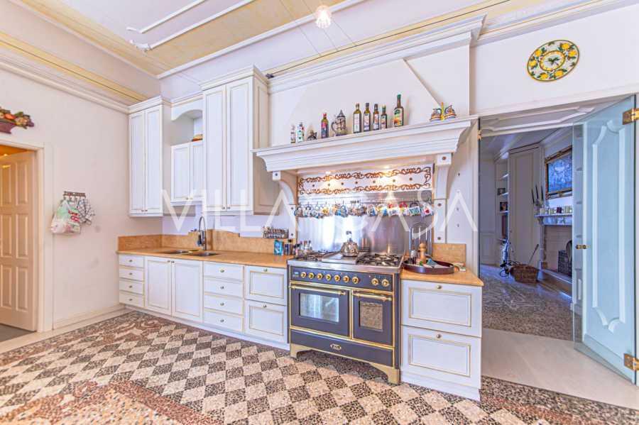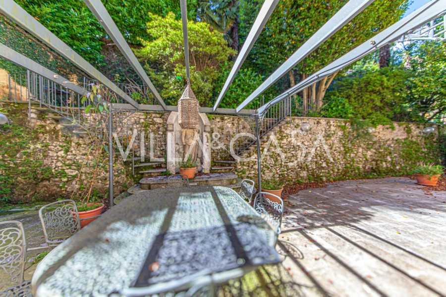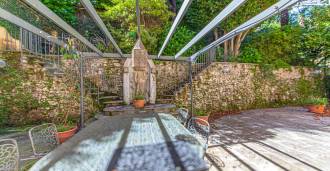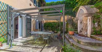 Von der Küche aus gelangt man auf eine geräumige private Terrasse, die sich ideal für Sommeraufenthalte und Gästebewirtung eignet: Eine Grillzone, eine Pergola und ein terrassierter Garten schaffen die Atmosphäre eines abgeschiedenen Landhauses.