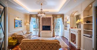 Jedes Detail der Einrichtung ist ein Kunstwerk: Wände aus Naturholz, Nubuk und Leder; hochwertiges Parkett; venezianischer Putz; einzigartige Türen und Möbel von Bucalossi; maßgeschneidertes Beleuchtungsdesign — exklusive handgefertigte Kronleuchter; exquisite Gemälde, die speziell für diesen Raum geschaffen wurden und den Charme von Ospedaletti widerspiegeln. Fenster und Balkontüren sind nach einem speziellen Projekt für maximalen Komfort und Wärmedämmung gefertigt.